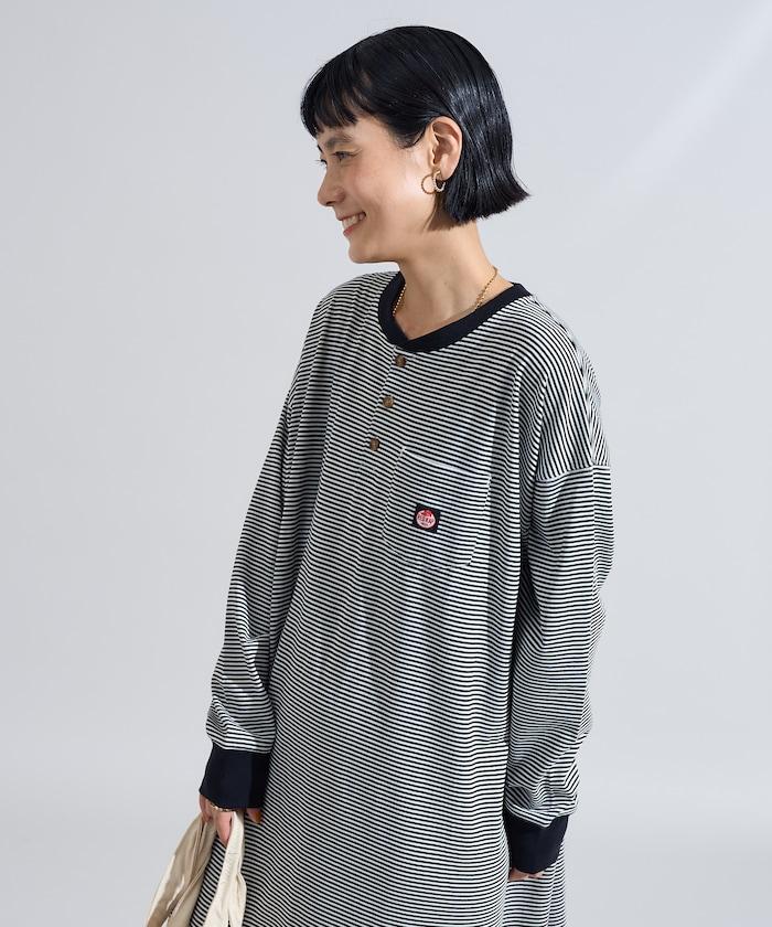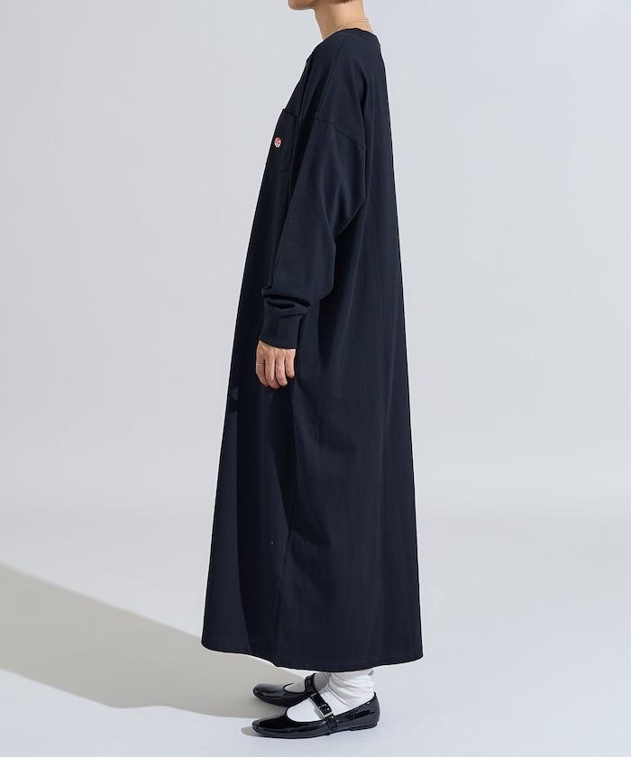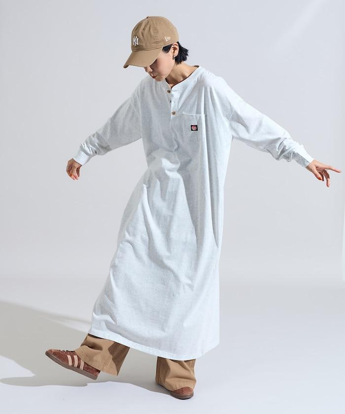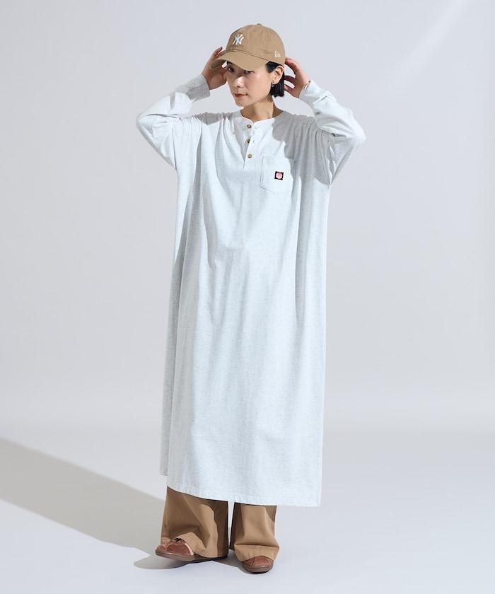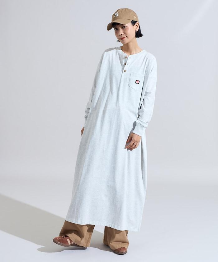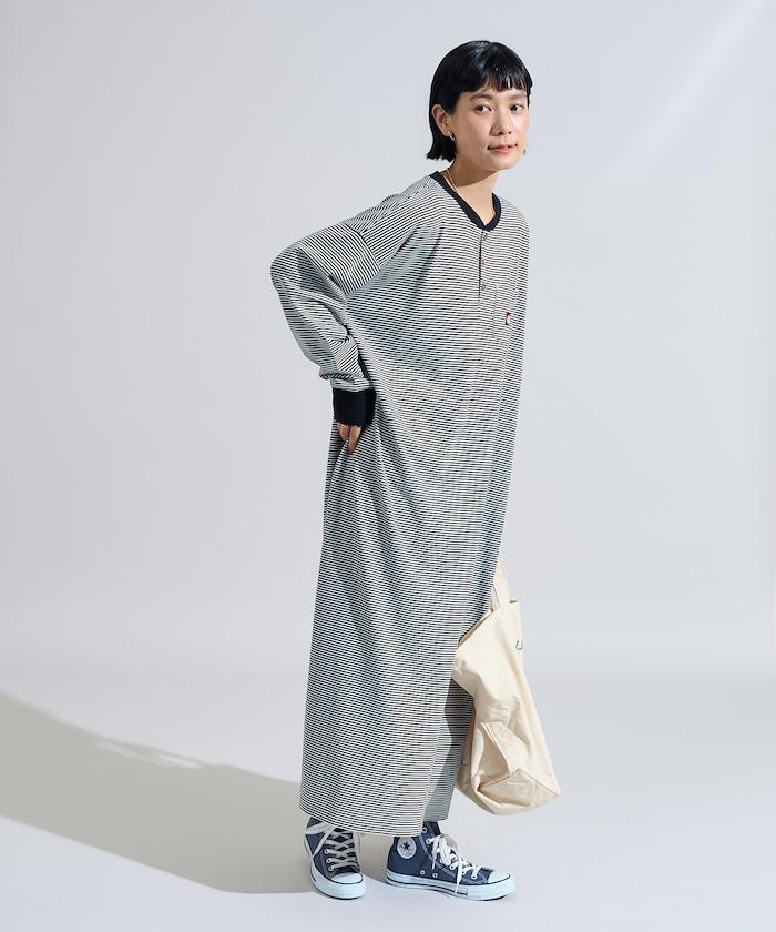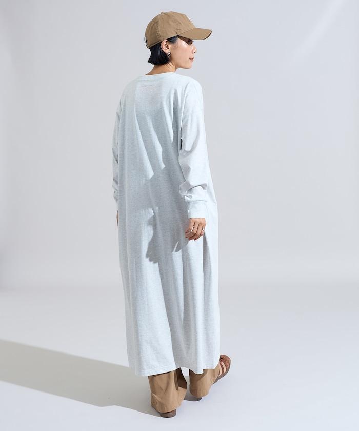 T恤連衣裙,領口採用雞心領設計,輕鬆愜意。
