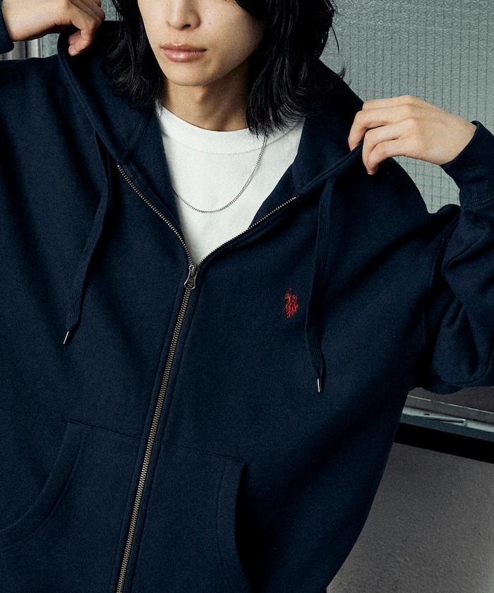 簡潔的拉鍊連帽衫,繡有 U.S. POLO ASSN.