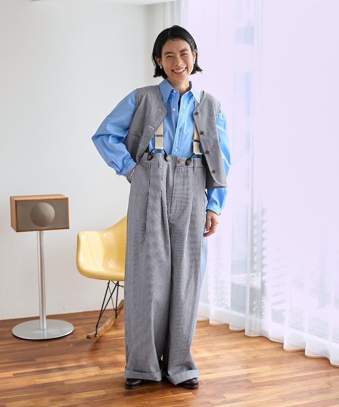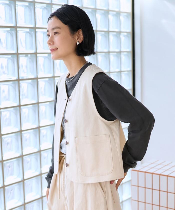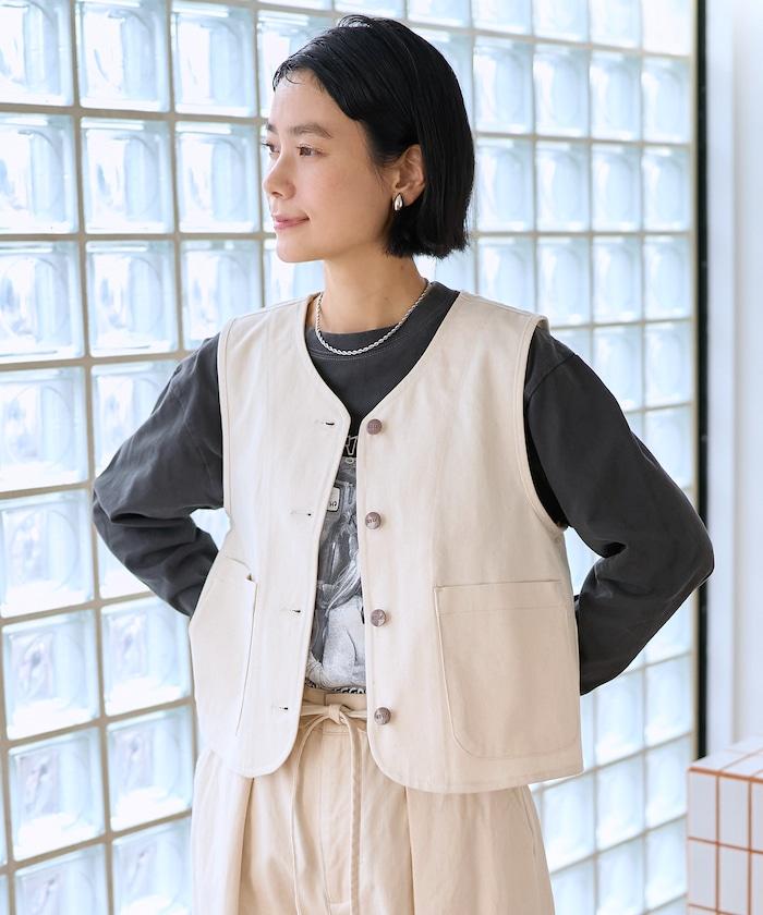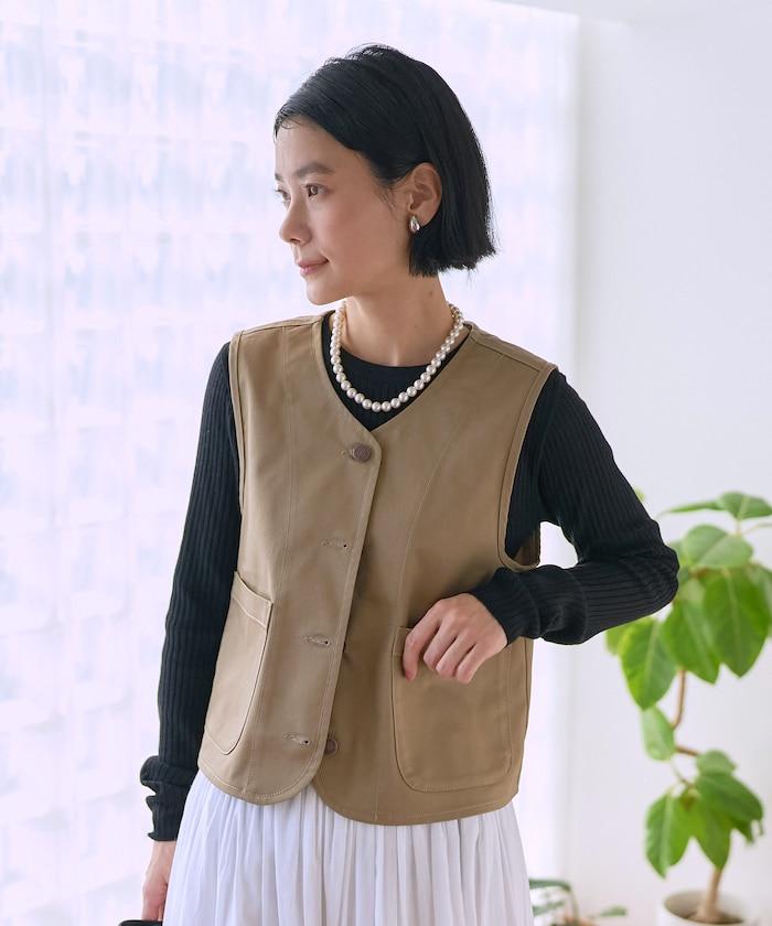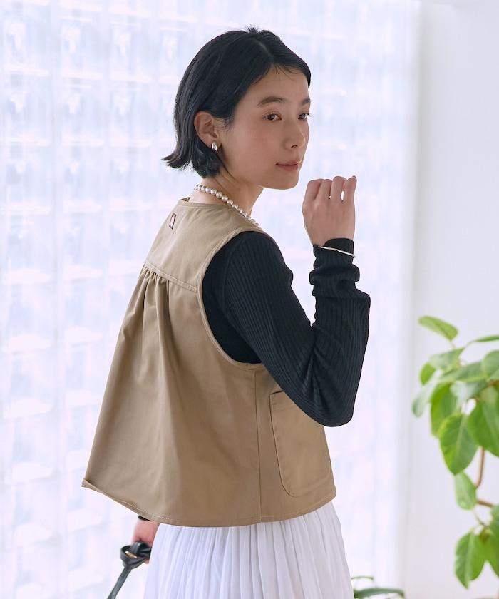簡潔的斜紋馬甲,背部款式引人注目。