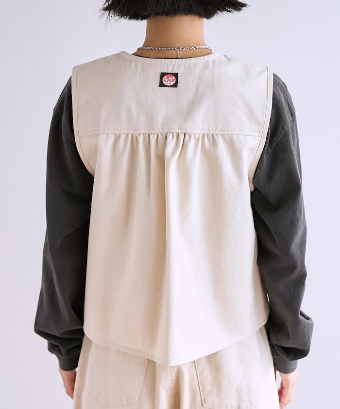 這款馬甲的後背有大量褶皺,款式十分可愛。