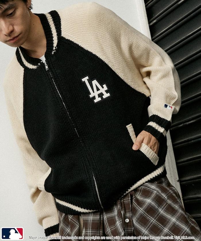 特別從美國職業棒球聯盟訂購的時尚運動場夾克,採用針織面料製成。