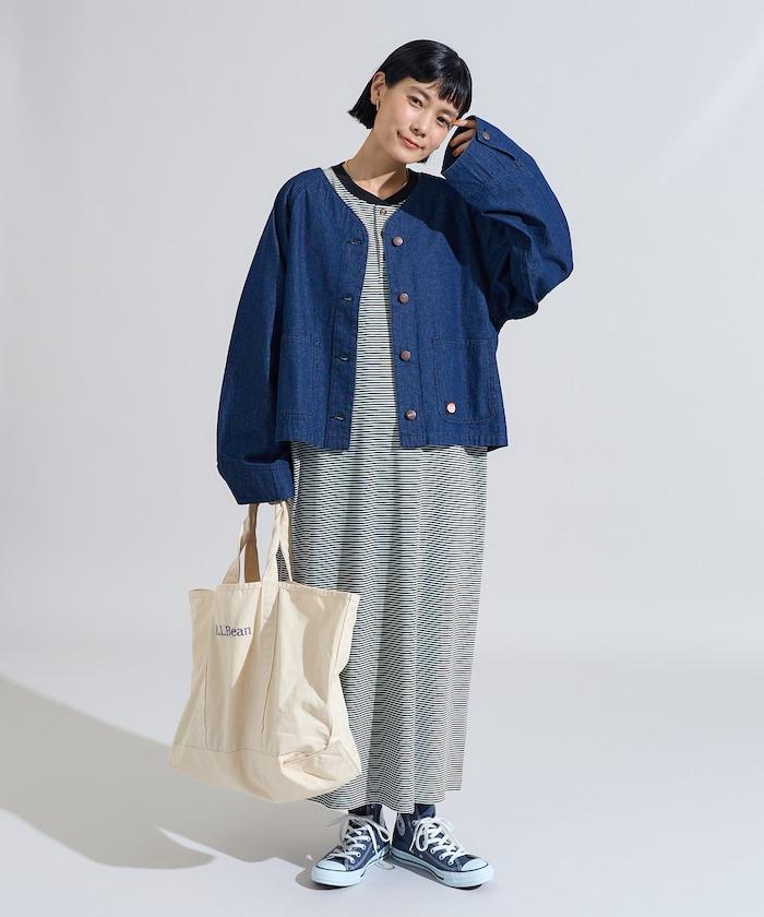 工作休閒兩相宜。成人休閒無領夾克,可穿在身上。