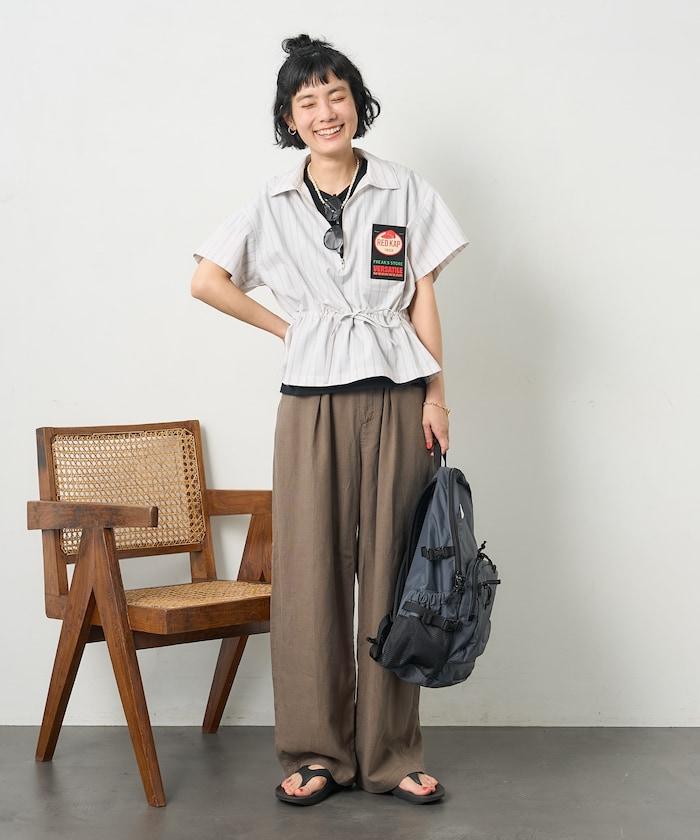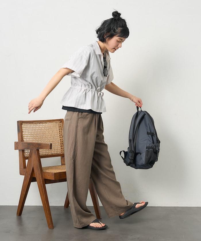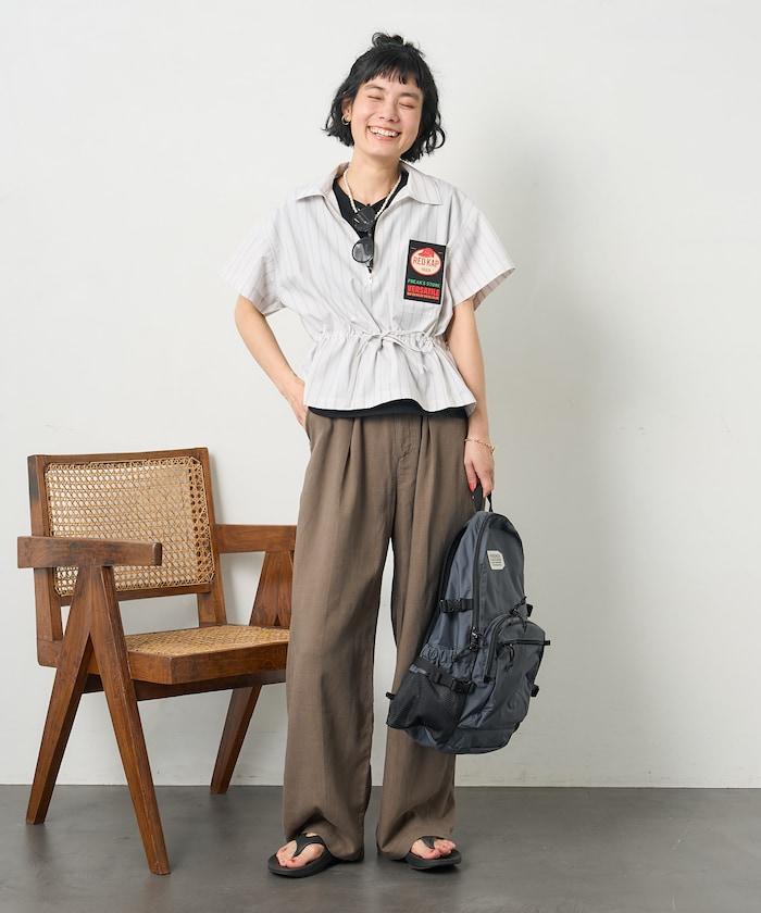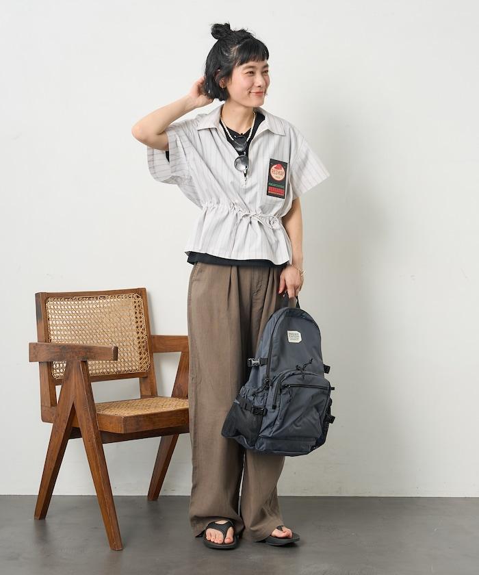 條紋襯衫搭配腰間絲帶,打造趣味輪廓