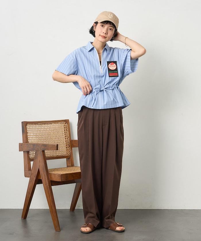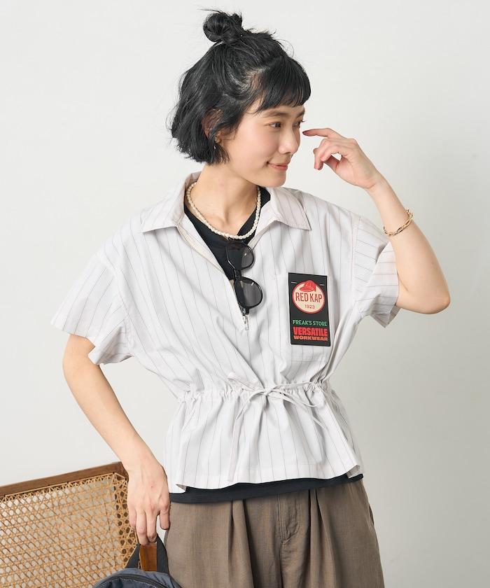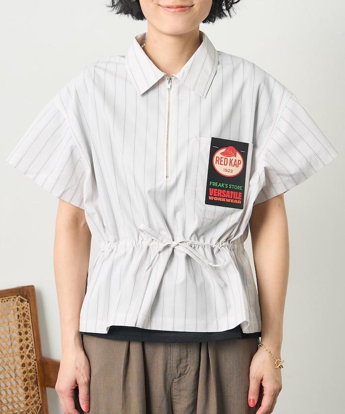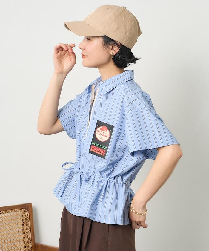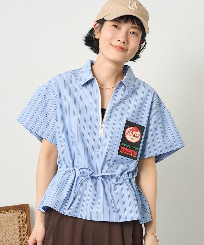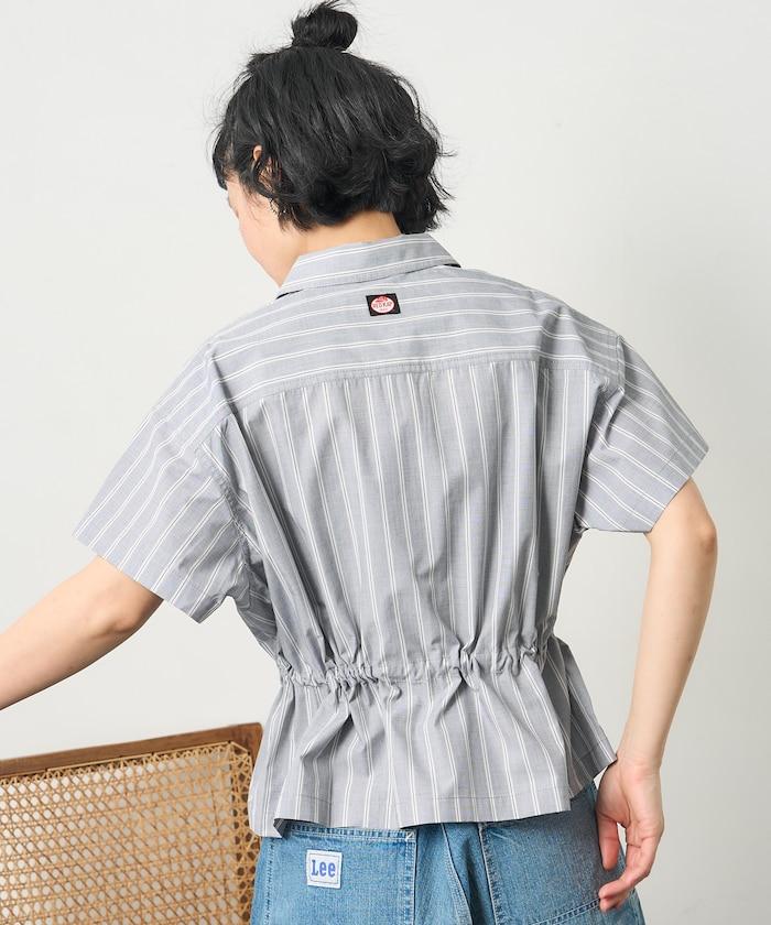 特別款 條紋 腰部蝴蝶結 半拉鍊 短袖襯衫