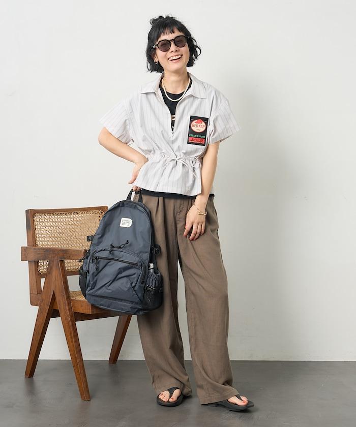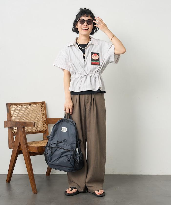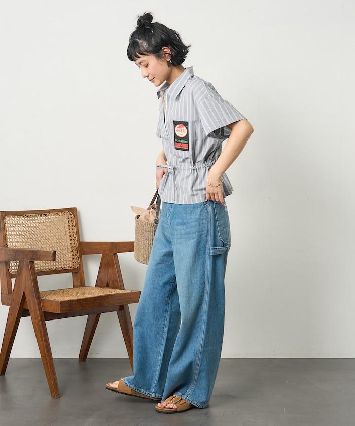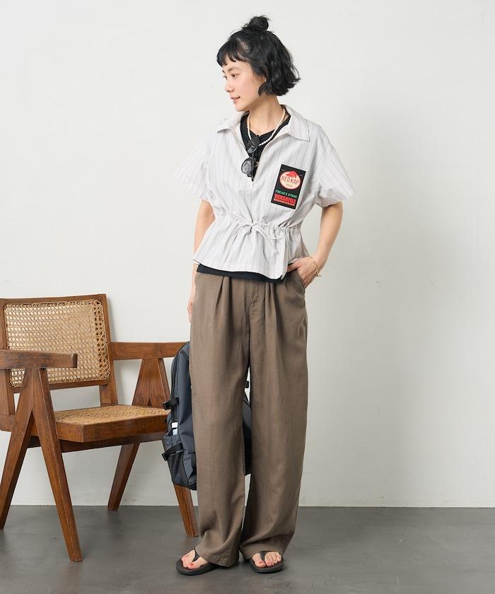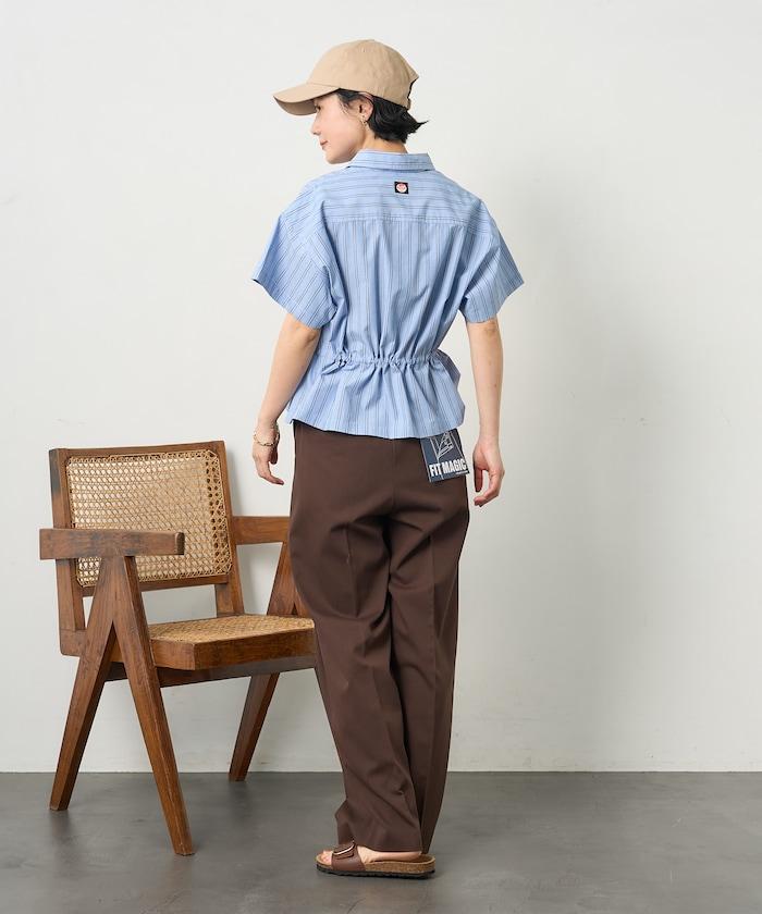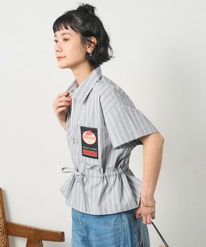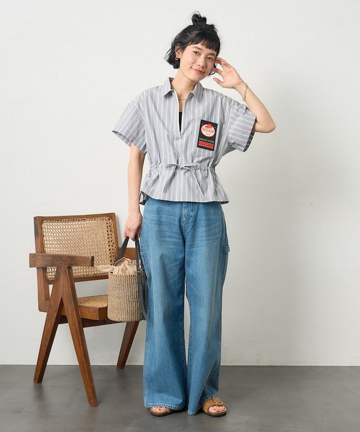 特別款 條紋 腰部蝴蝶結 半拉鍊 短袖襯衫