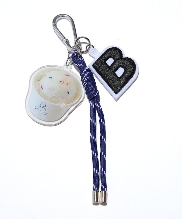 冰淇淋吊飾和 B 刺繡吊飾是重點。