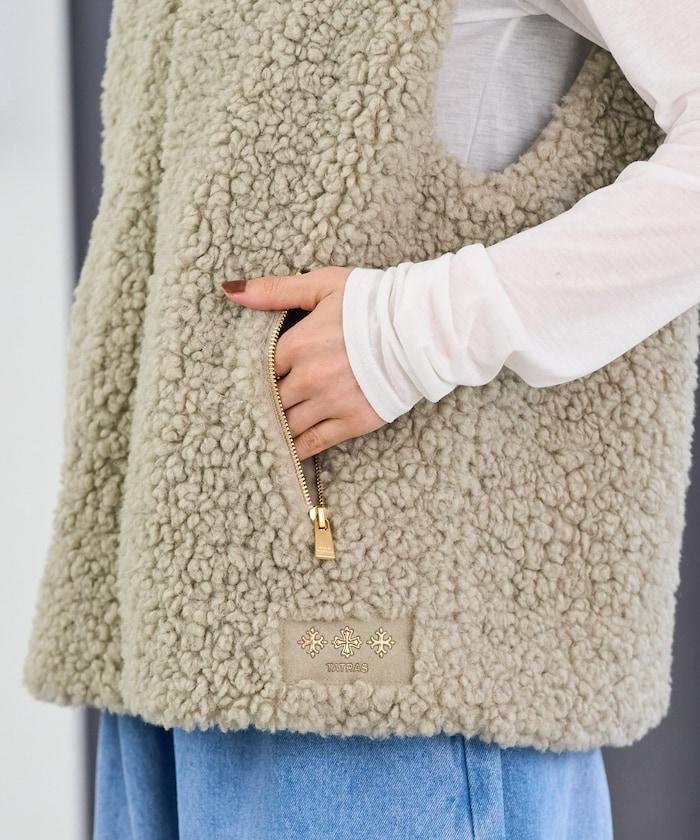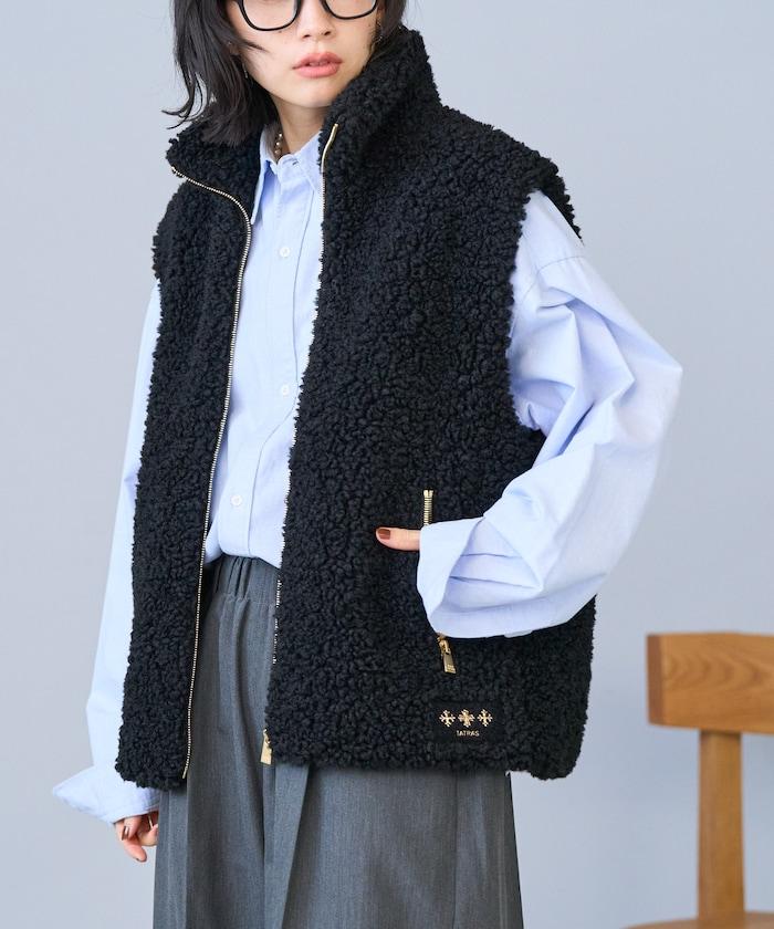 TATRAS 人氣款式 LUELA 的特別訂製背心。捲曲的蟒蛇型蟒蛇毛蓬鬆豐滿,給馬甲增添了奢華感。