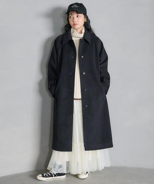 這是一款以 BURGHLEY 為原型特別定製的桃皮面料大衣,該款大衣是作為騎馬用的長款大衣而開發的。