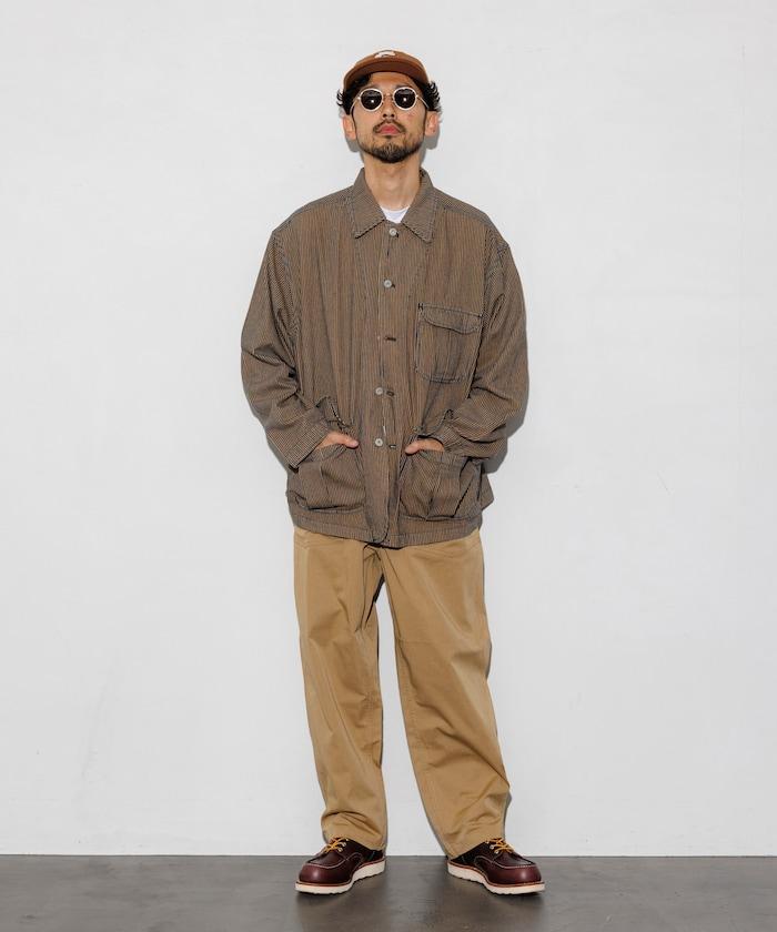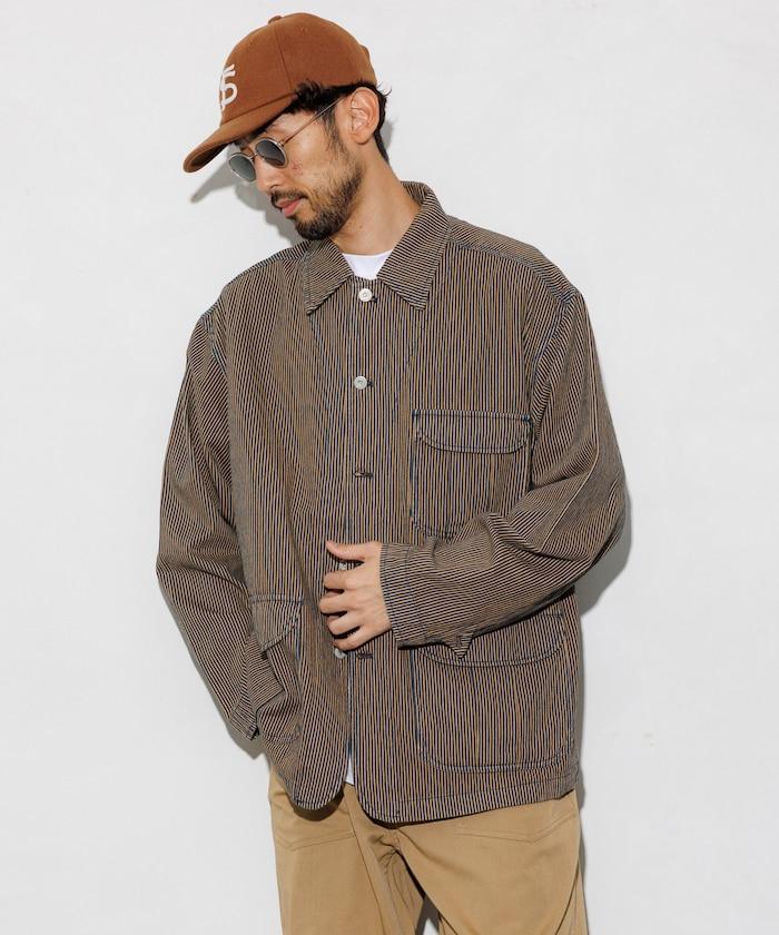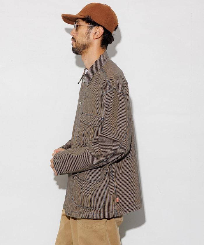 山胡桃木條紋與棕色內搭和大地色系搭配,給人沉穩的印象。