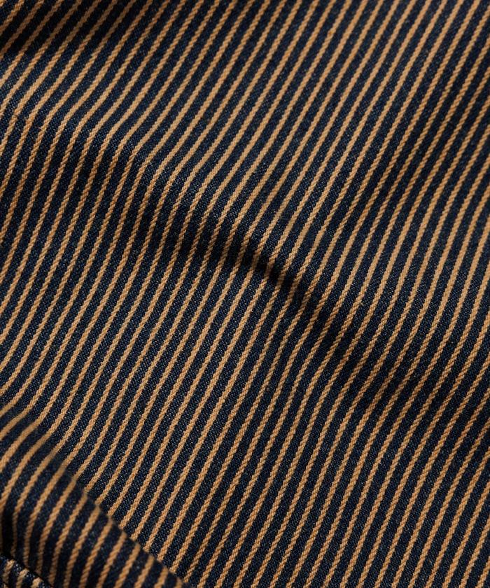 面料有三種顏色可供選擇:8 盎司靛藍牛仔布和 8.5 盎司山胡桃木條紋。