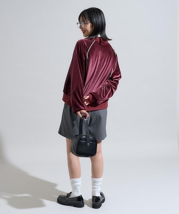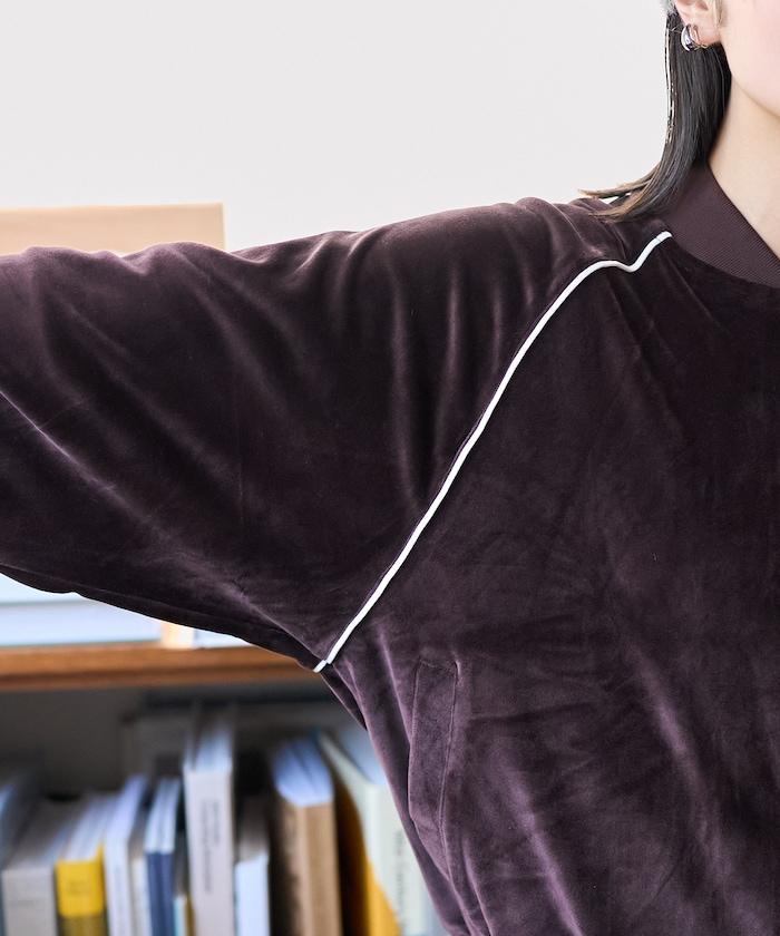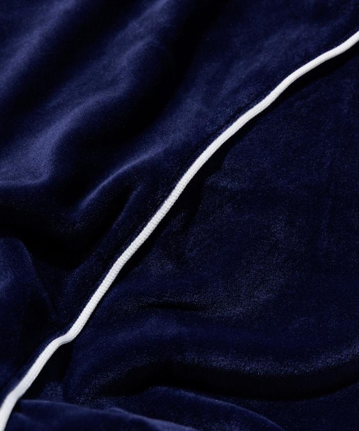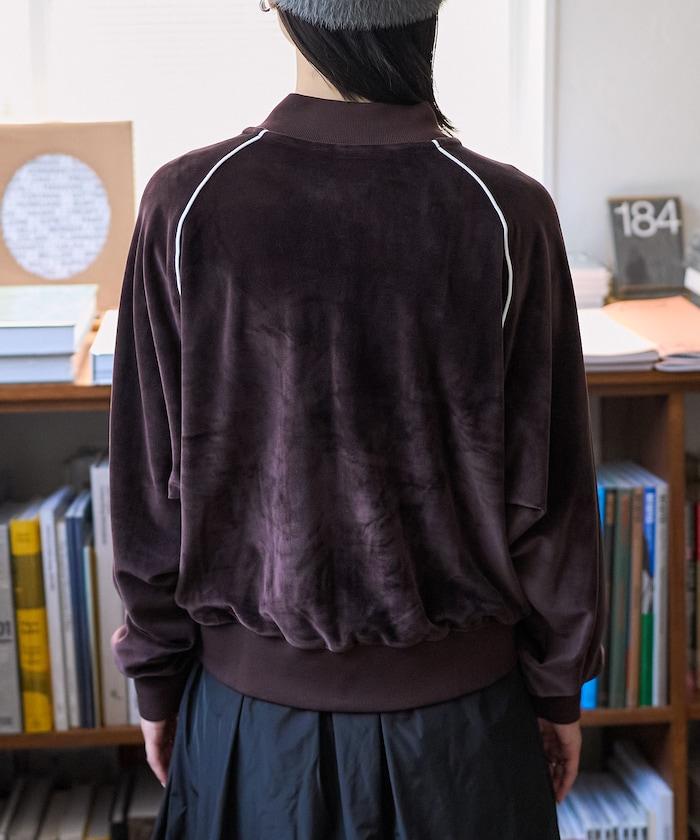 特別定製的天鵝絨上衣,其色彩和質感為造型增添了深度。