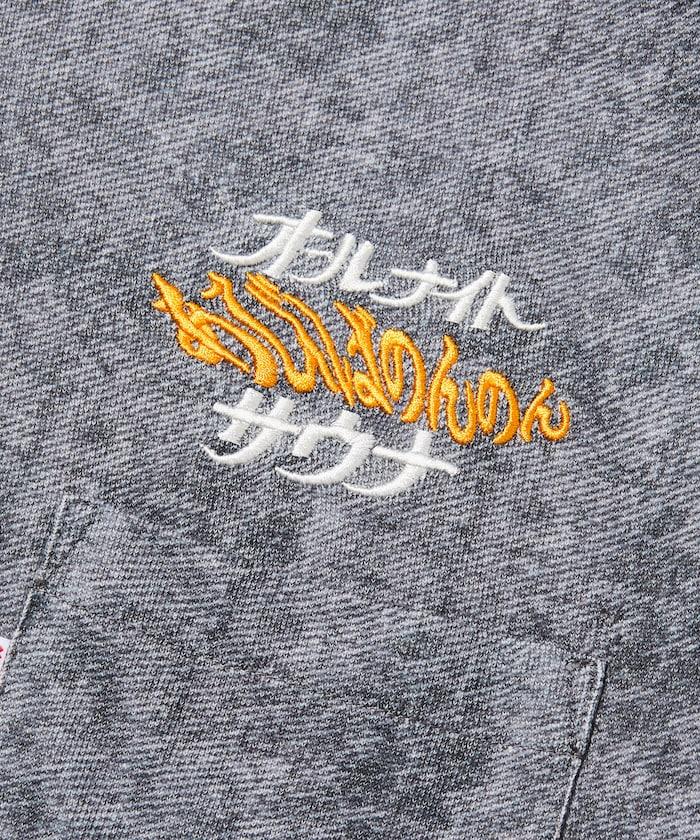 繡有 SAUVENIR 標誌性的 "通宵桑拿 "標識。設置靈感來自膠囊酒店和超級公共浴室中常見的室內服裝。
