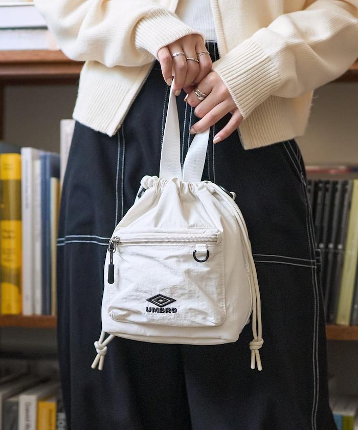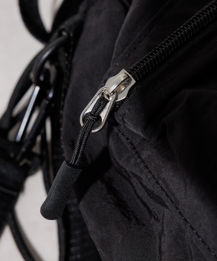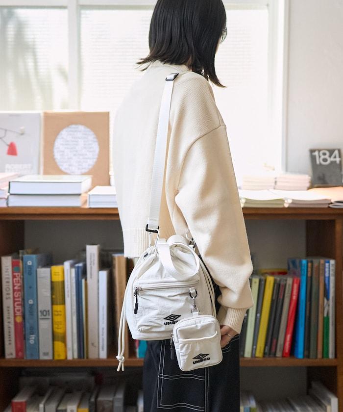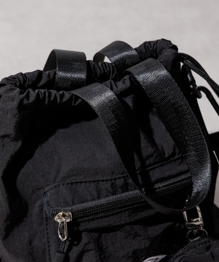 帶小袋的抽繩雙肩包,適合輕裝上陣時使用。