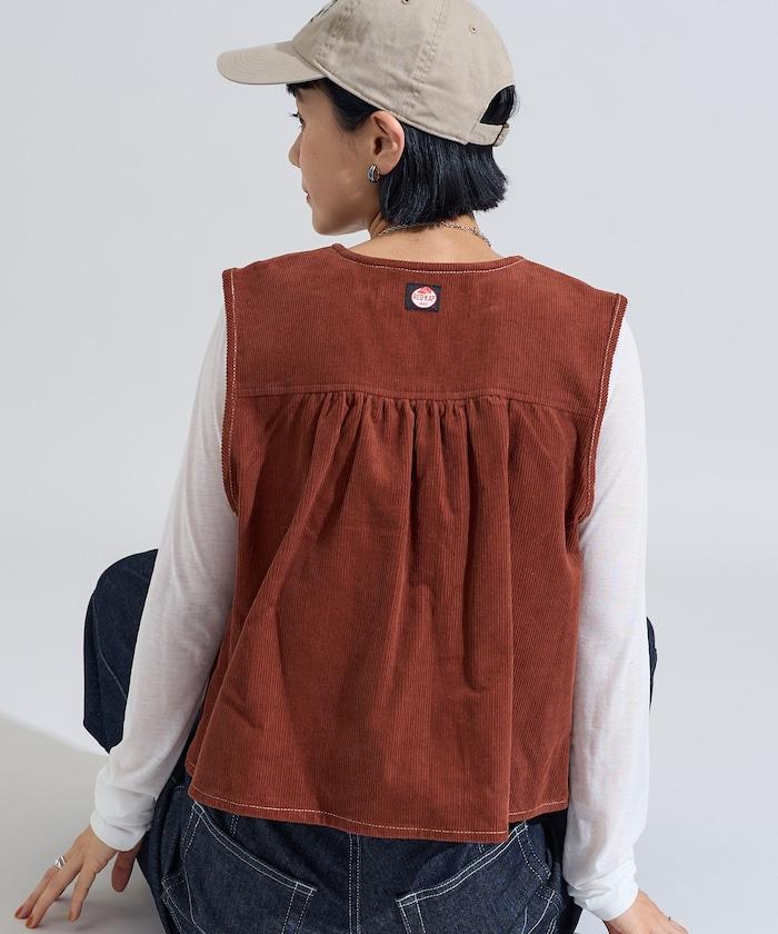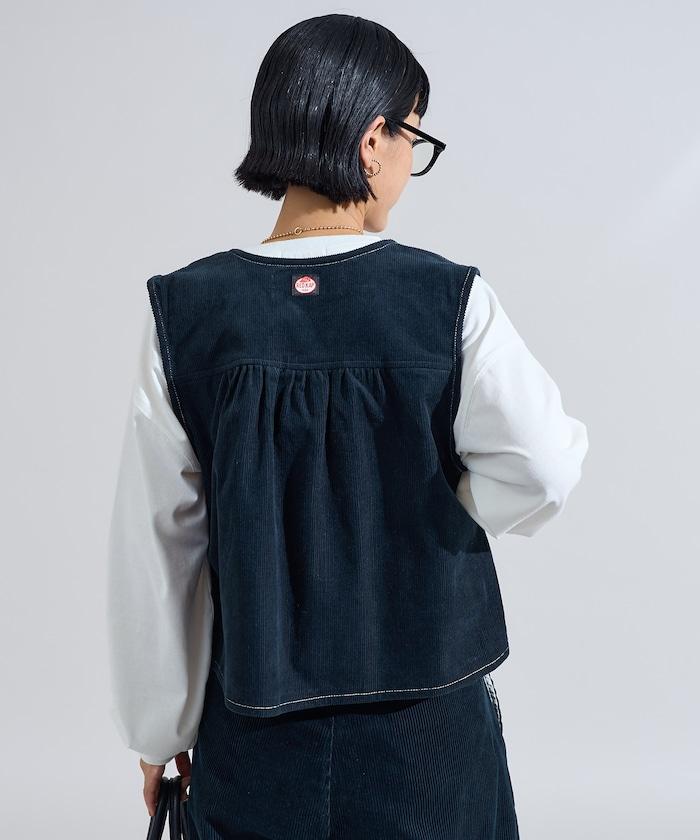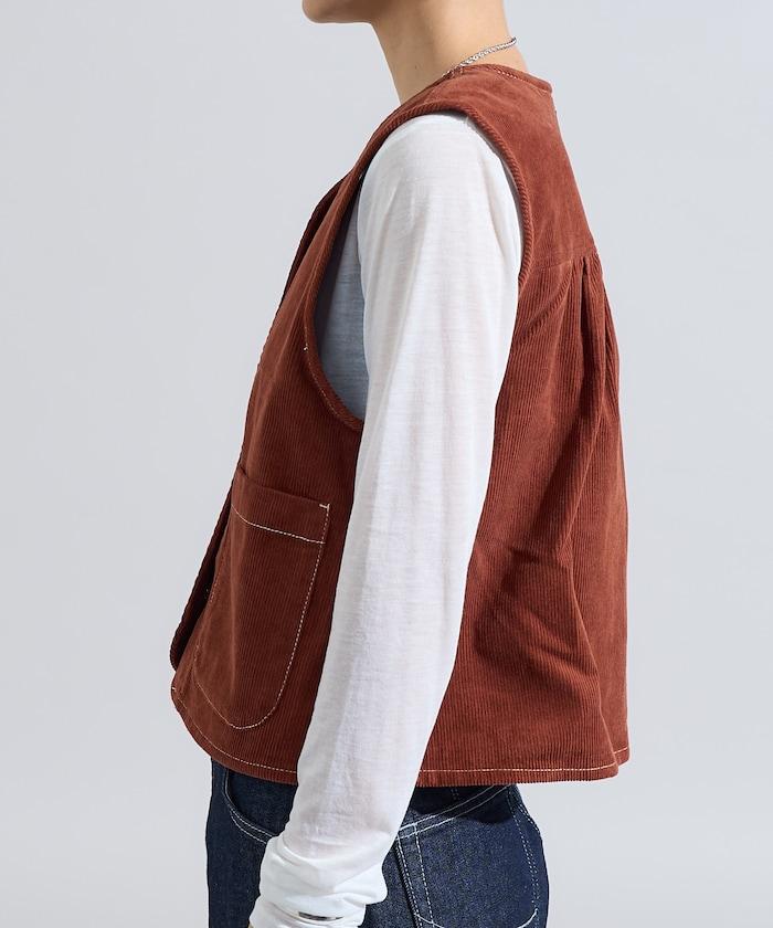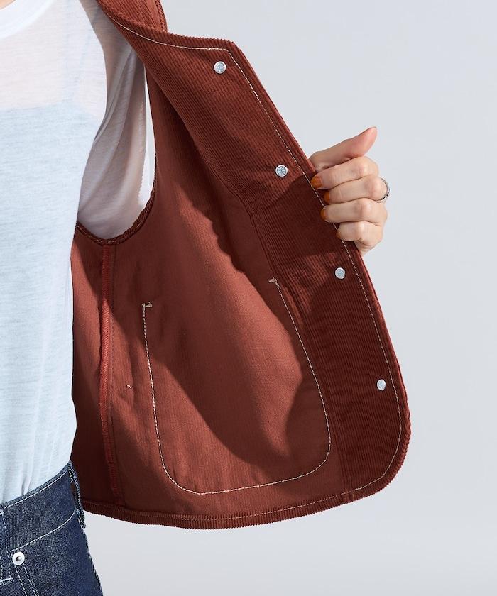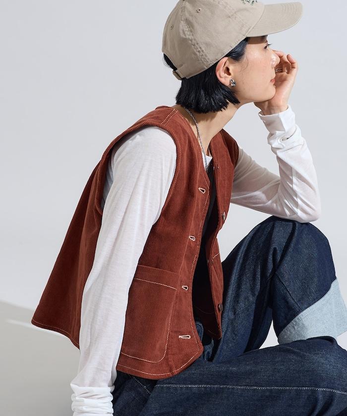 從夏末到秋冬。燈芯絨馬甲,後背款式引人注目。