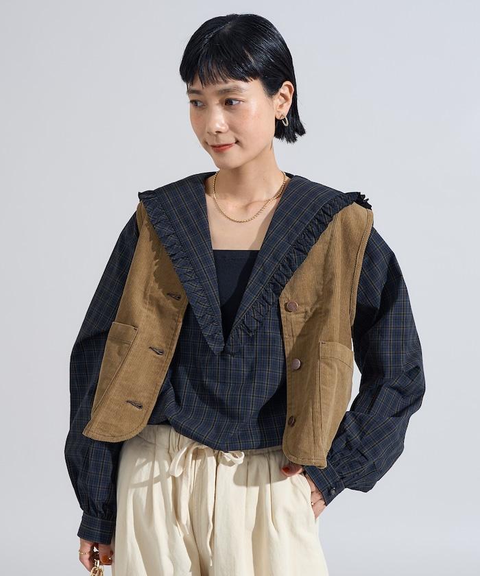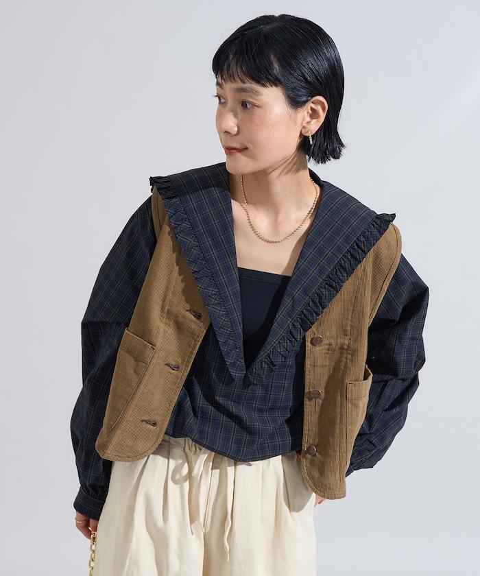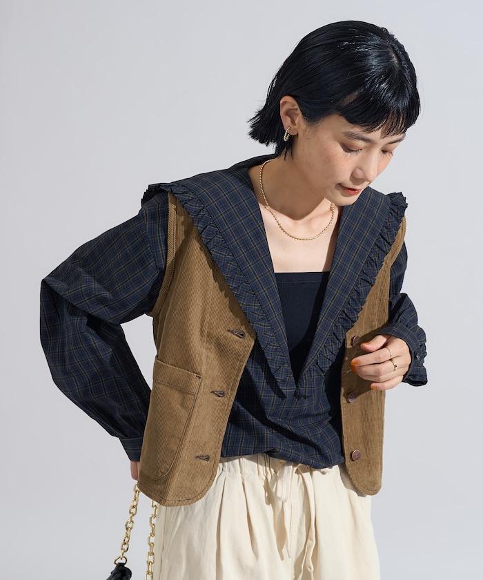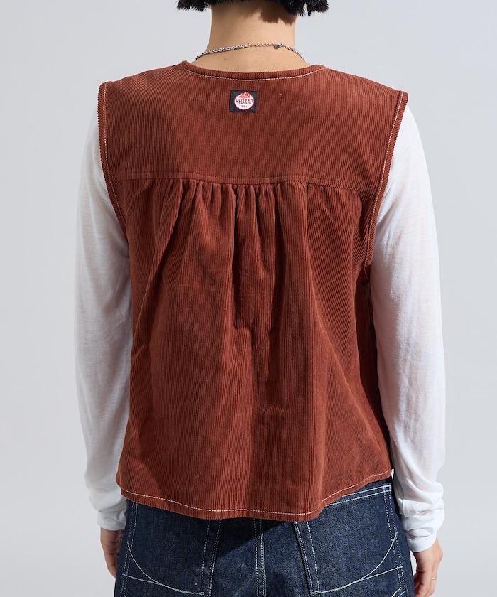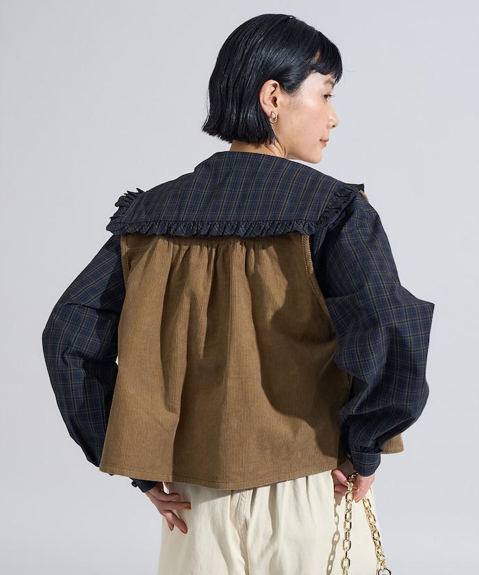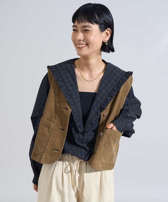 從夏末到秋冬。燈芯絨馬甲,後背款式引人注目。