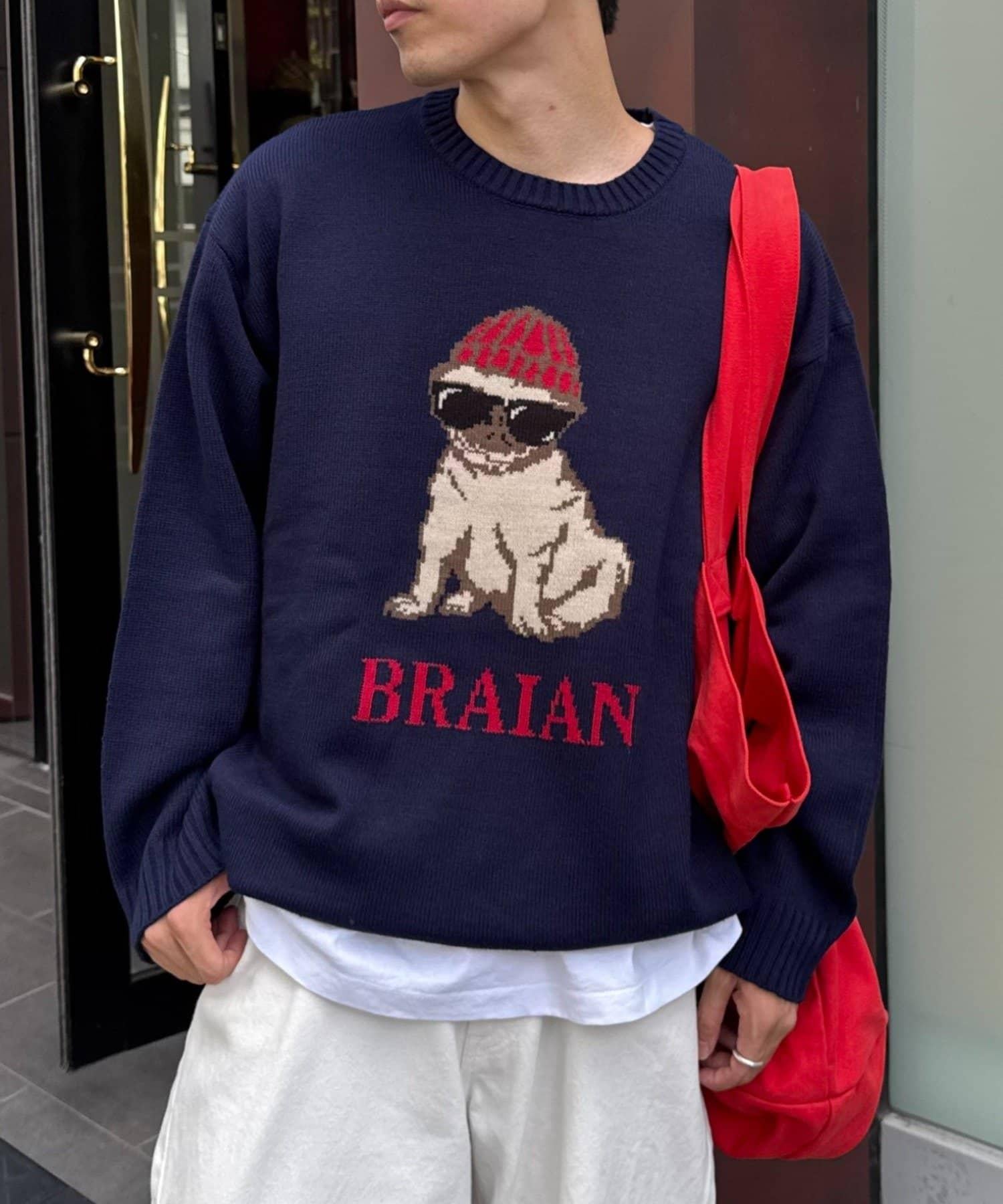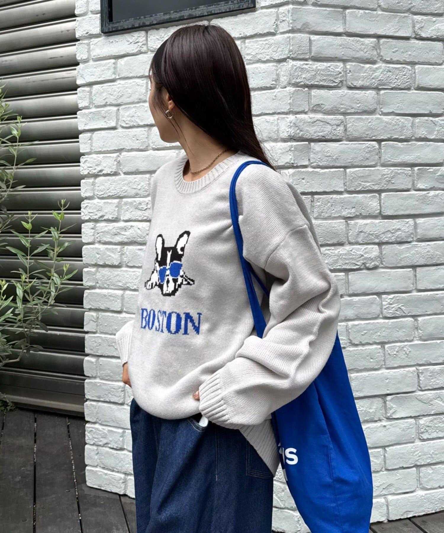 狗狗針織混合標誌提花毛衣