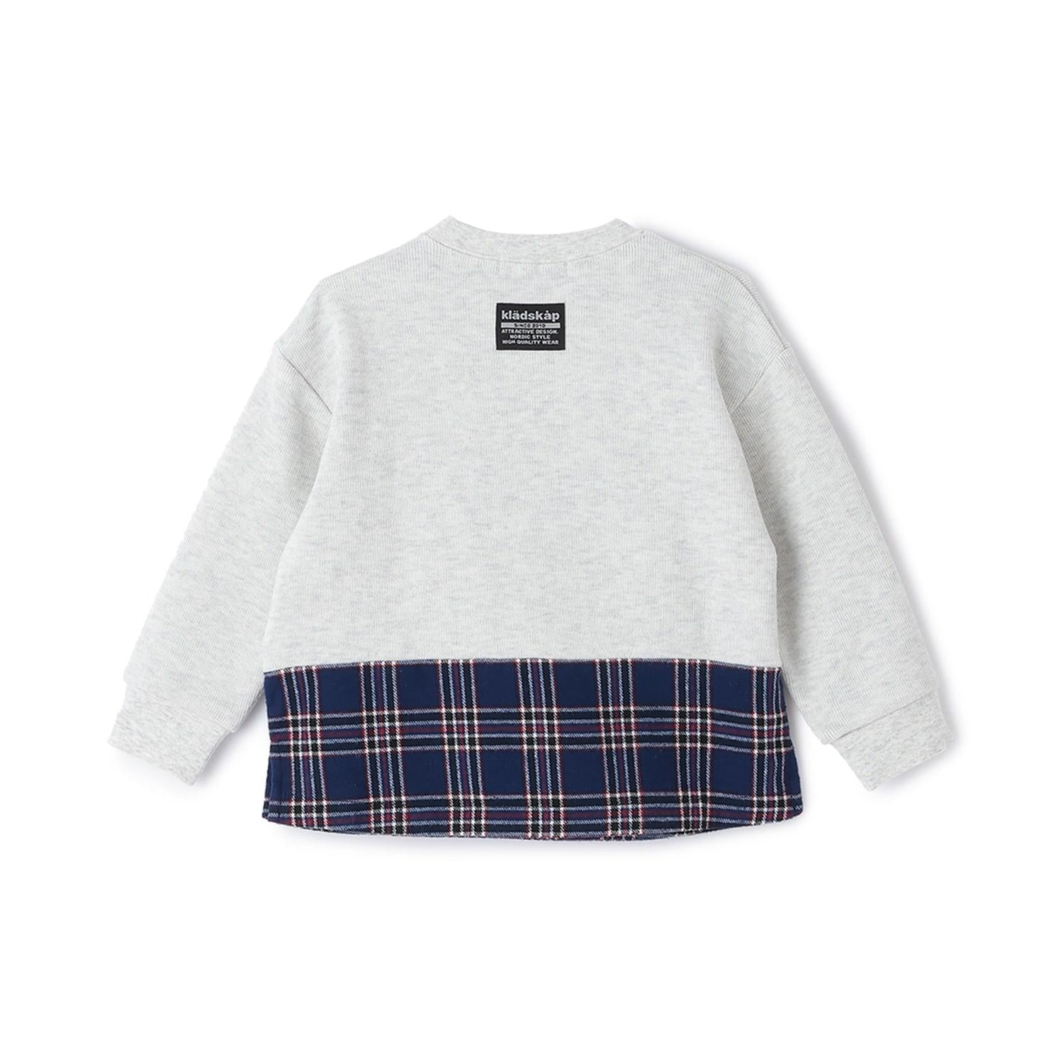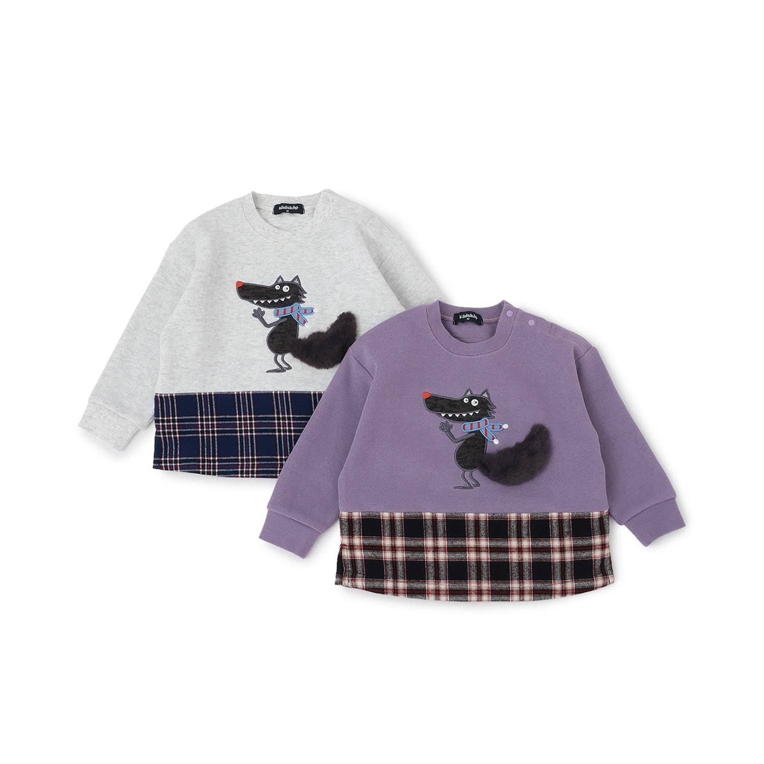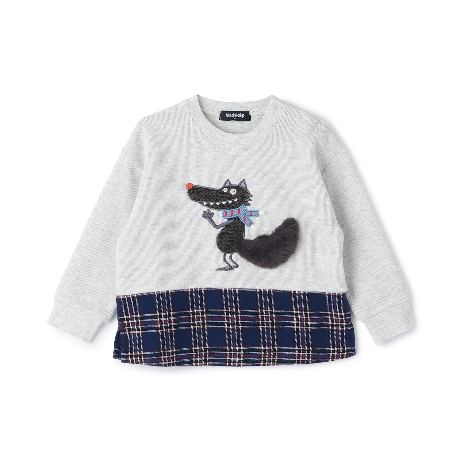 狼圖案拼接格子下襬衛衣
