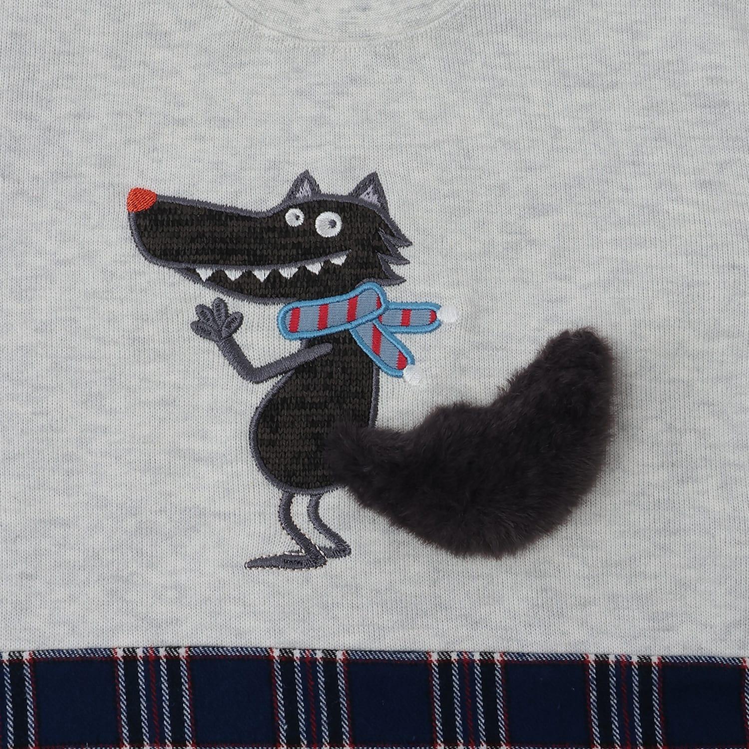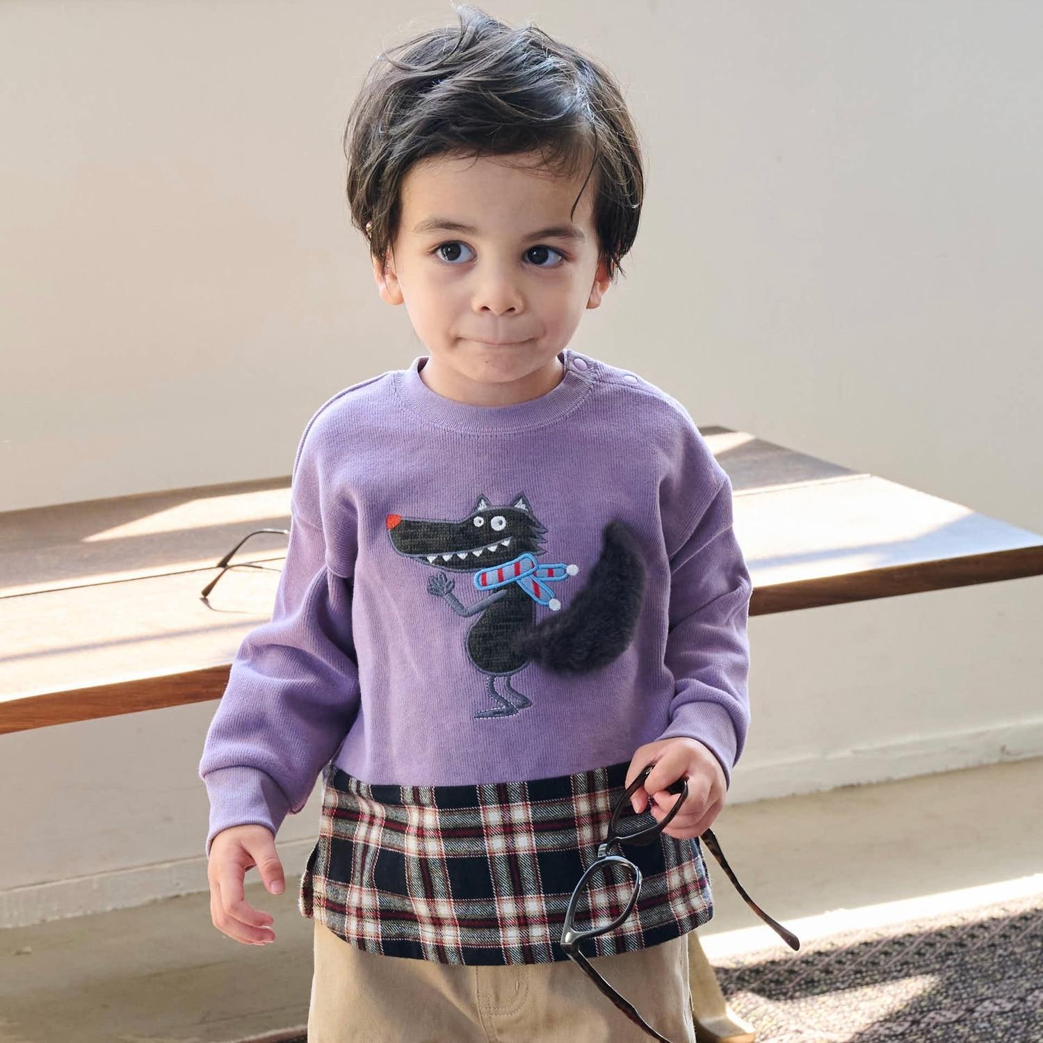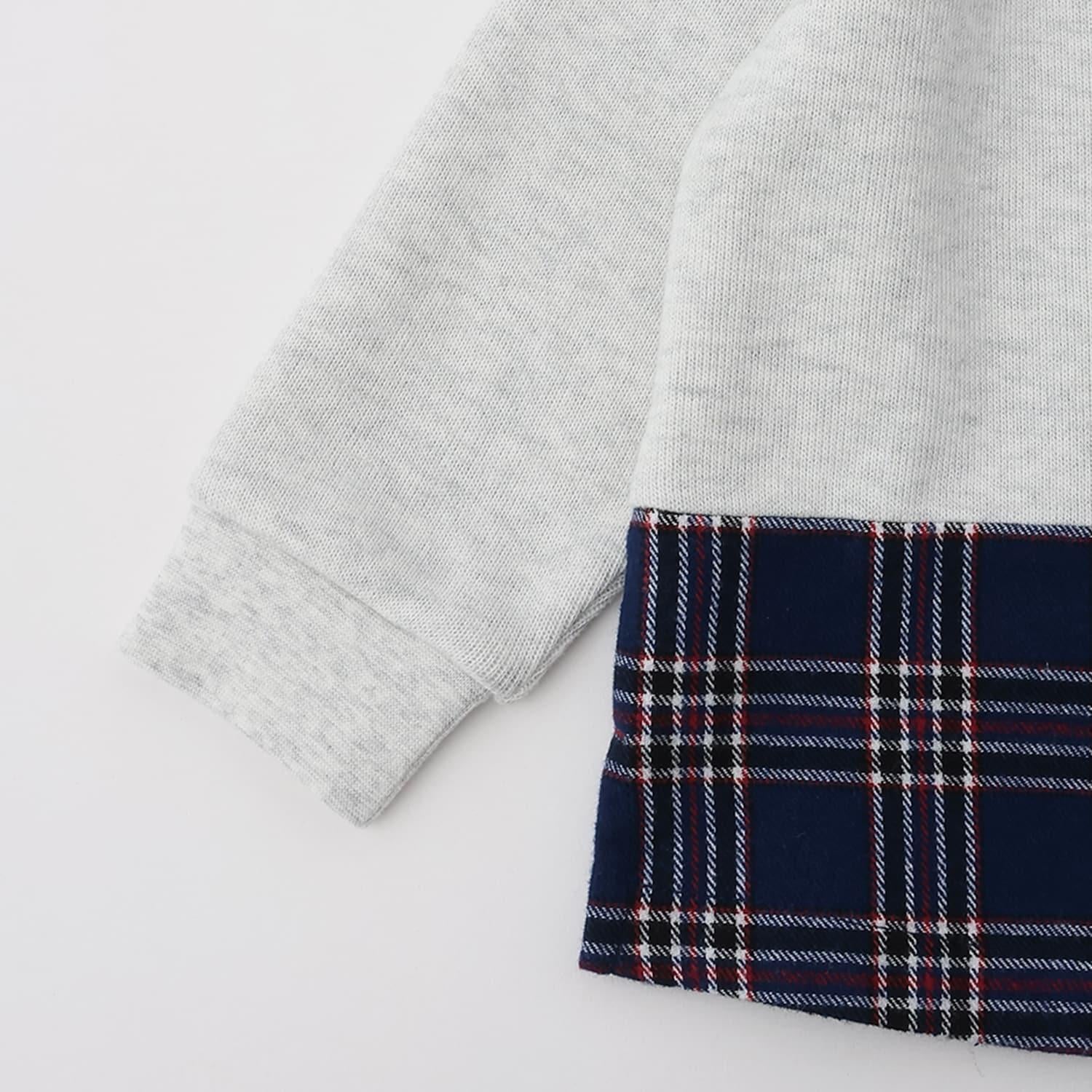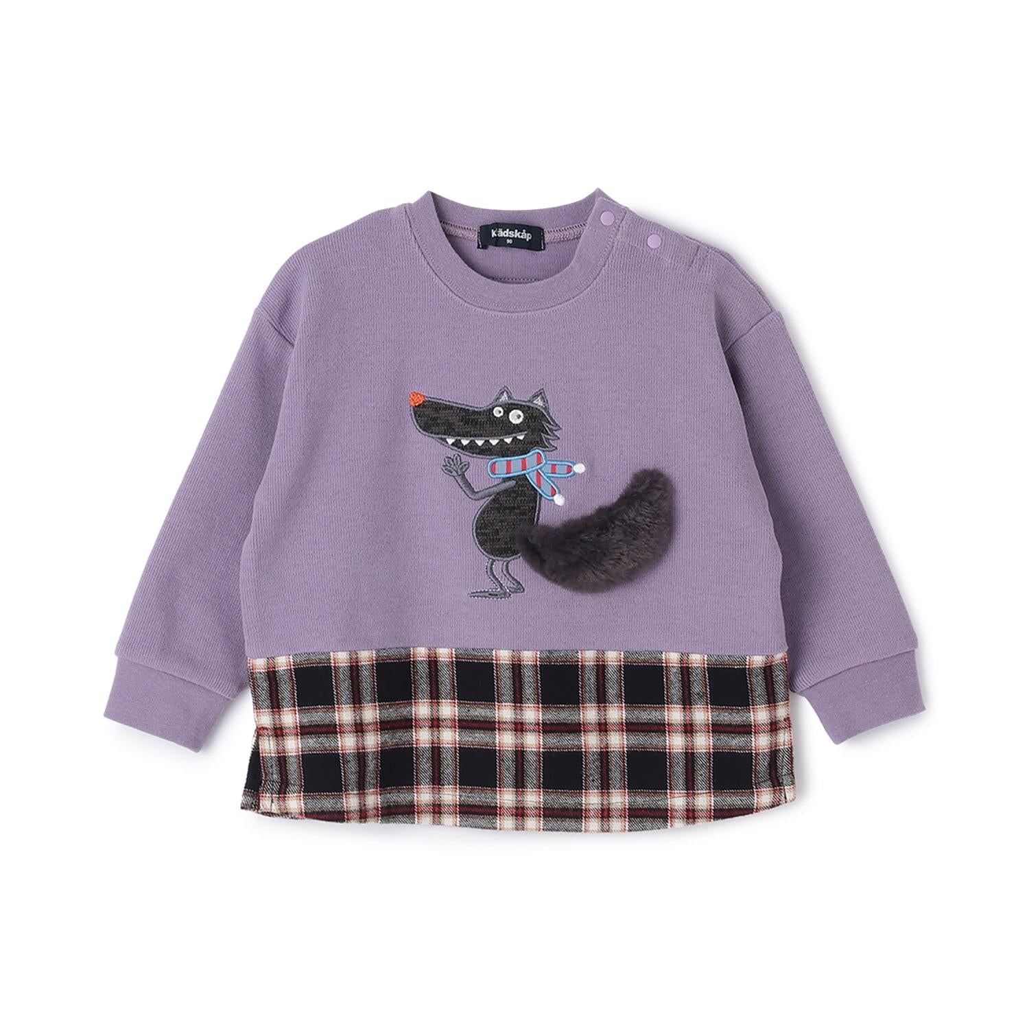 狼圖案拼接格子下襬衛衣
