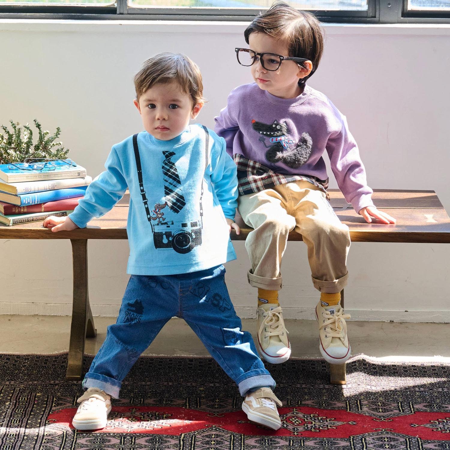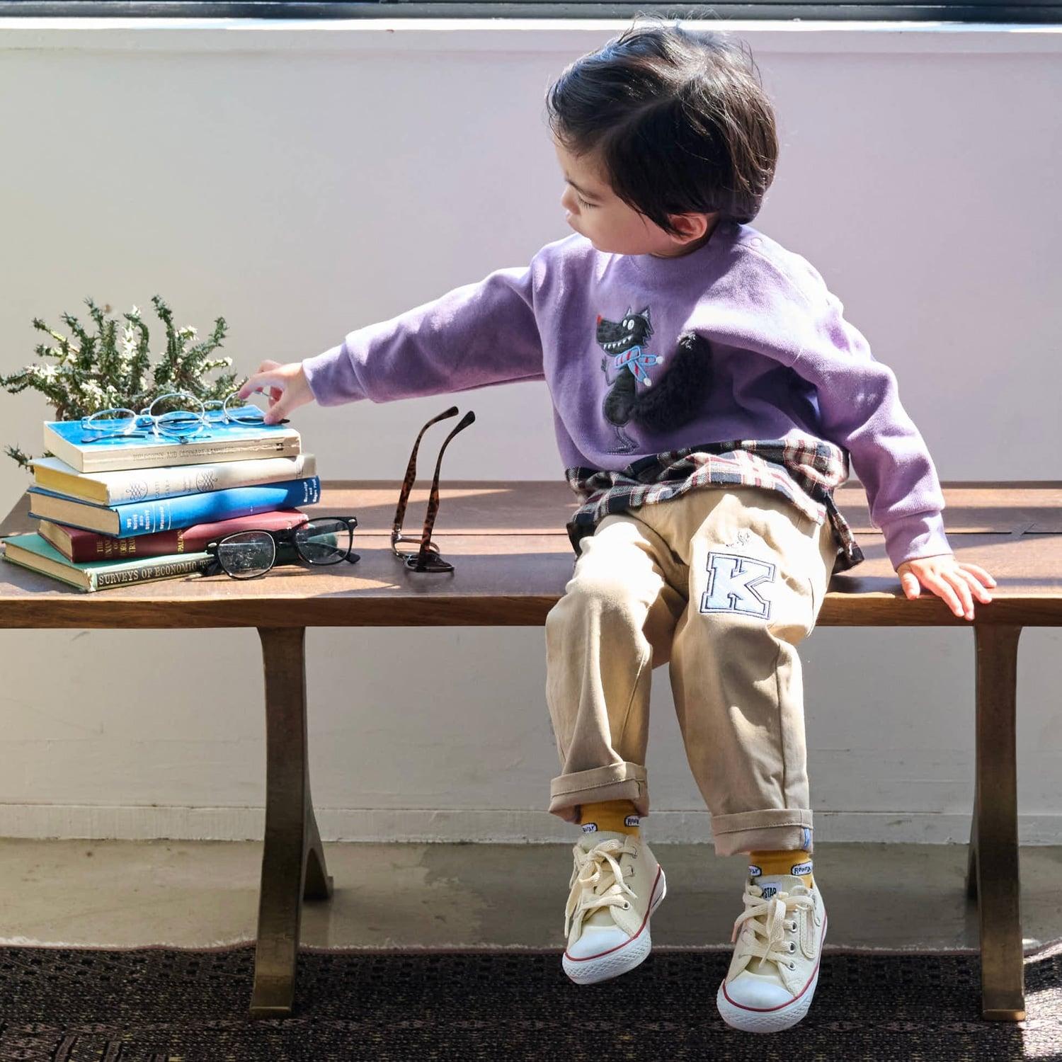 這款運動鞋上有 Trad 系列主題人物 "狼 "的可愛貼花。