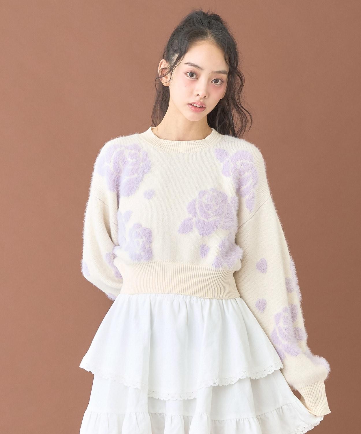 玫瑰圖案部分採用蓬鬆紗線,營造出立體感。