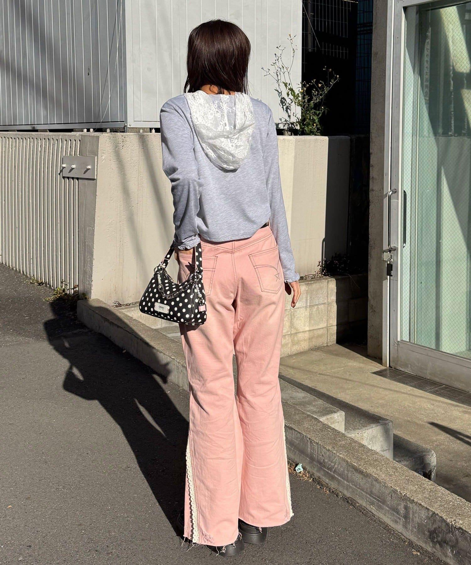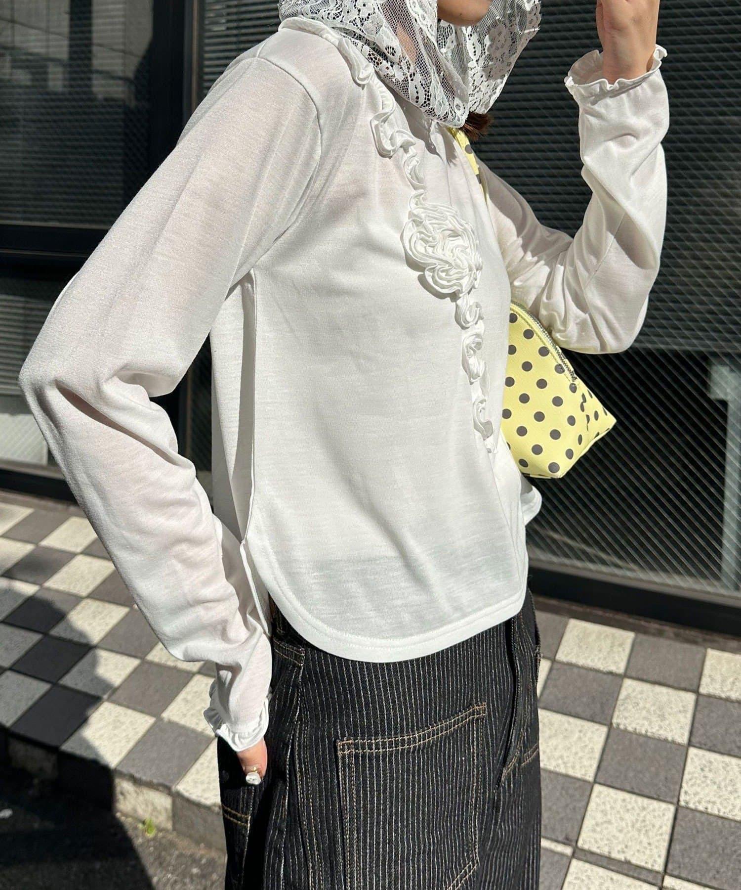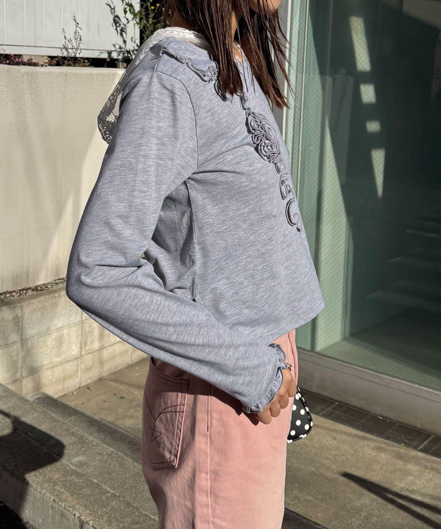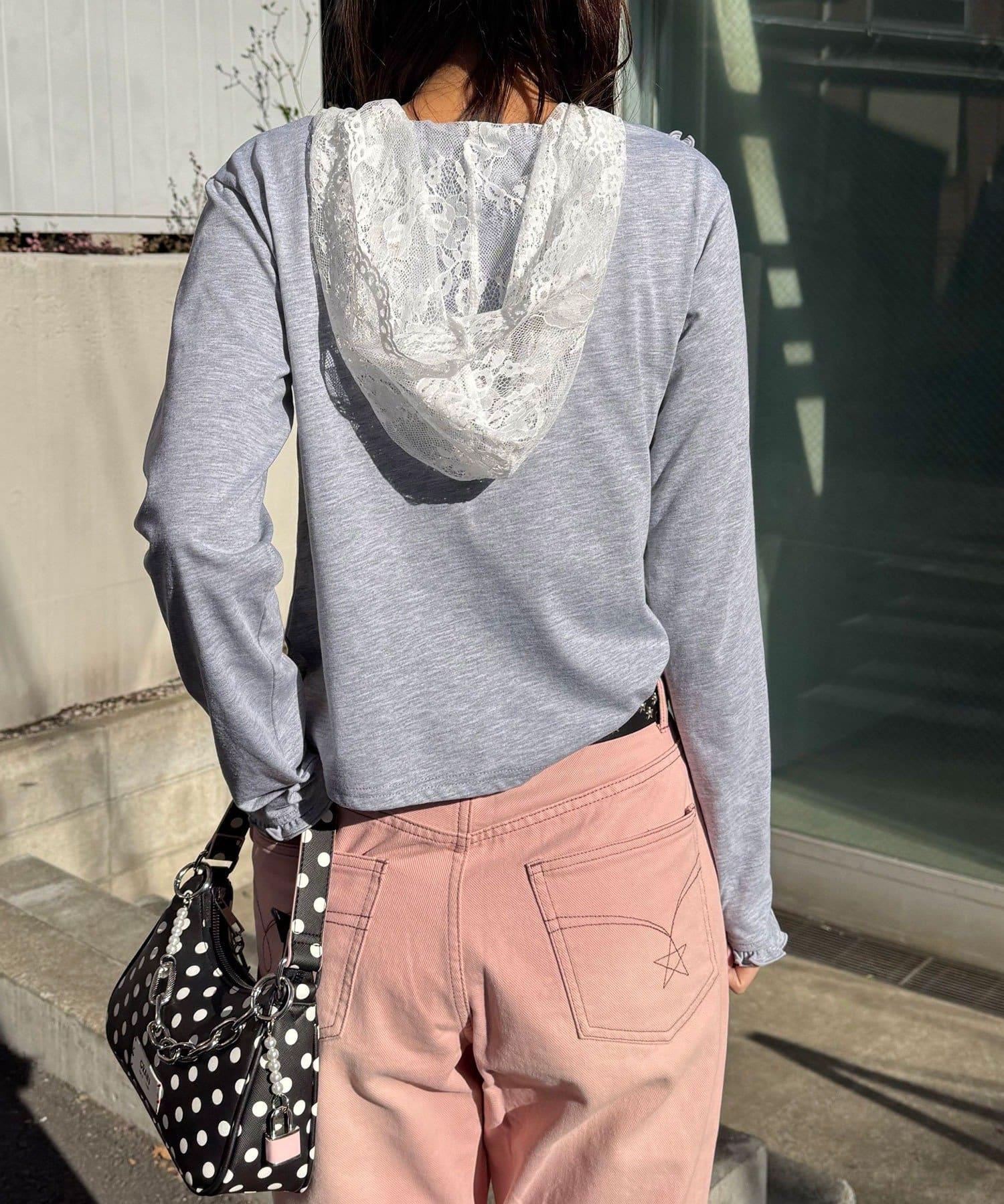 玫瑰荷葉蕾絲連帽薄紗上衣