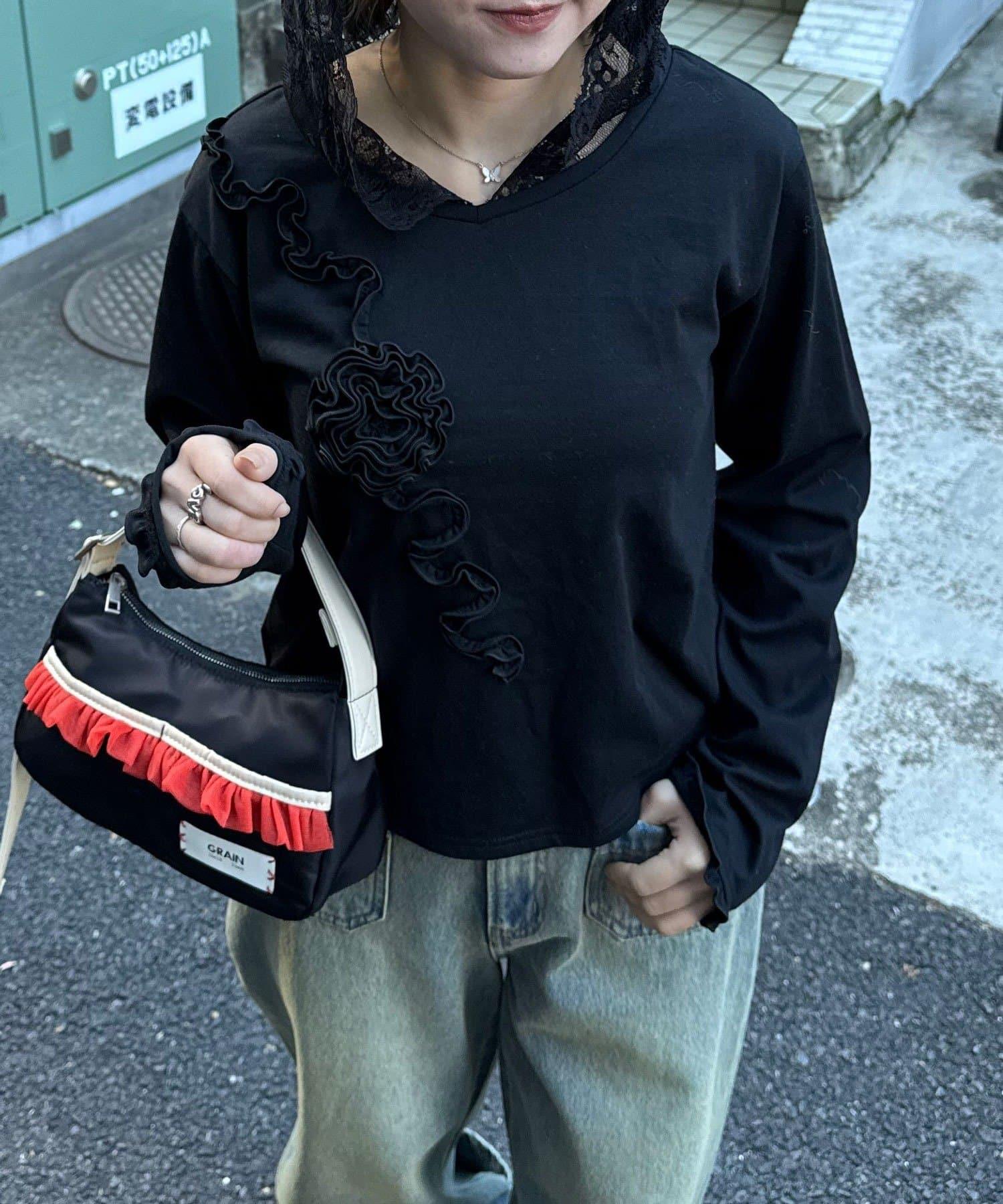 大面積玫瑰圖案和波浪形荷葉邊的透視上衣,吸引眼球,讓你成為全場的焦點。