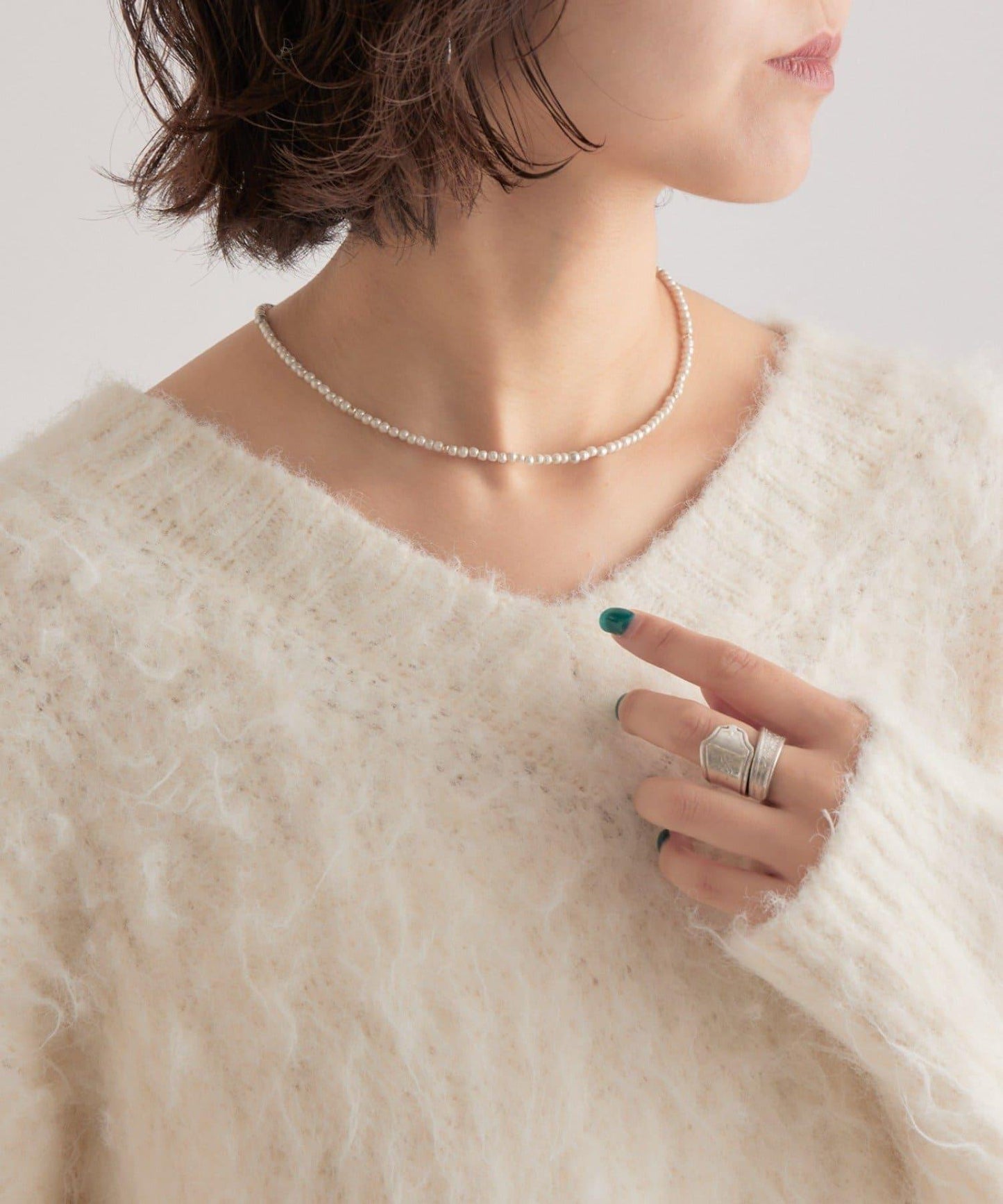 這條珍珠項鍊由一排排小珍珠組成,顯得格外柔美。