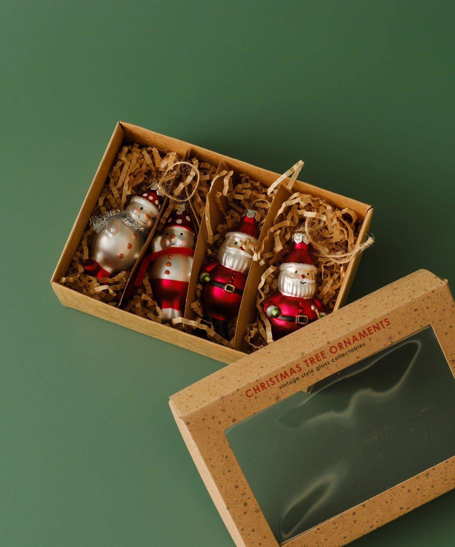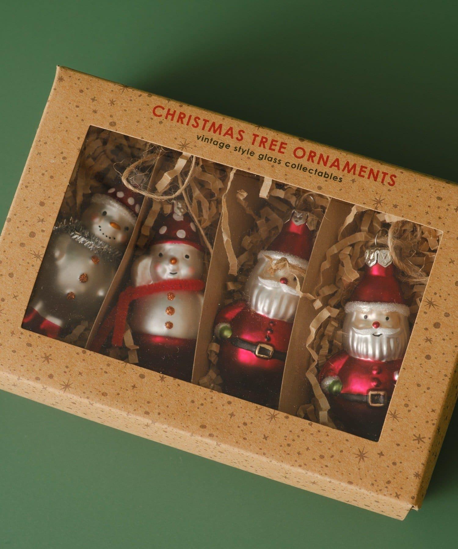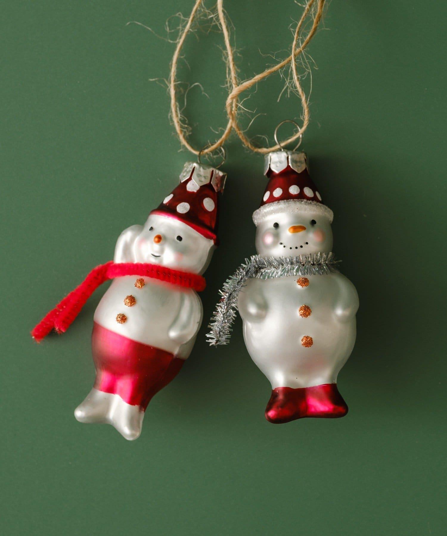 這套飾品包含雪人和聖誕老人兩種復古玻璃風格的飾品。
