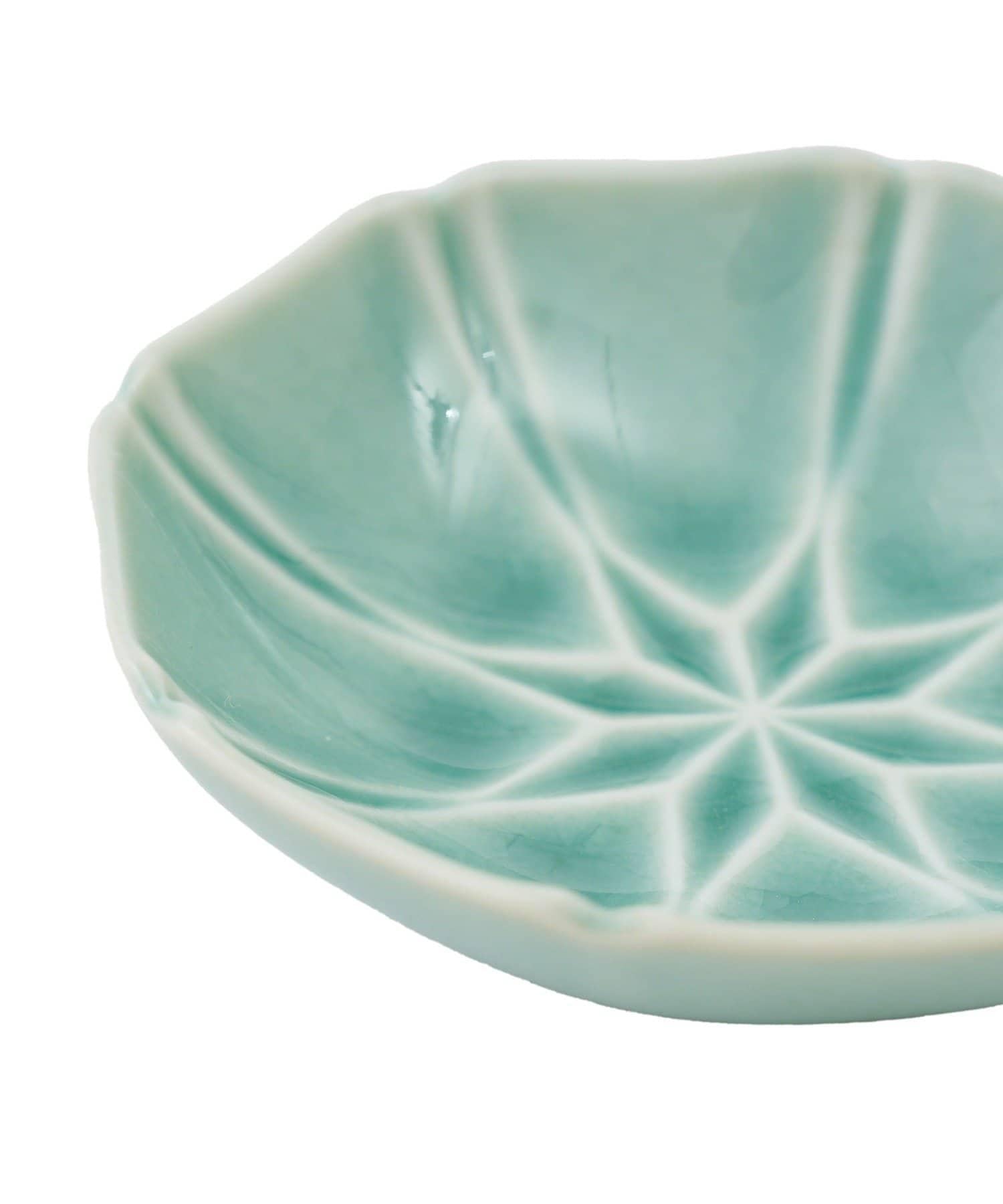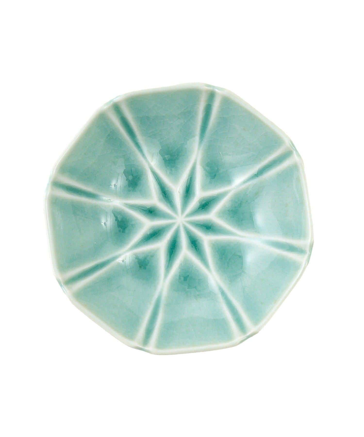 用玻璃釉製作的帶有美麗穿孔圖案的小碟子。