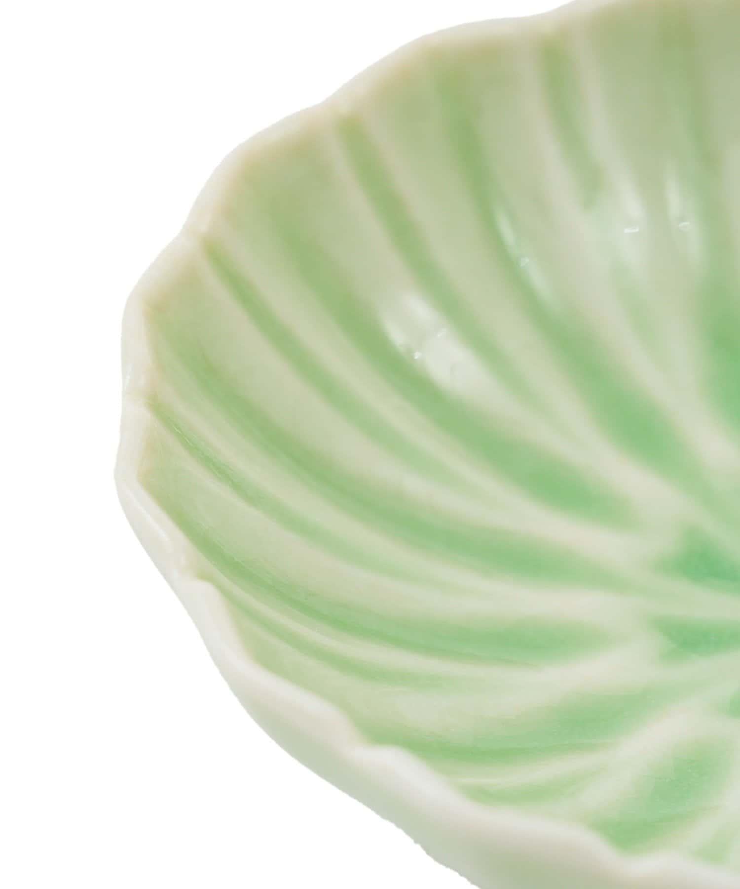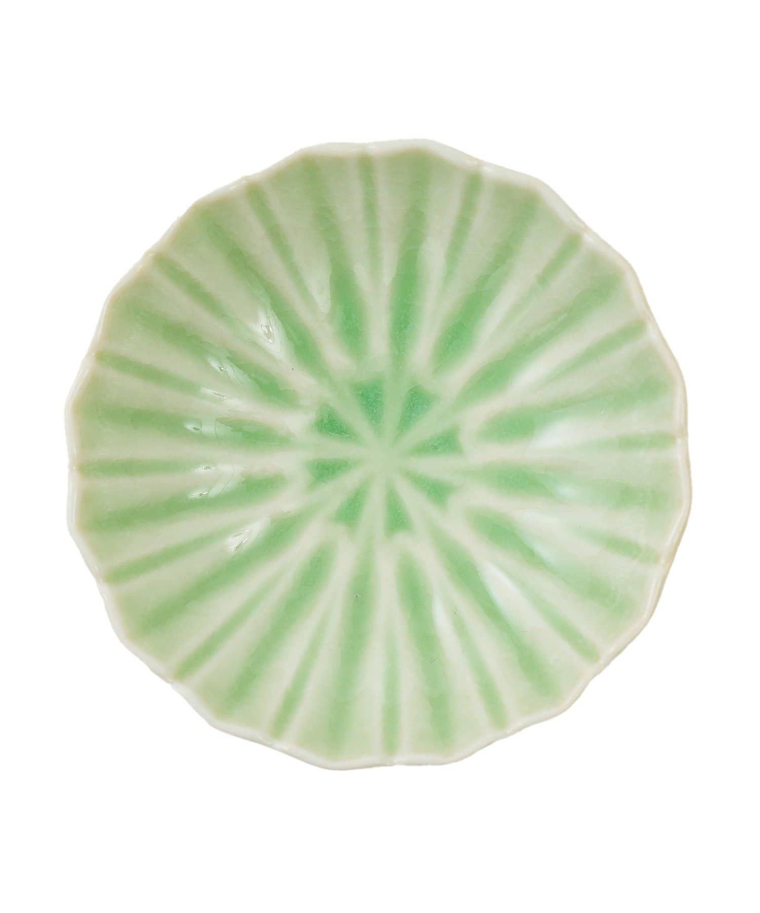 用玻璃釉製作的帶有美麗穿孔圖案的小碟子。