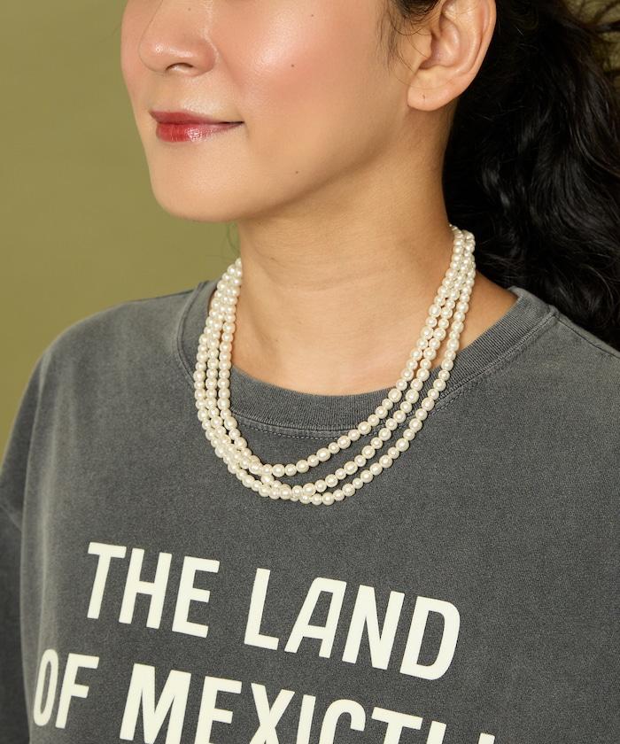項鍊由玻璃製成,表面鍍有人造珍珠。