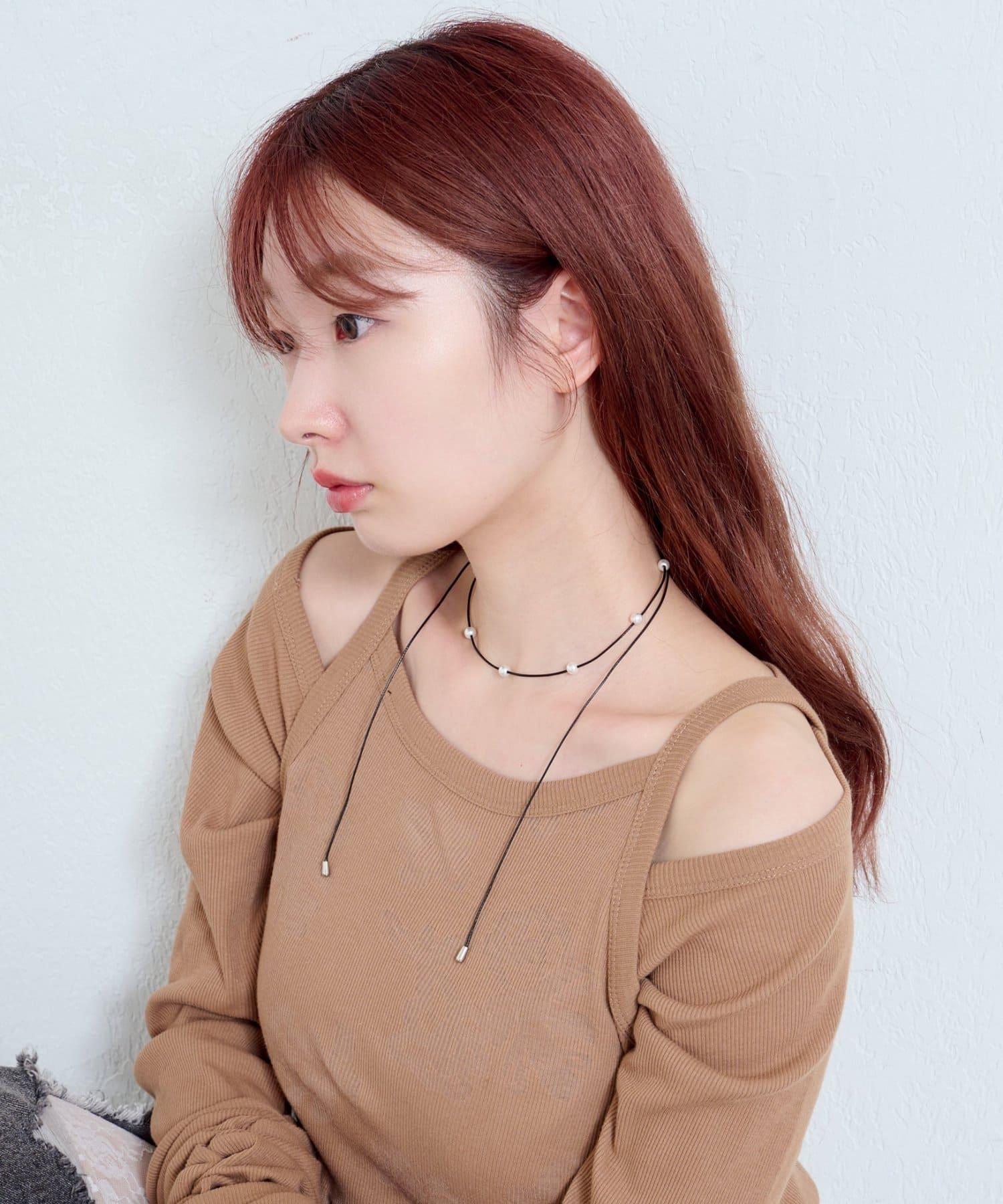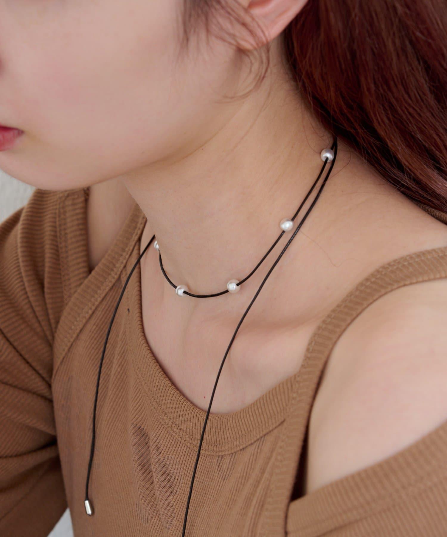 在簡單的繩索上鑲嵌珍珠長珠的多向項鍊。