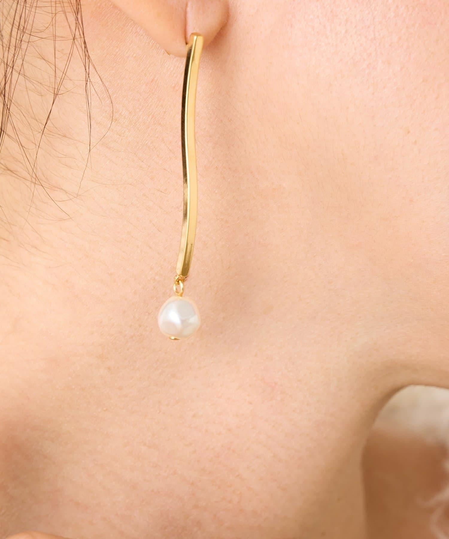 這對耳環採用波浪形設計,尖端鑲有珍珠。