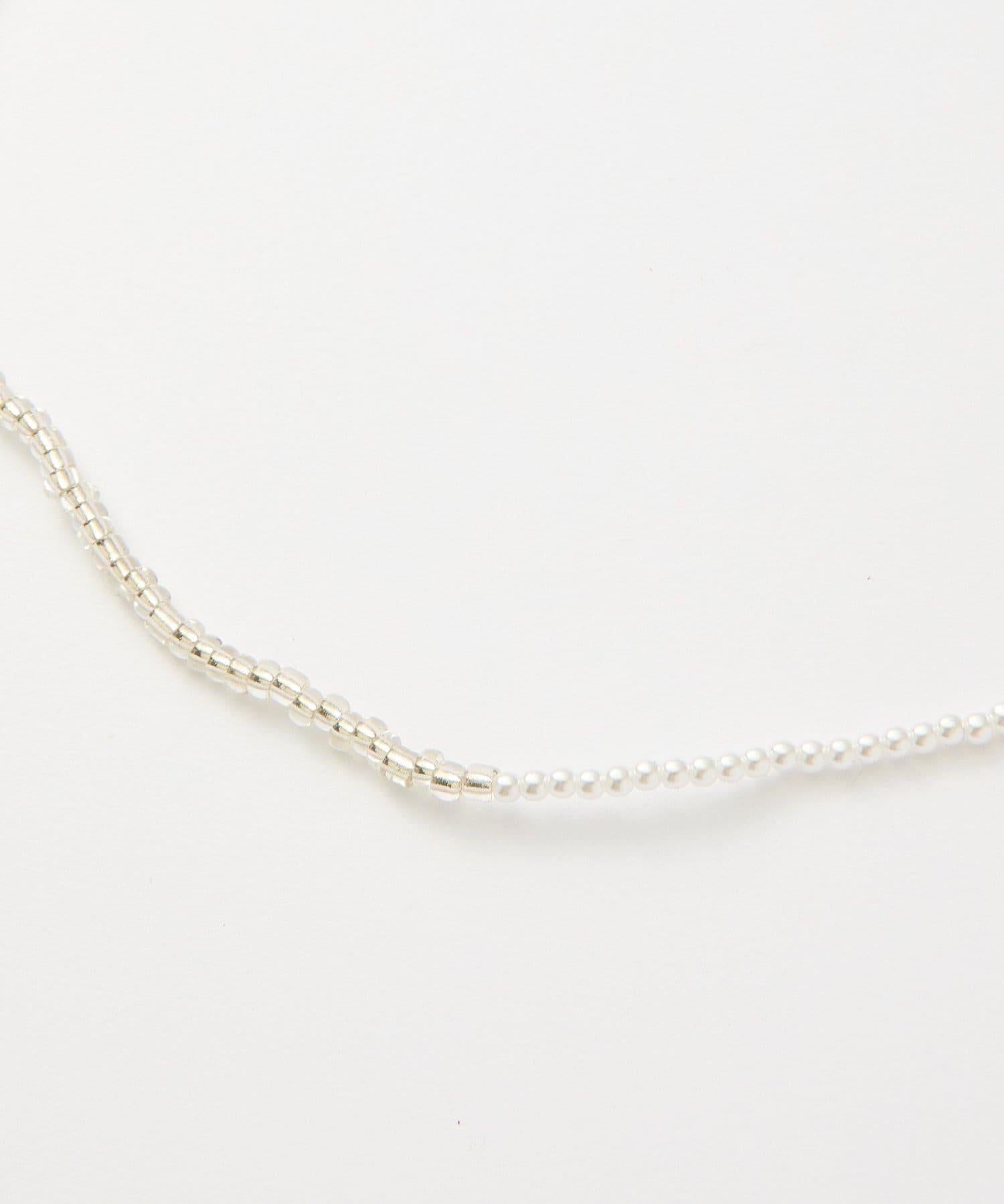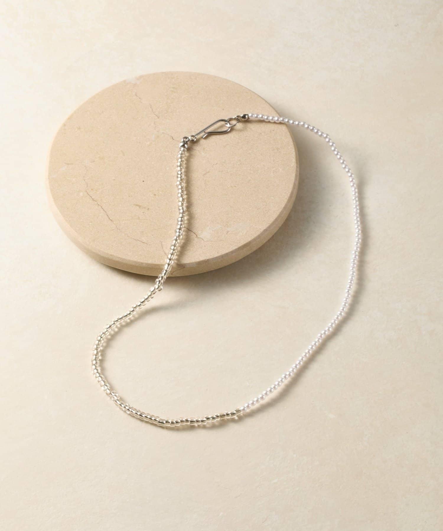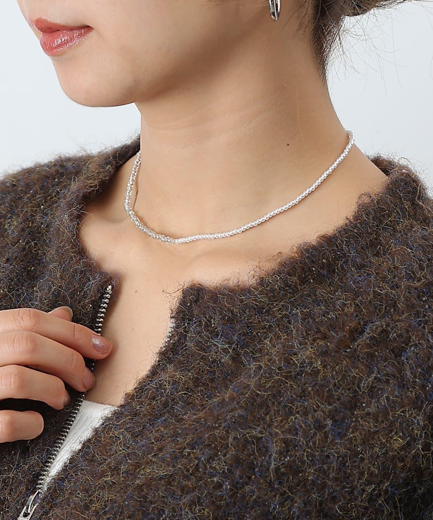 這款時尚項鍊兩側飾有透明玻璃珠和樹脂珍珠,在頸間營造出女性的迷人魅力。