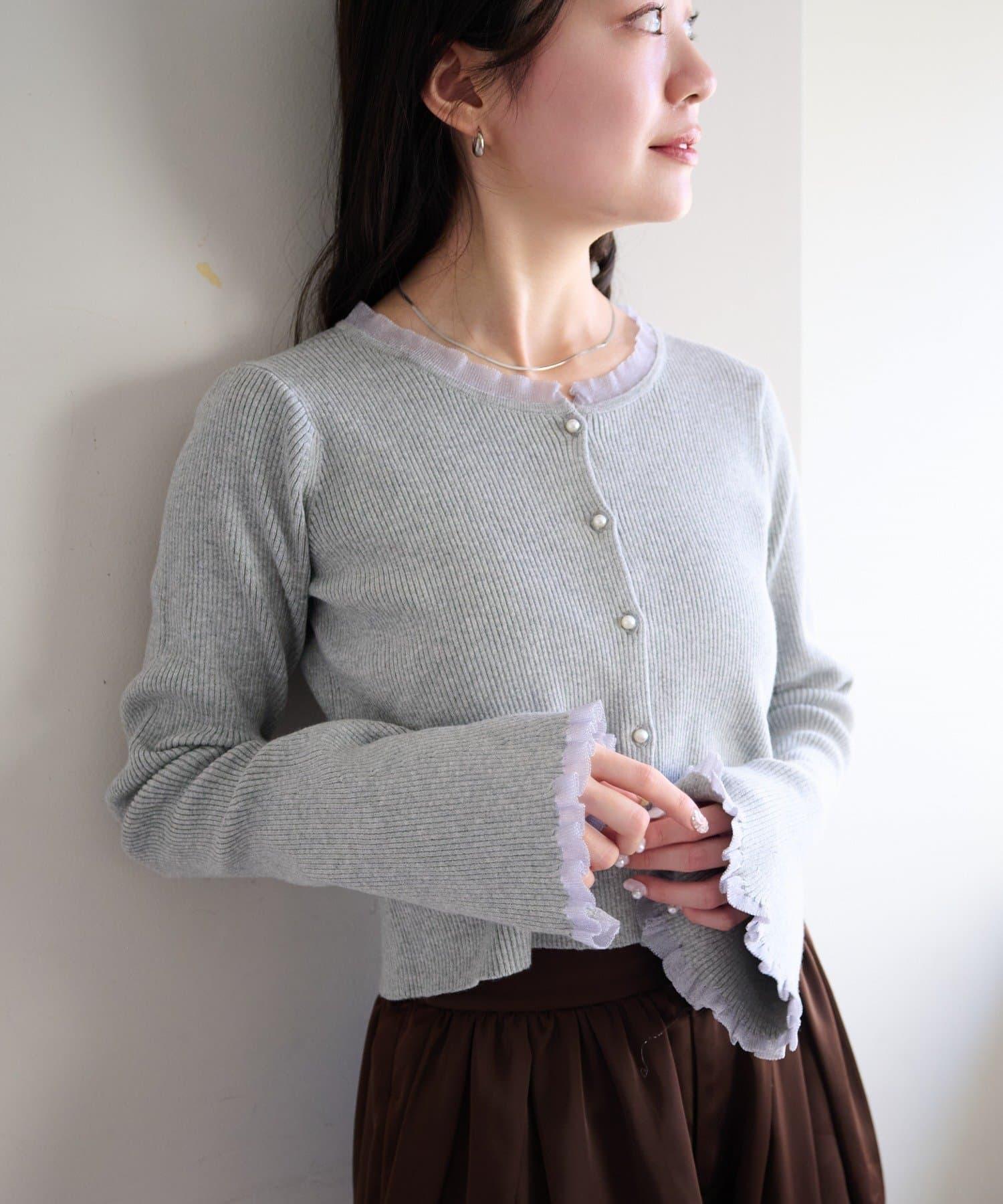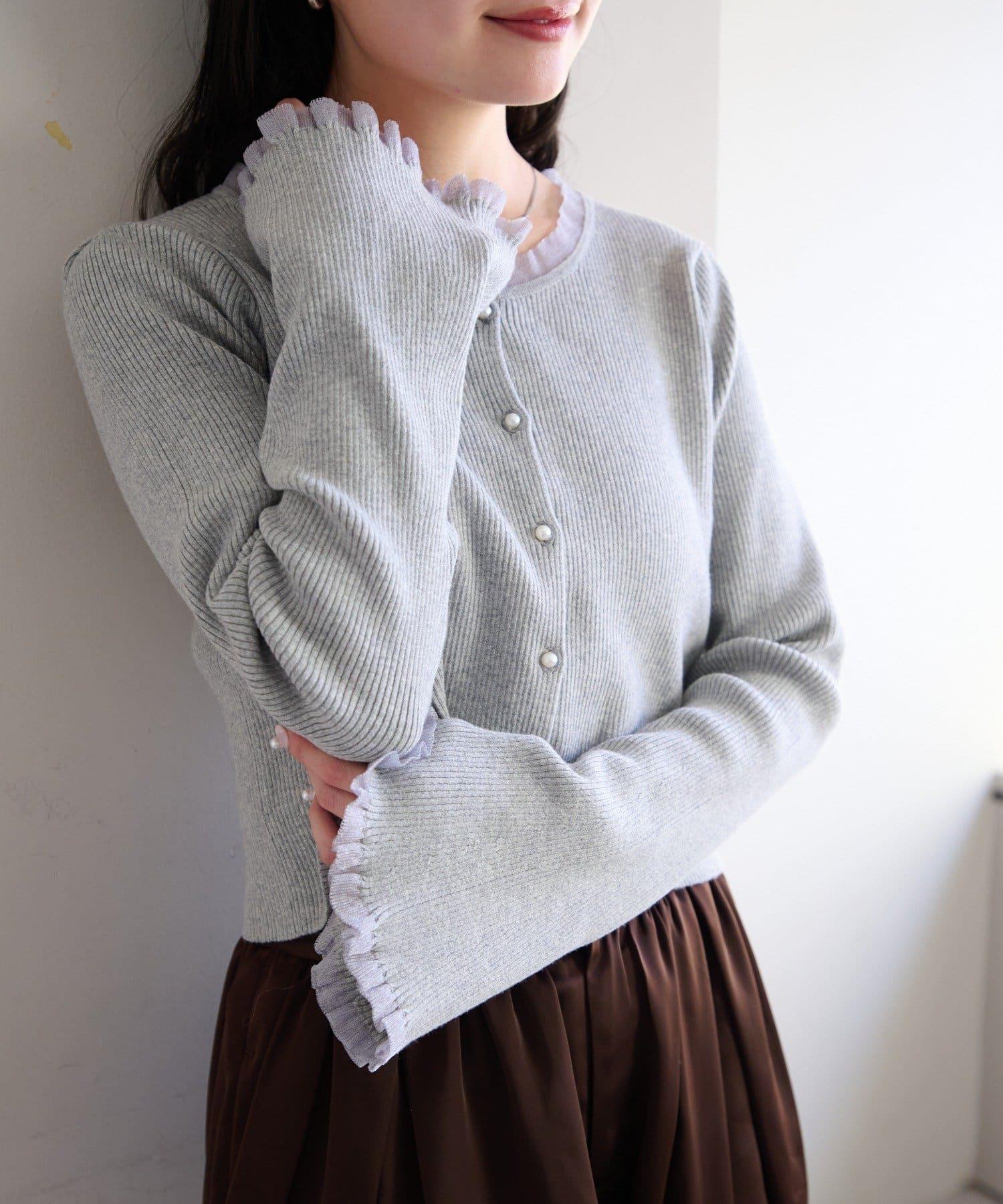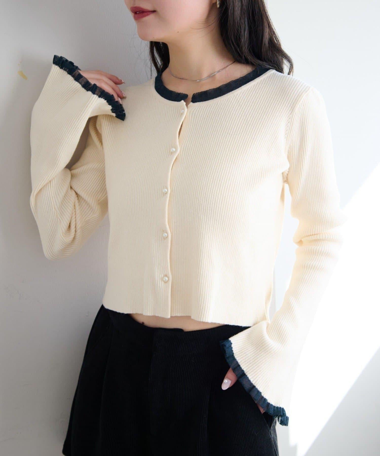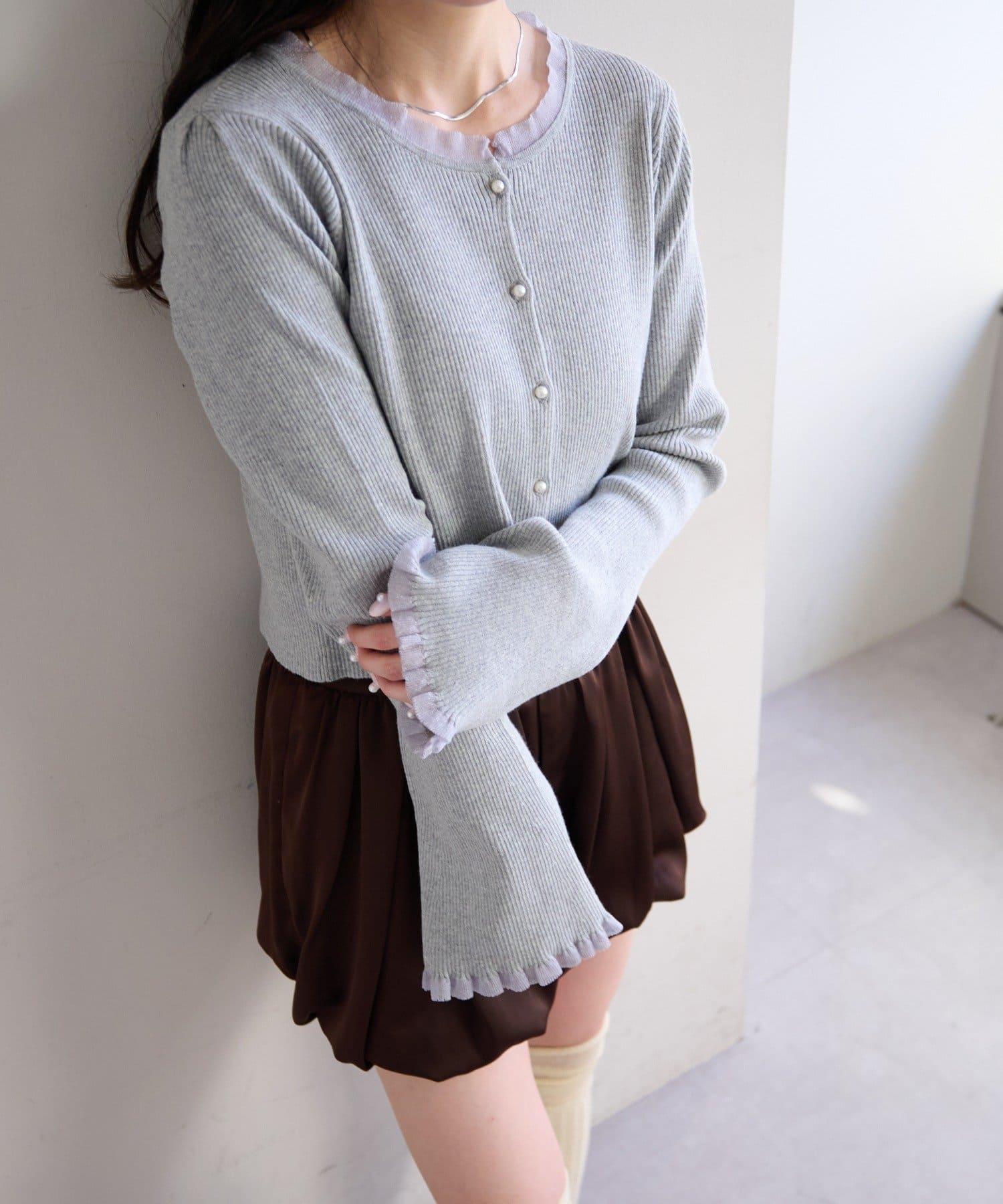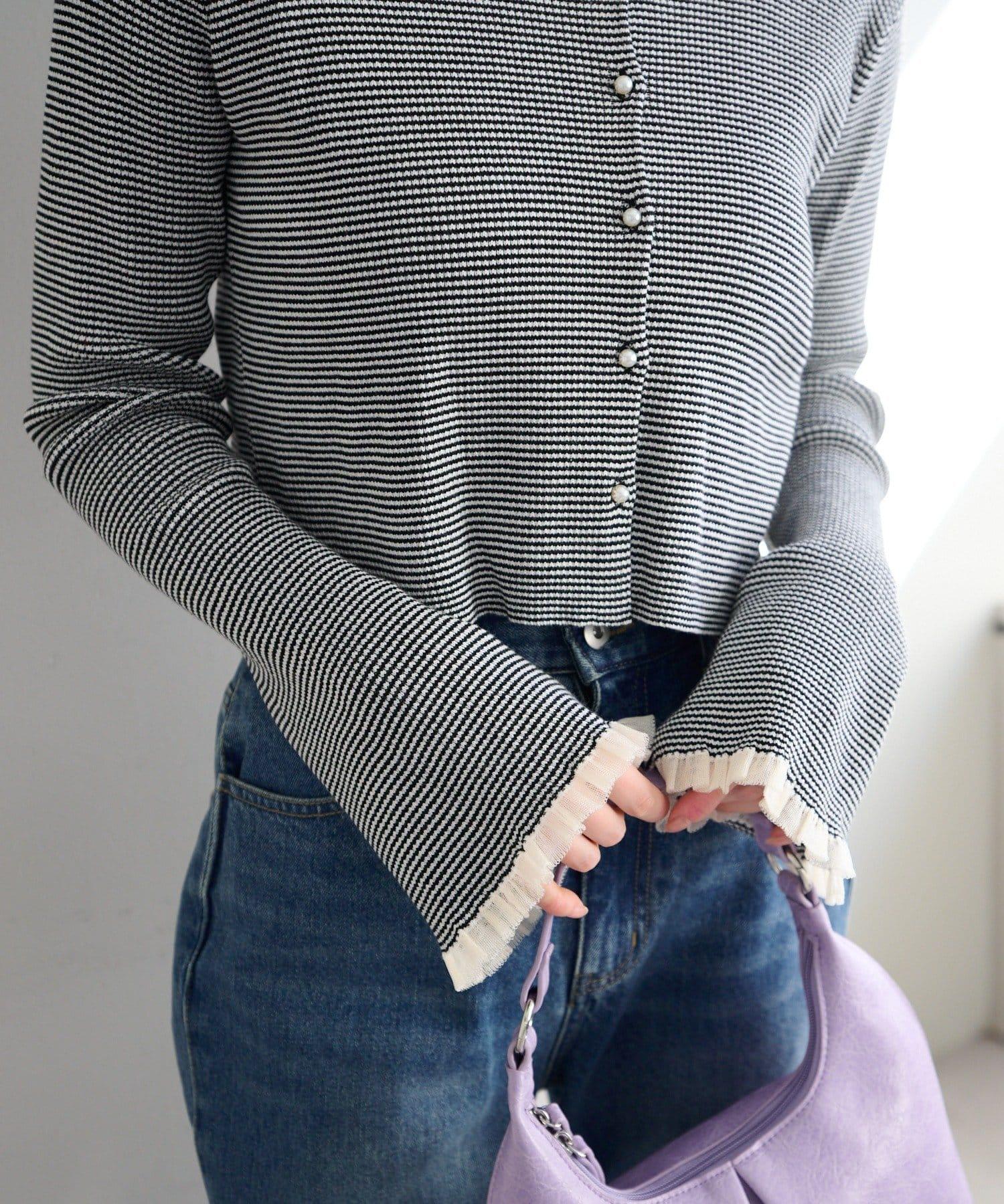 珍珠紐扣荷葉邊針織開衫