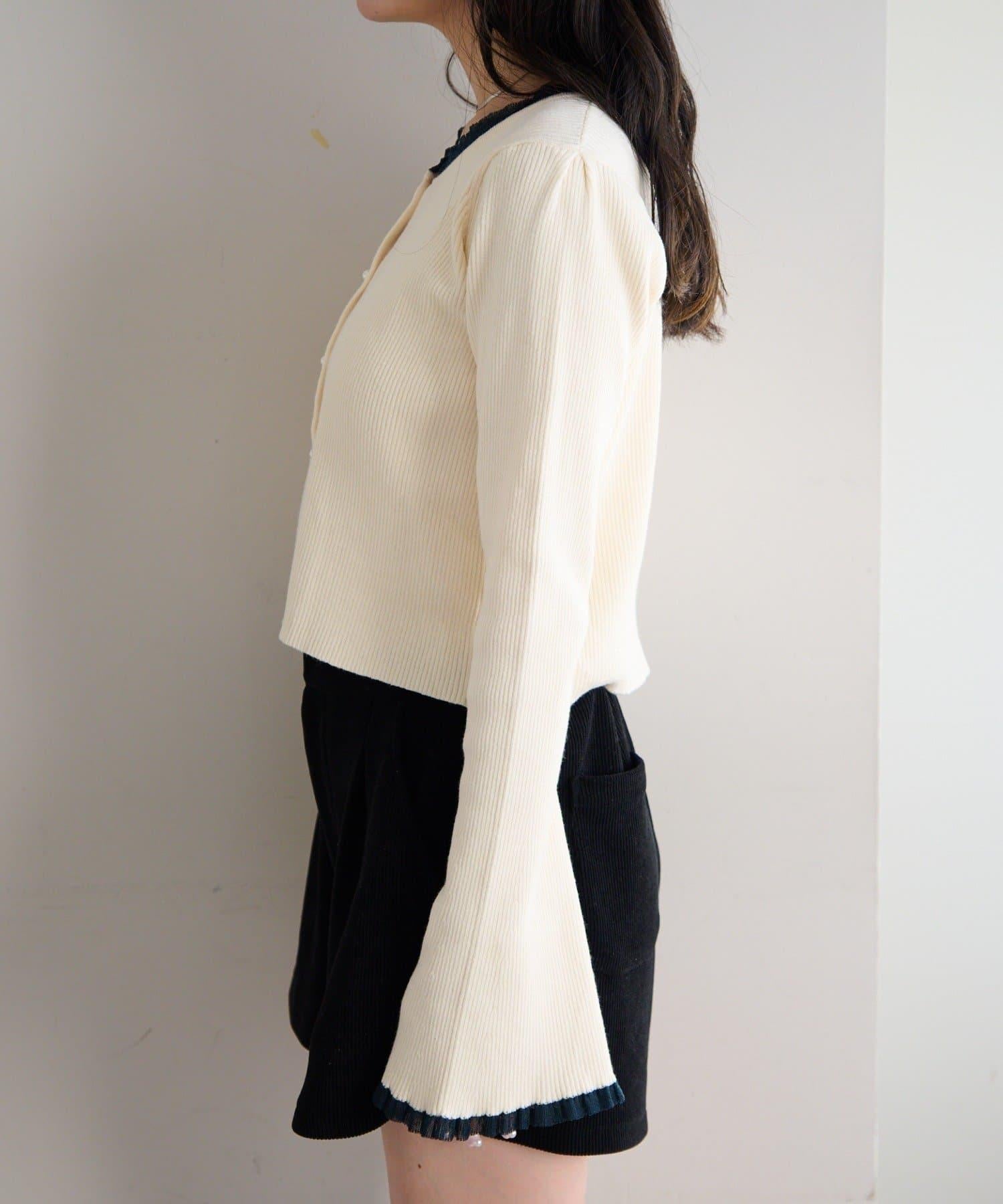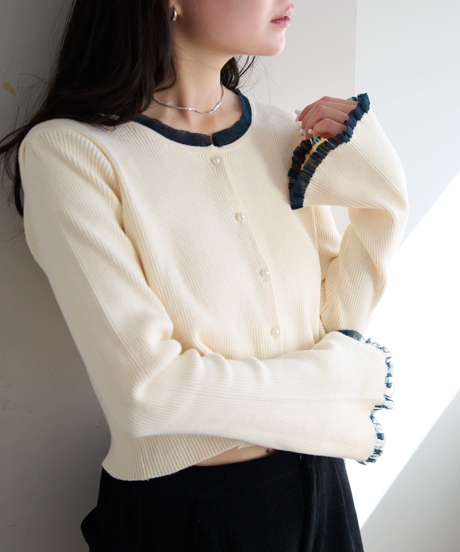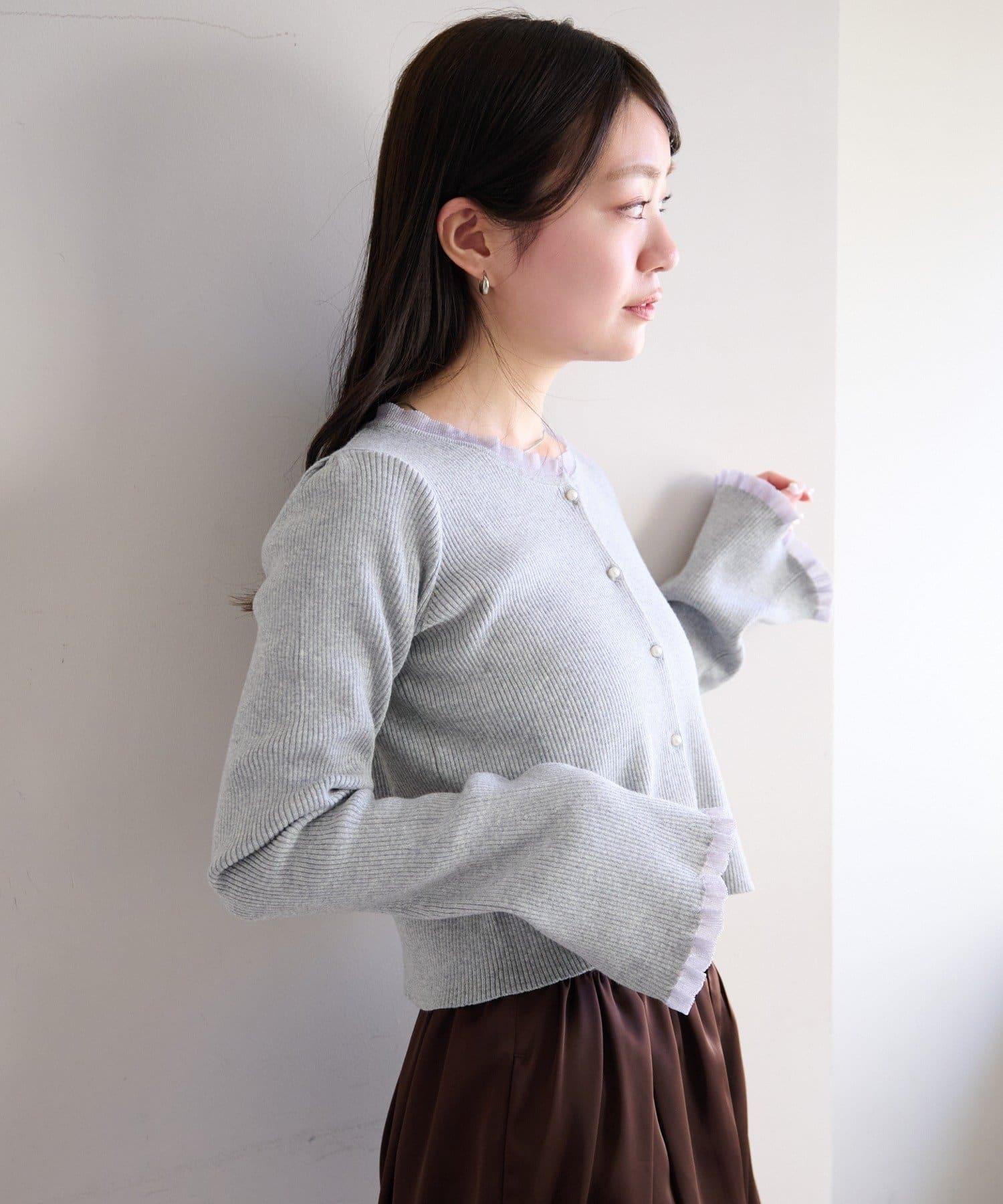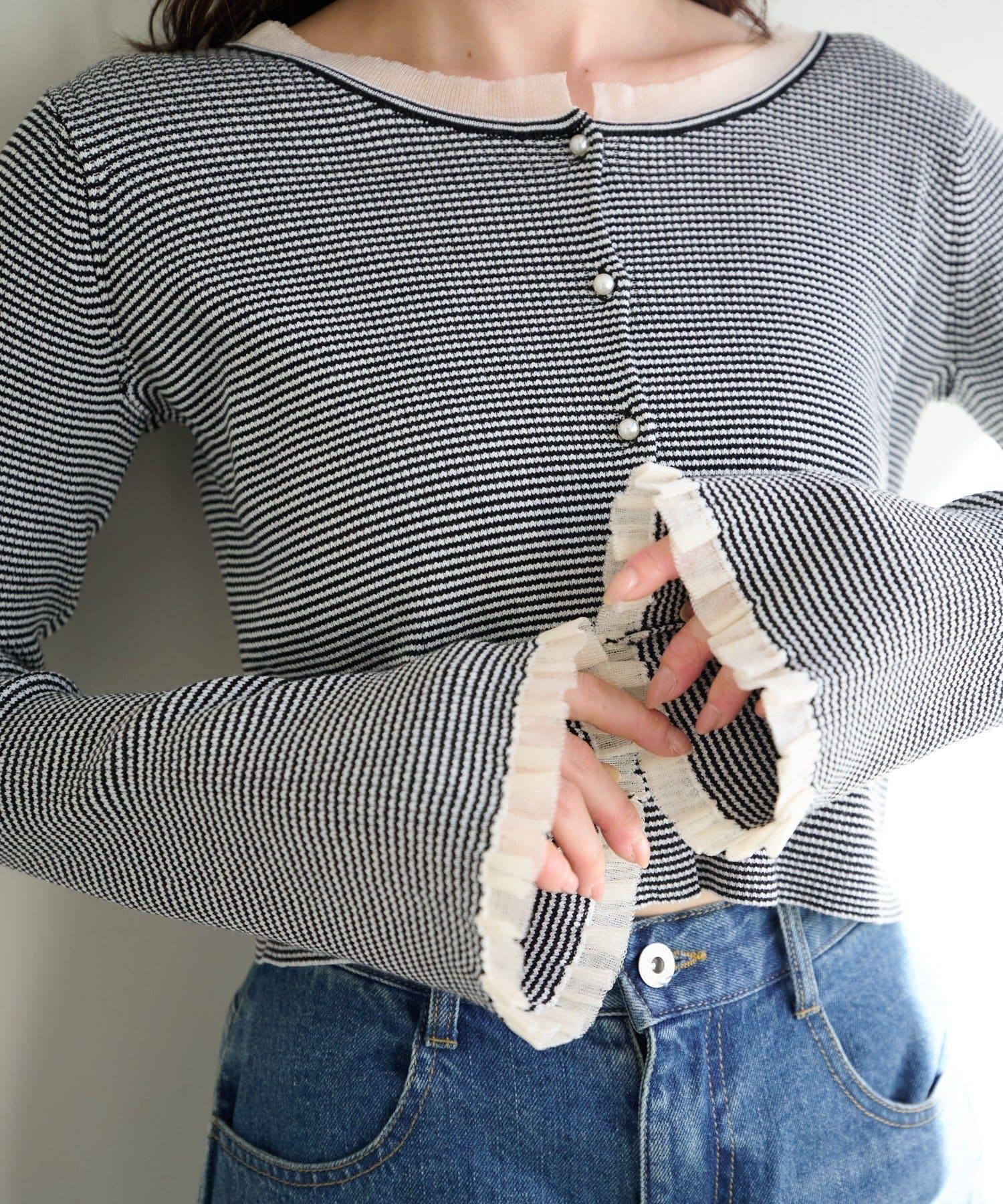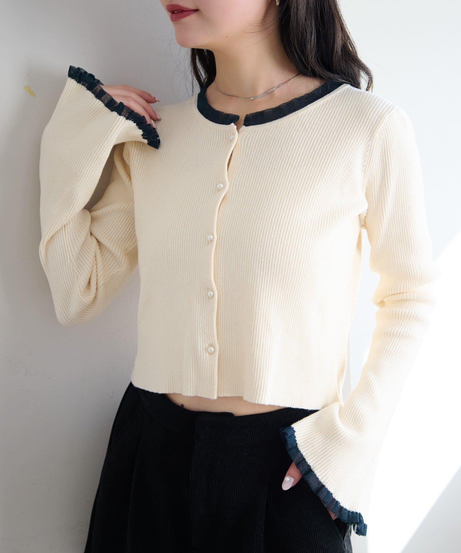 珍珠紐扣荷葉邊針織開衫