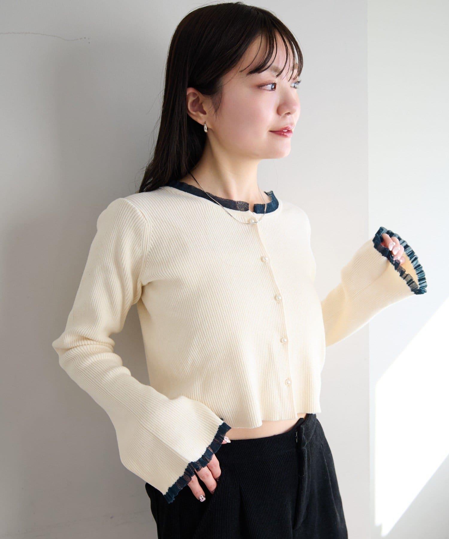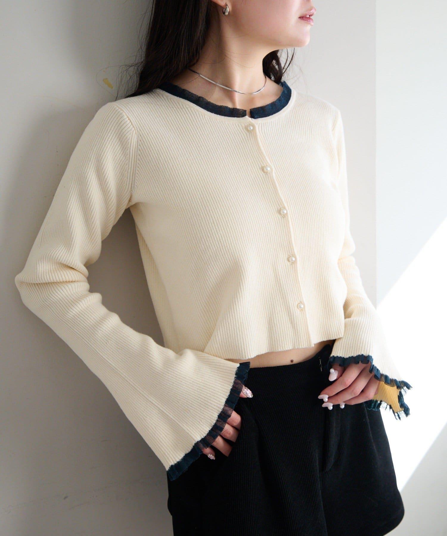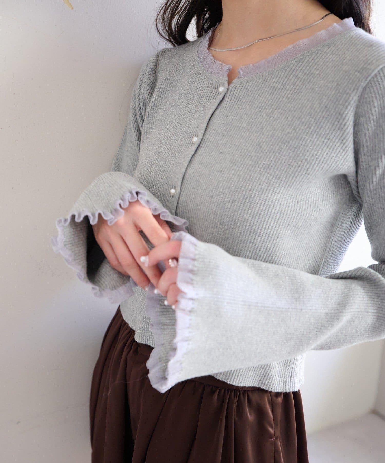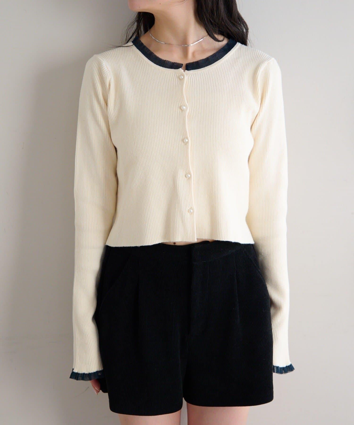 珍珠紐扣荷葉邊針織開衫
