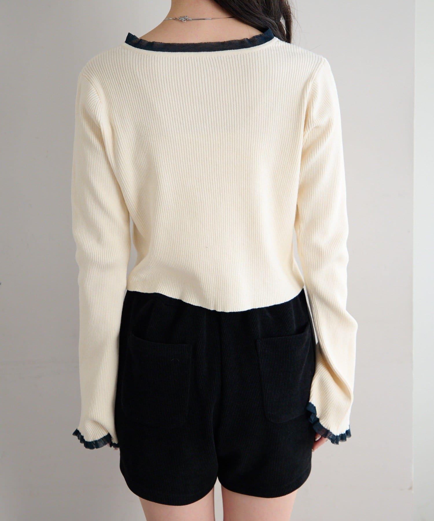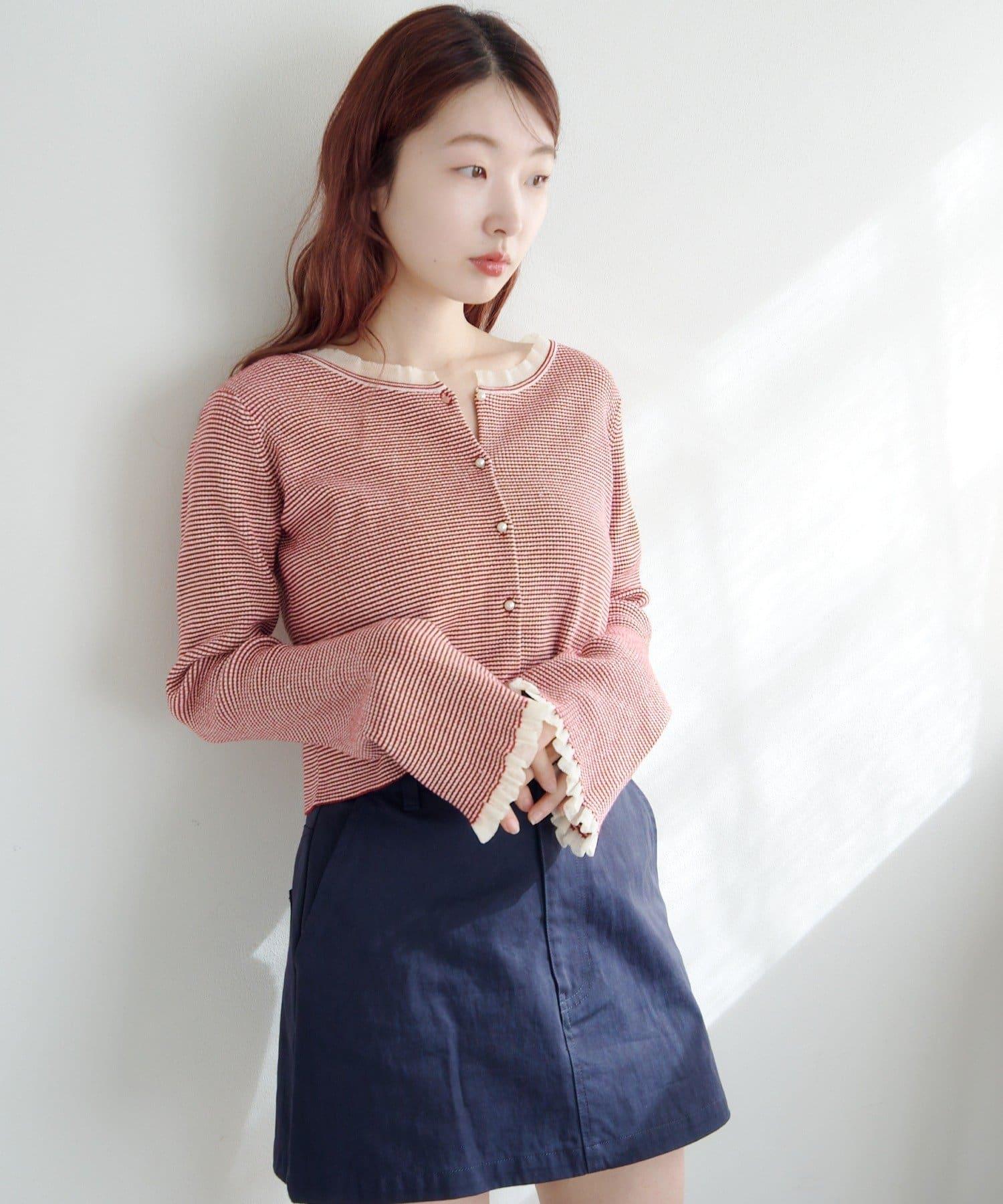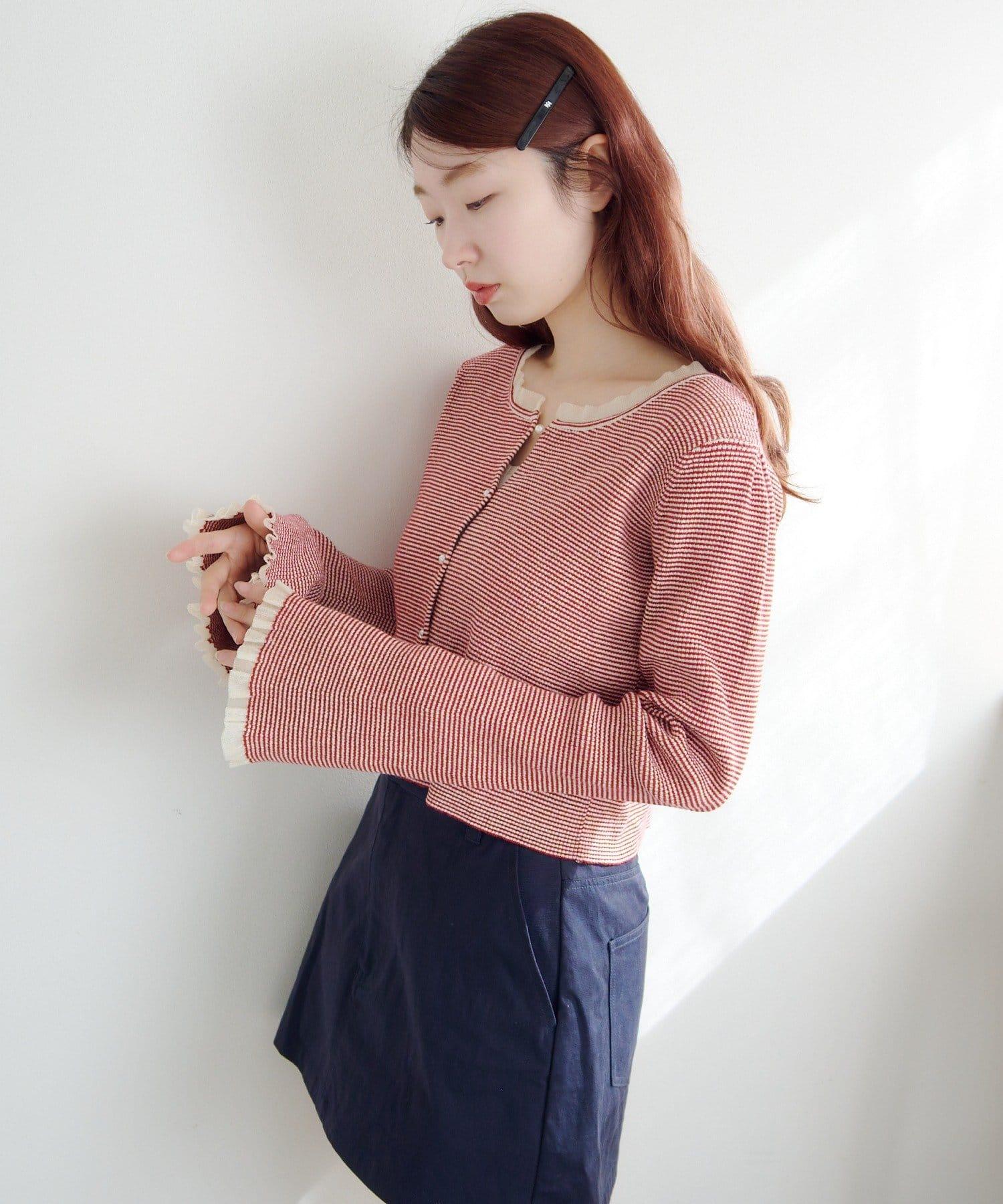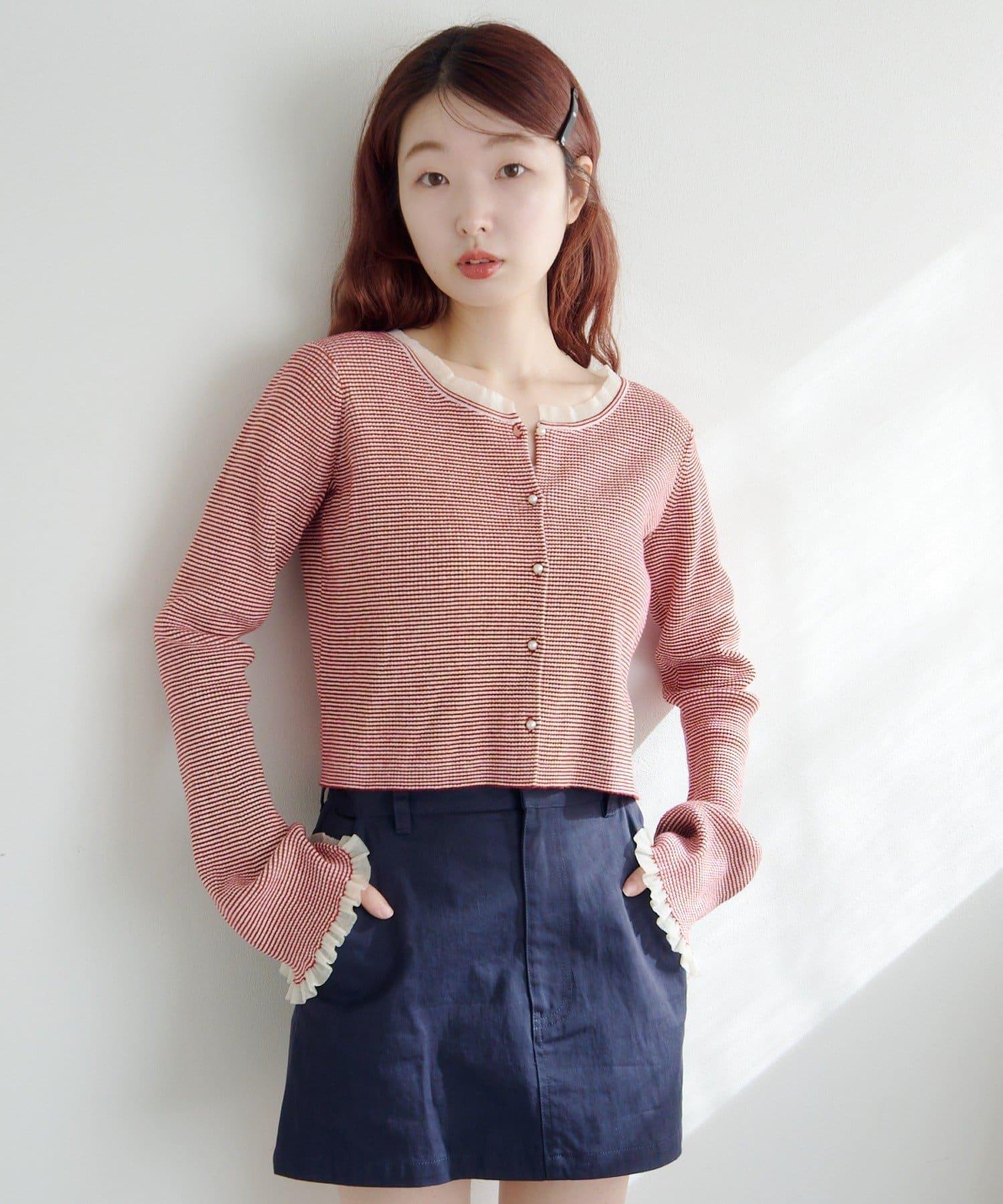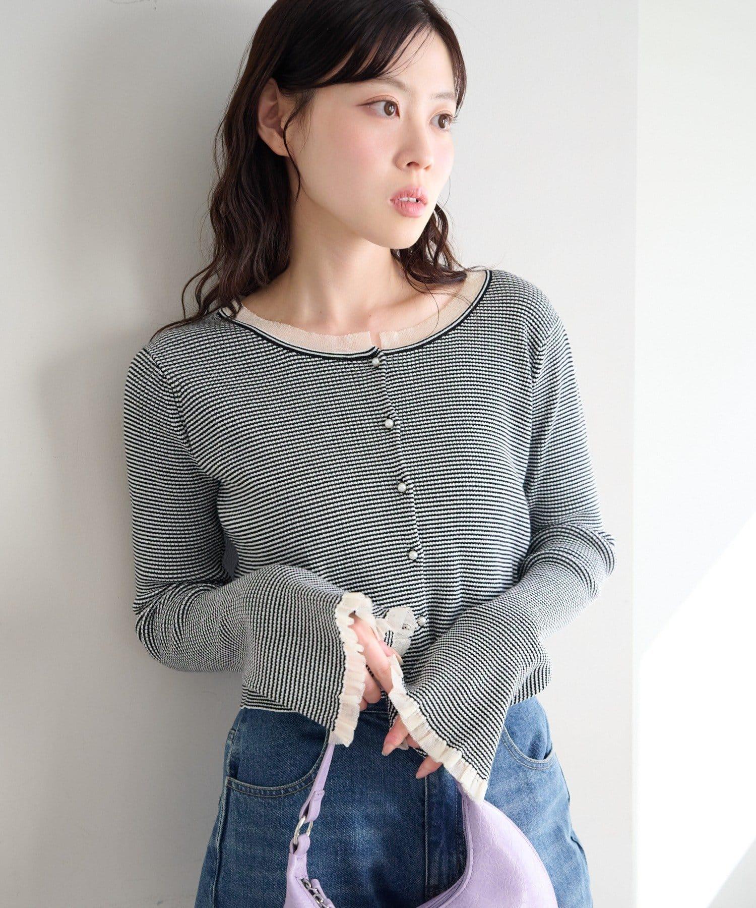 珍珠紐扣荷葉邊針織開衫