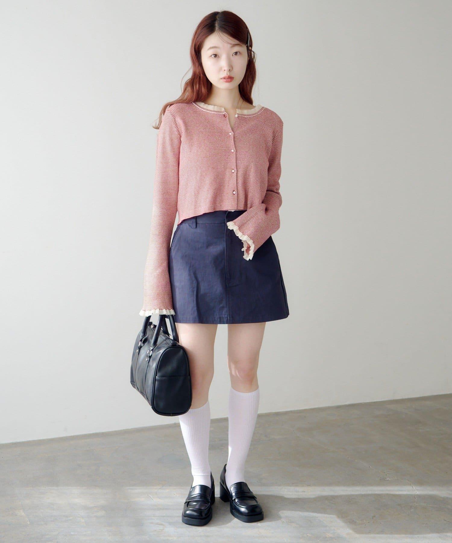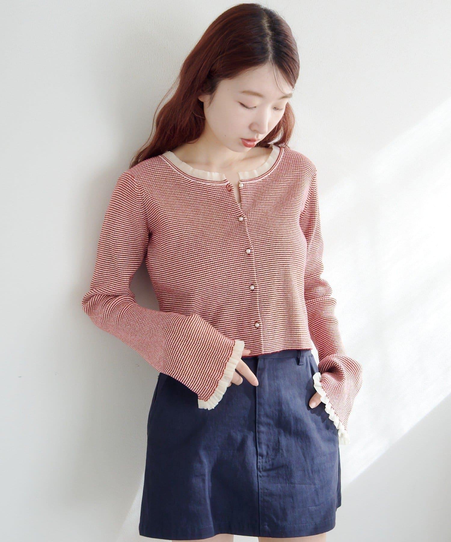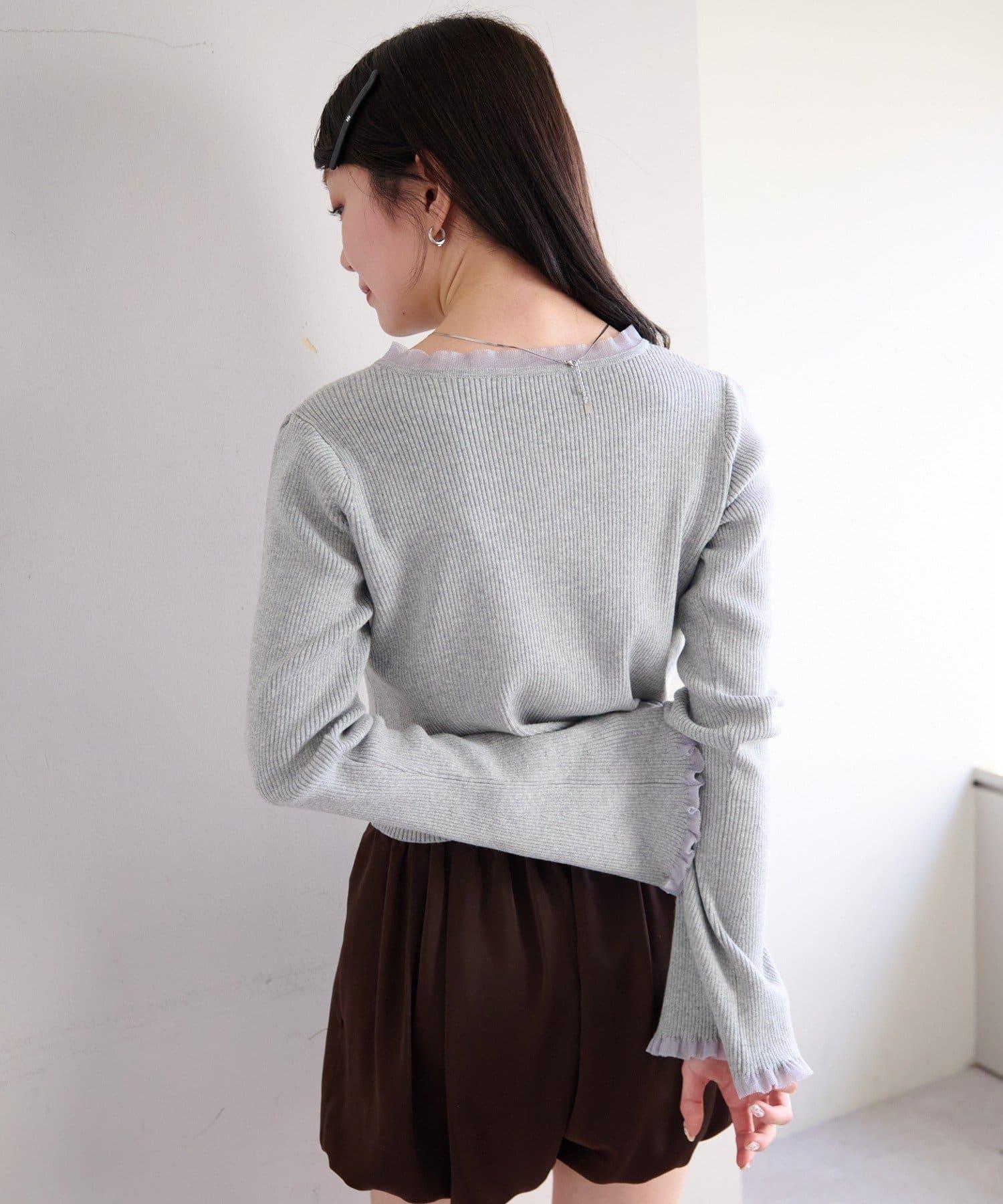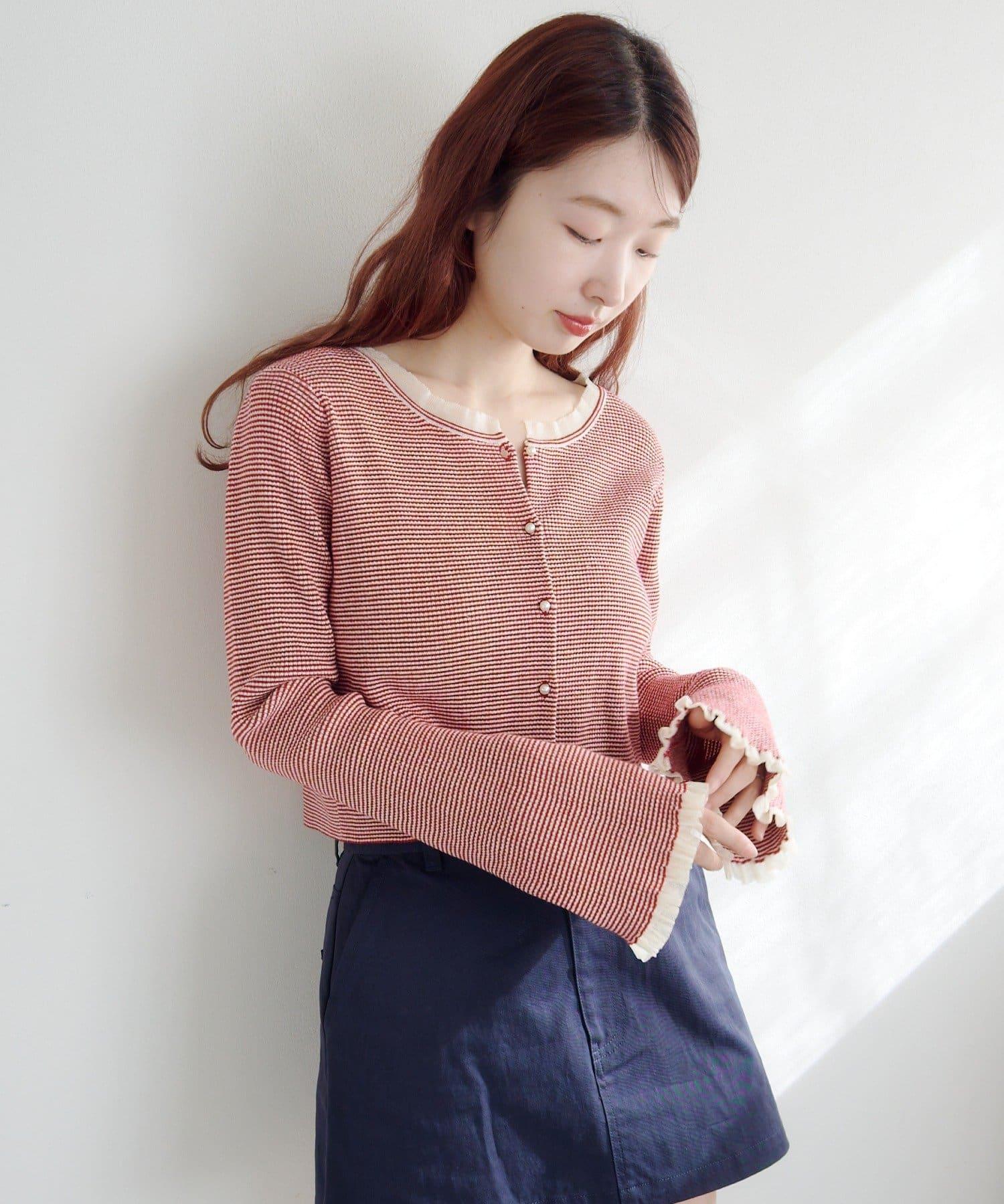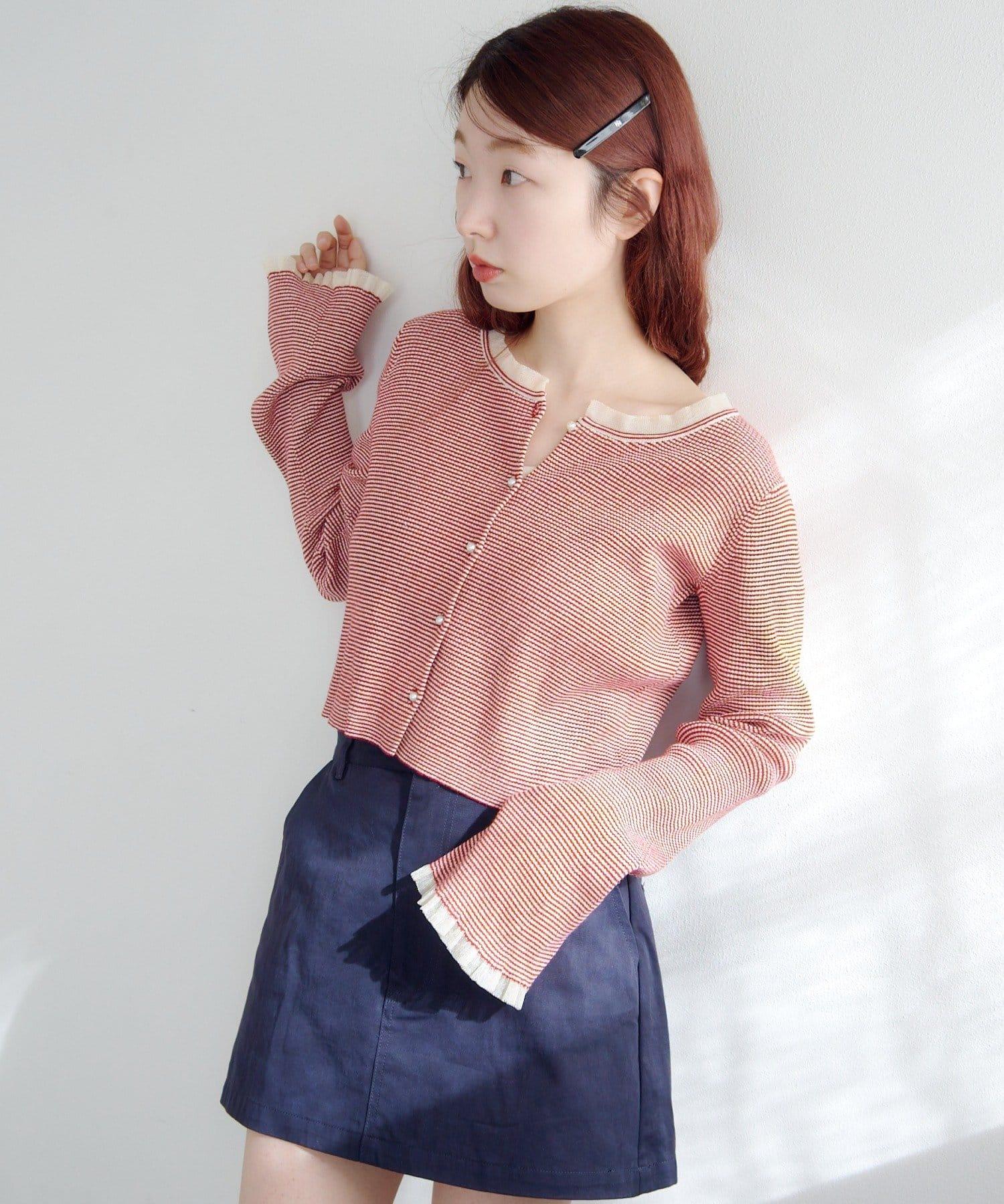 珍珠紐扣荷葉邊針織開衫