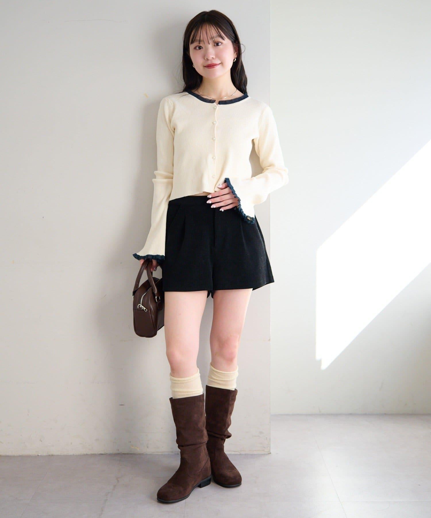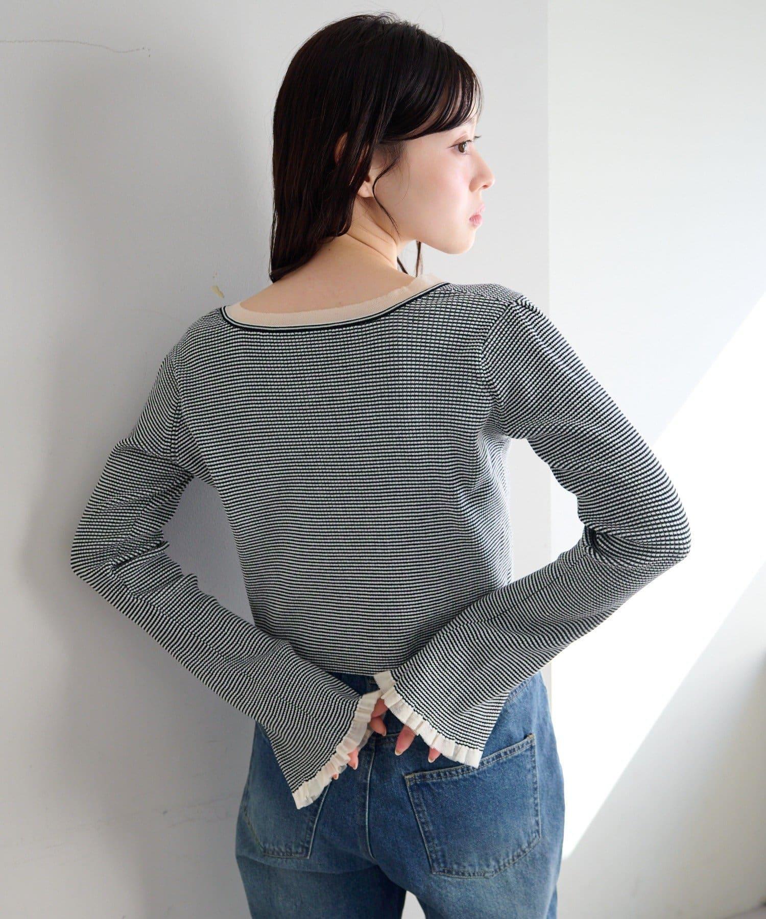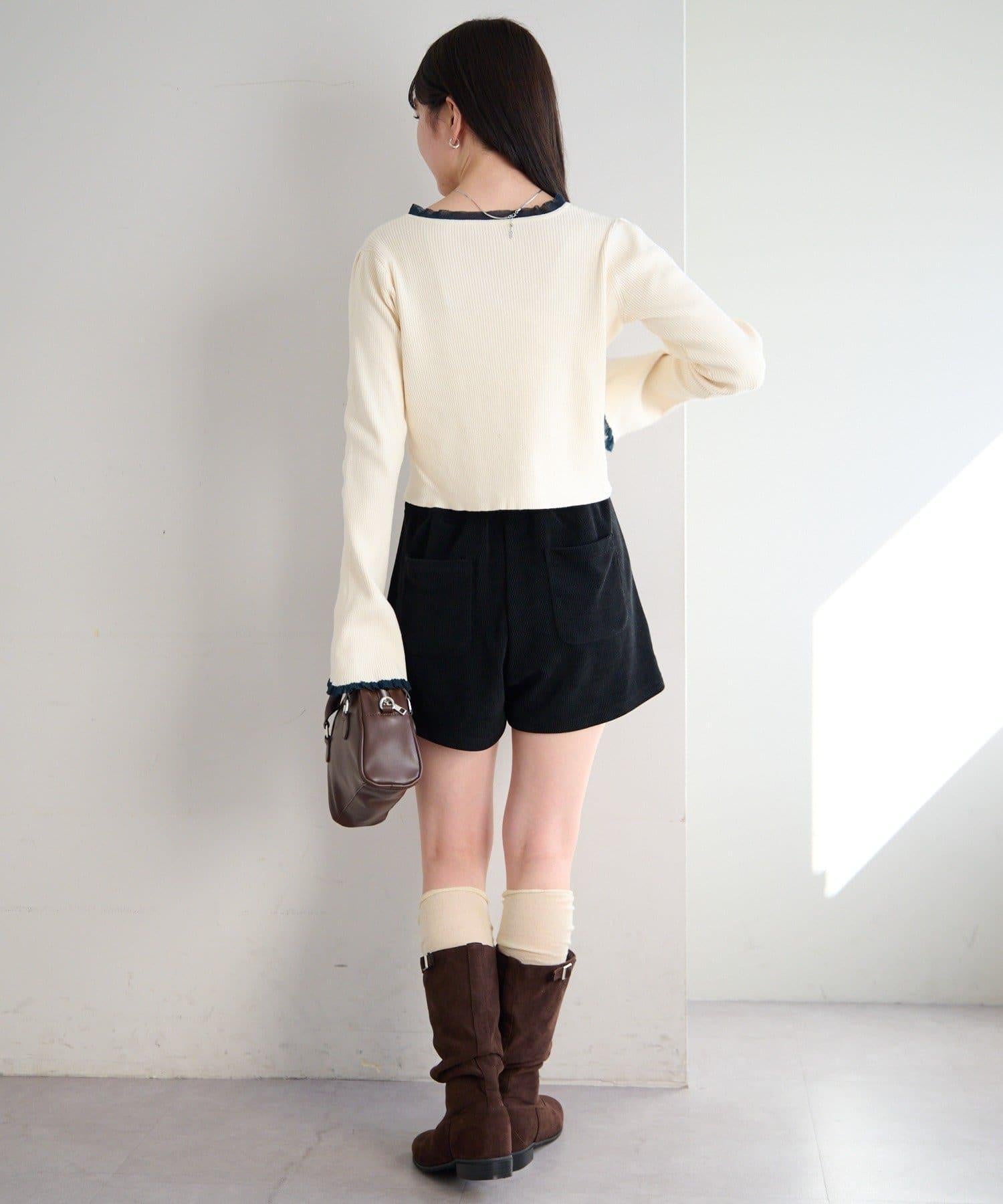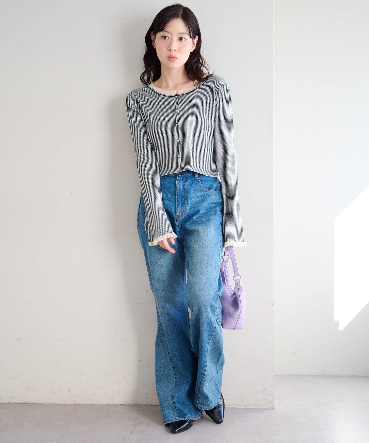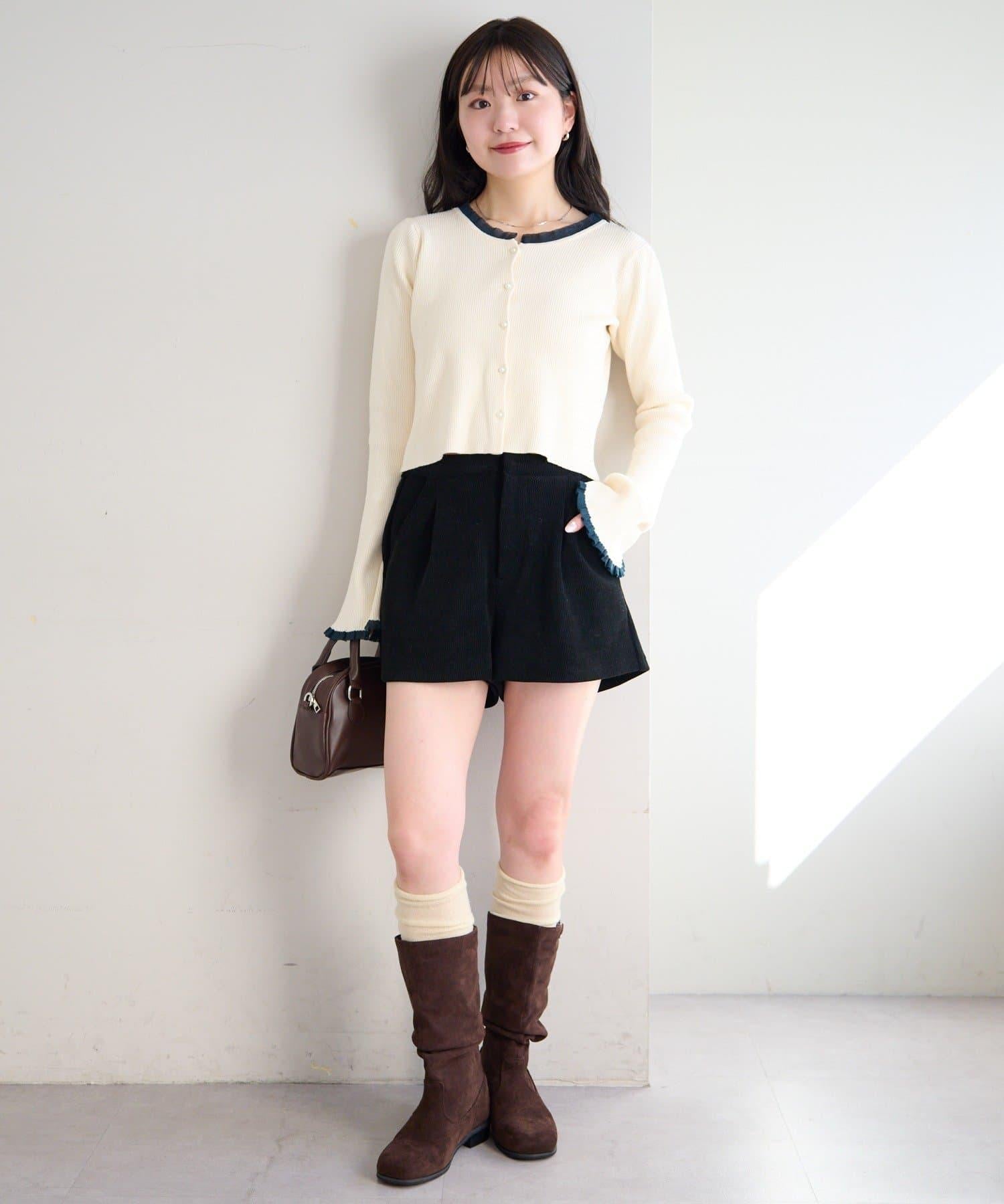 珍珠紐扣荷葉邊針織開衫