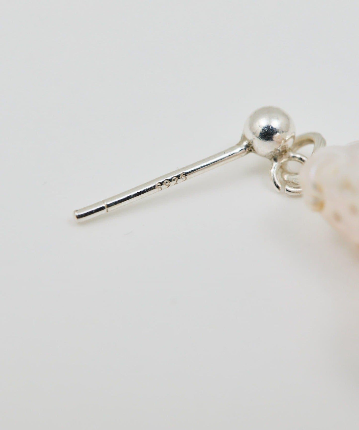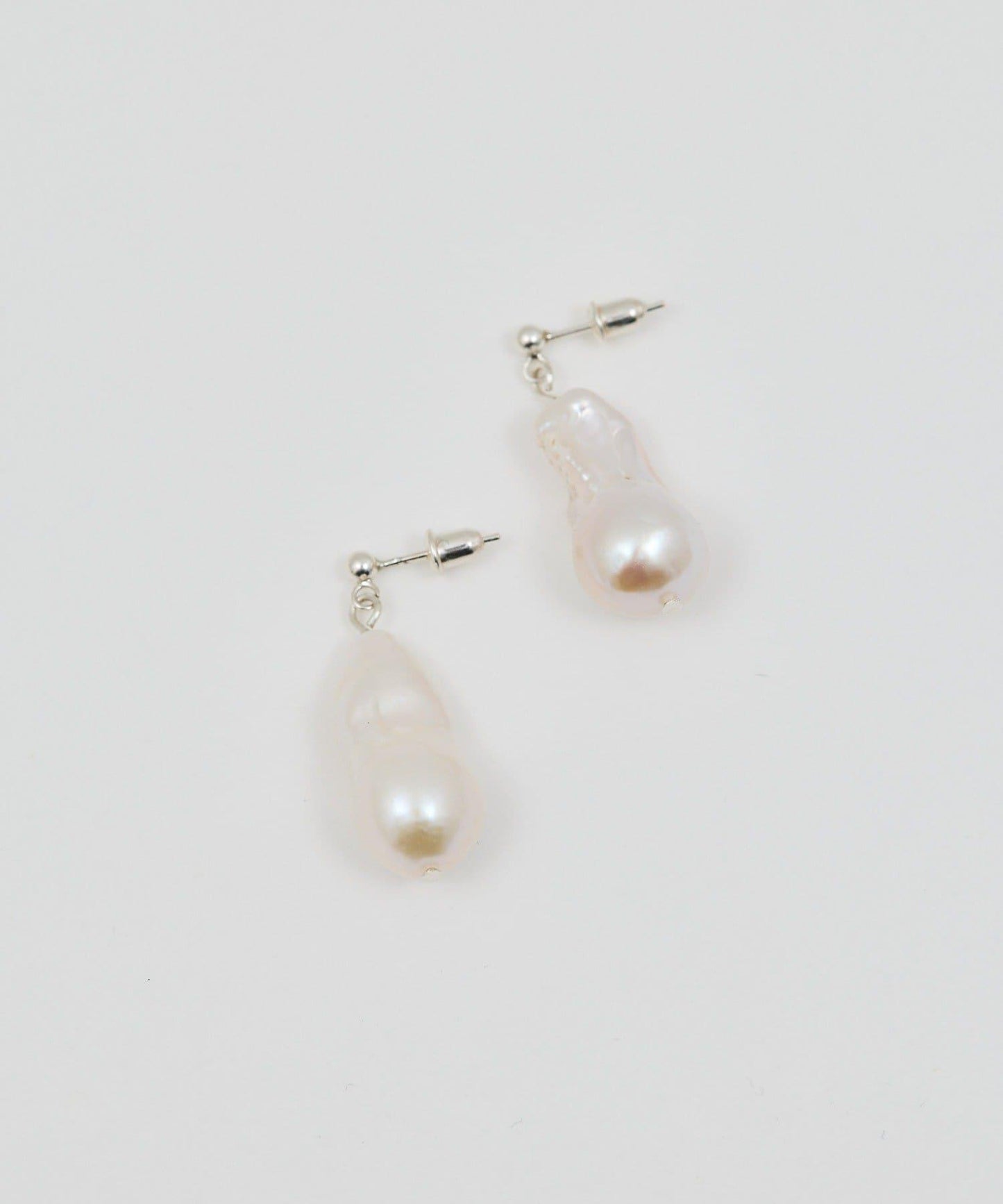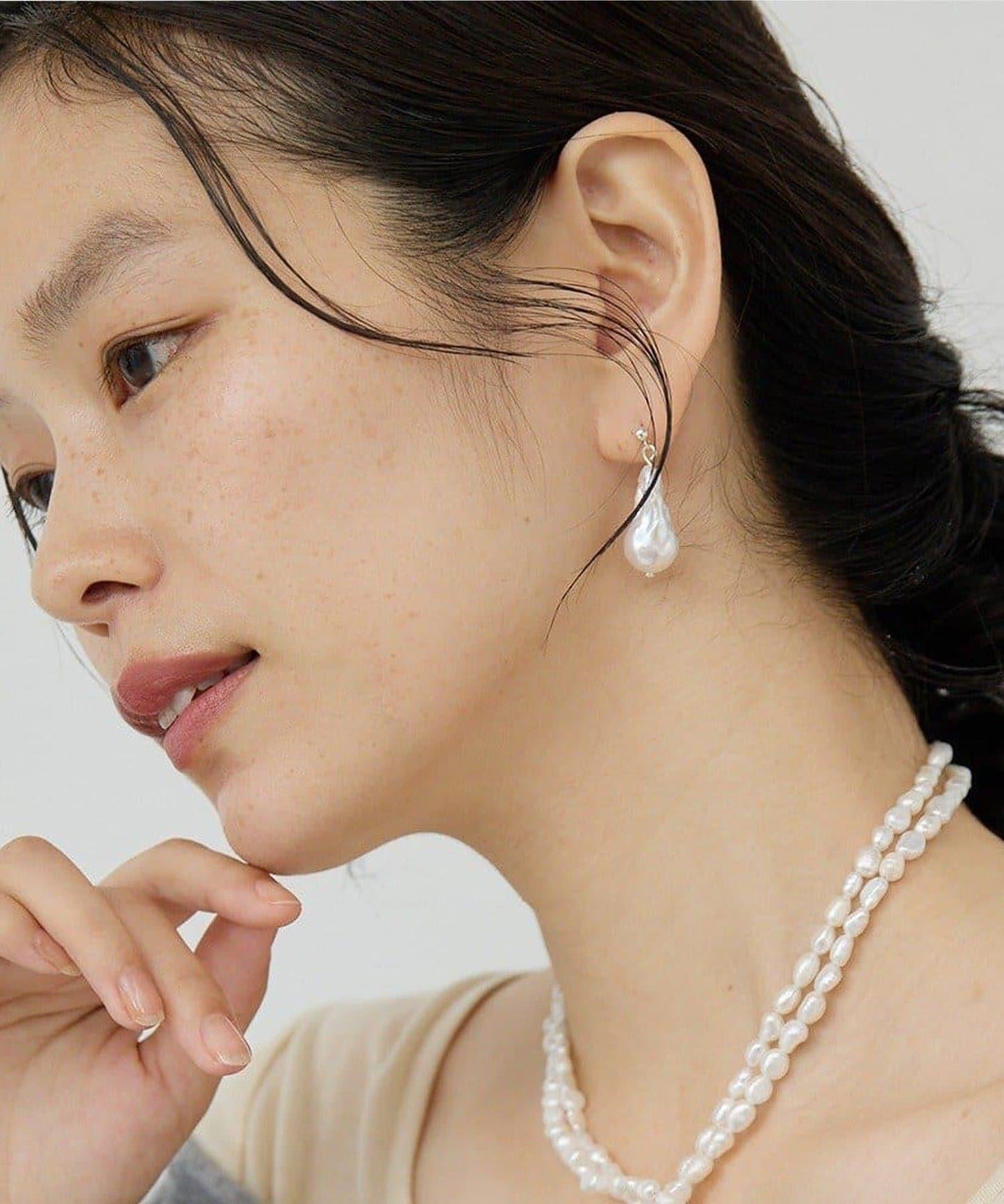 牡蠣形珍珠耳環為耳朵增添柔和的光彩。