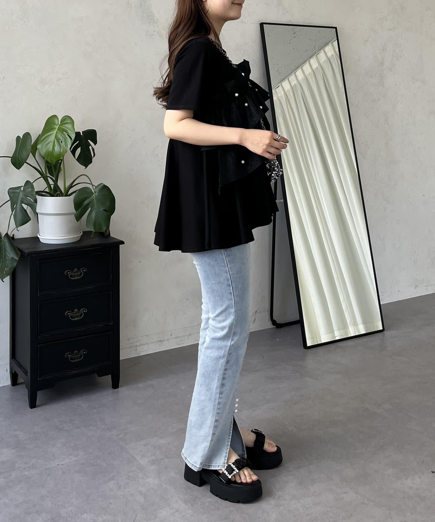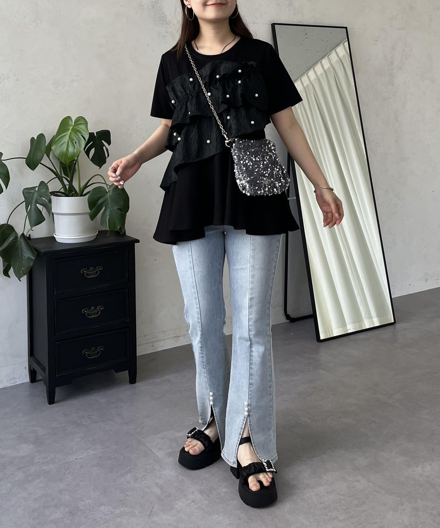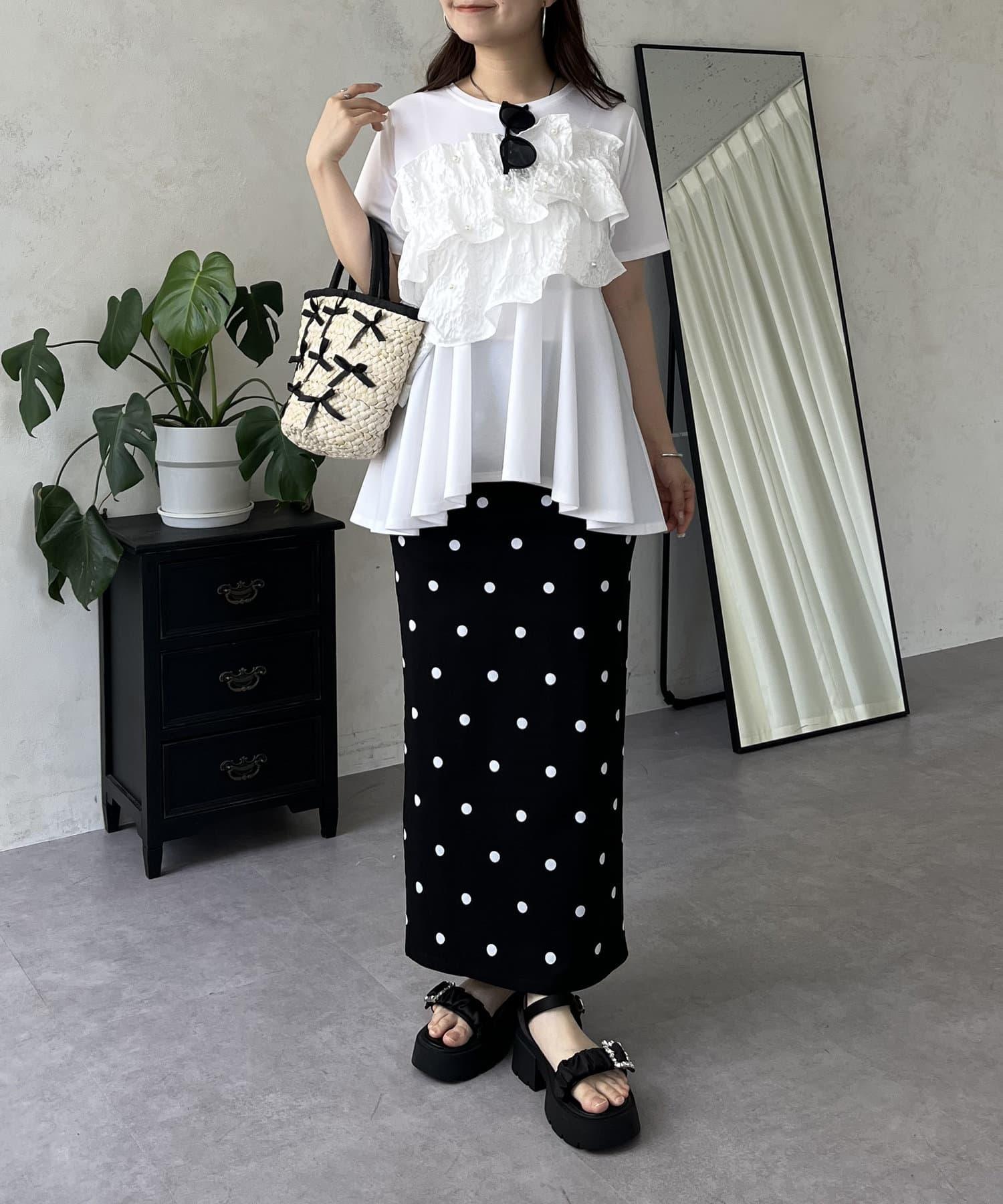 飾有流蘇和珍珠的波點 T 恤,打造迷人造型