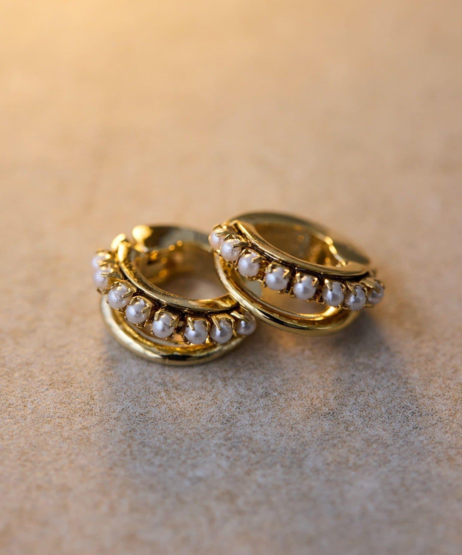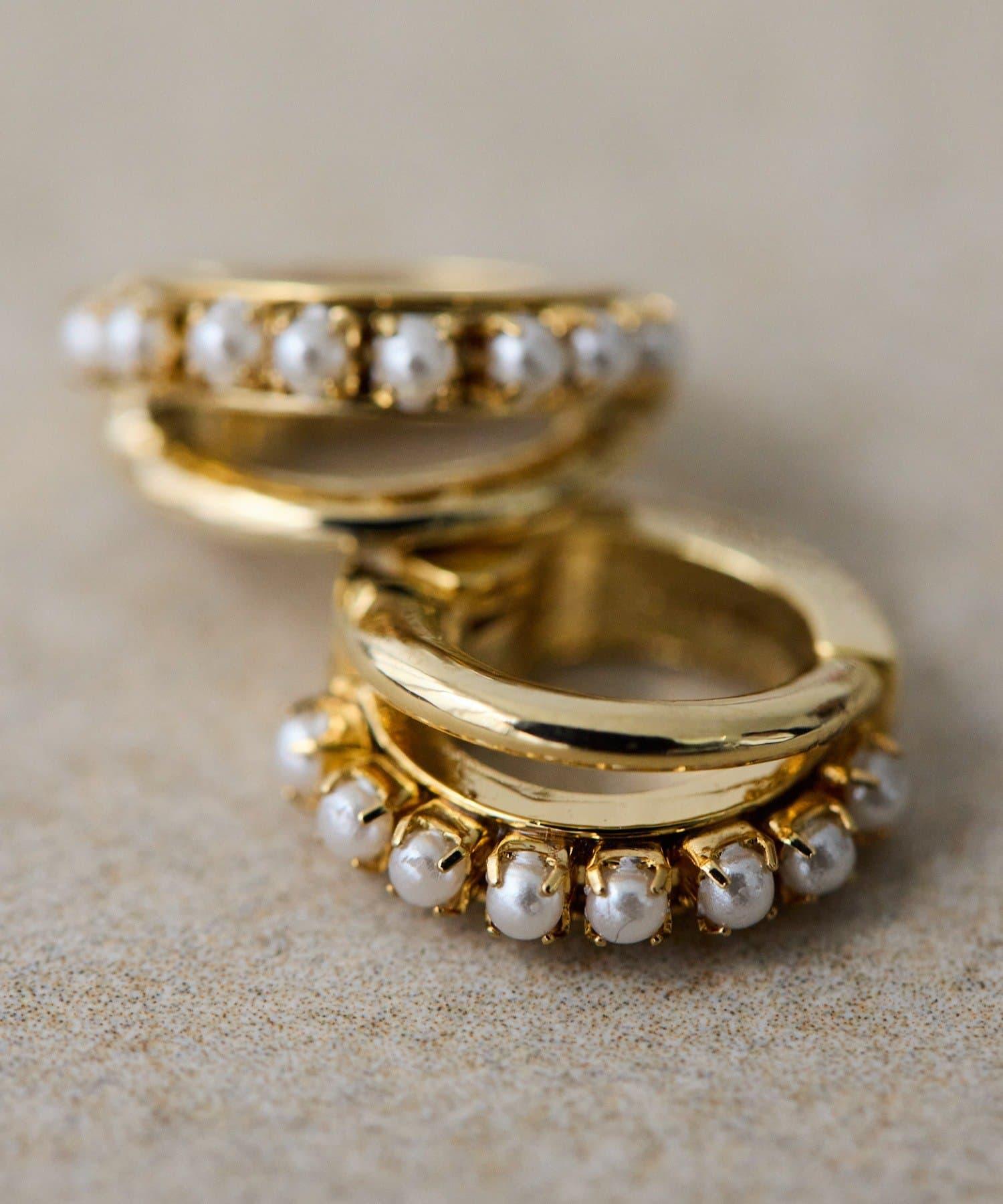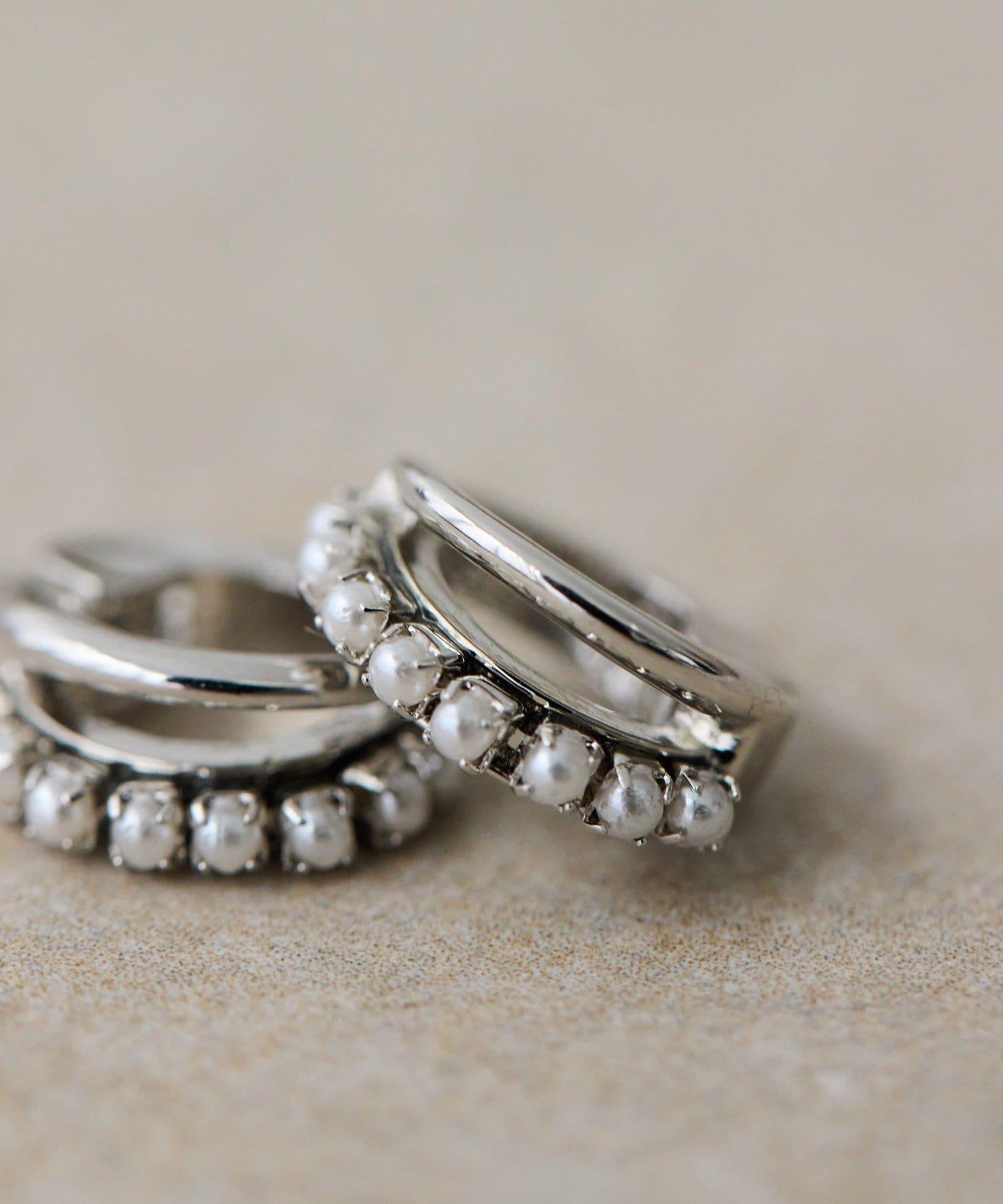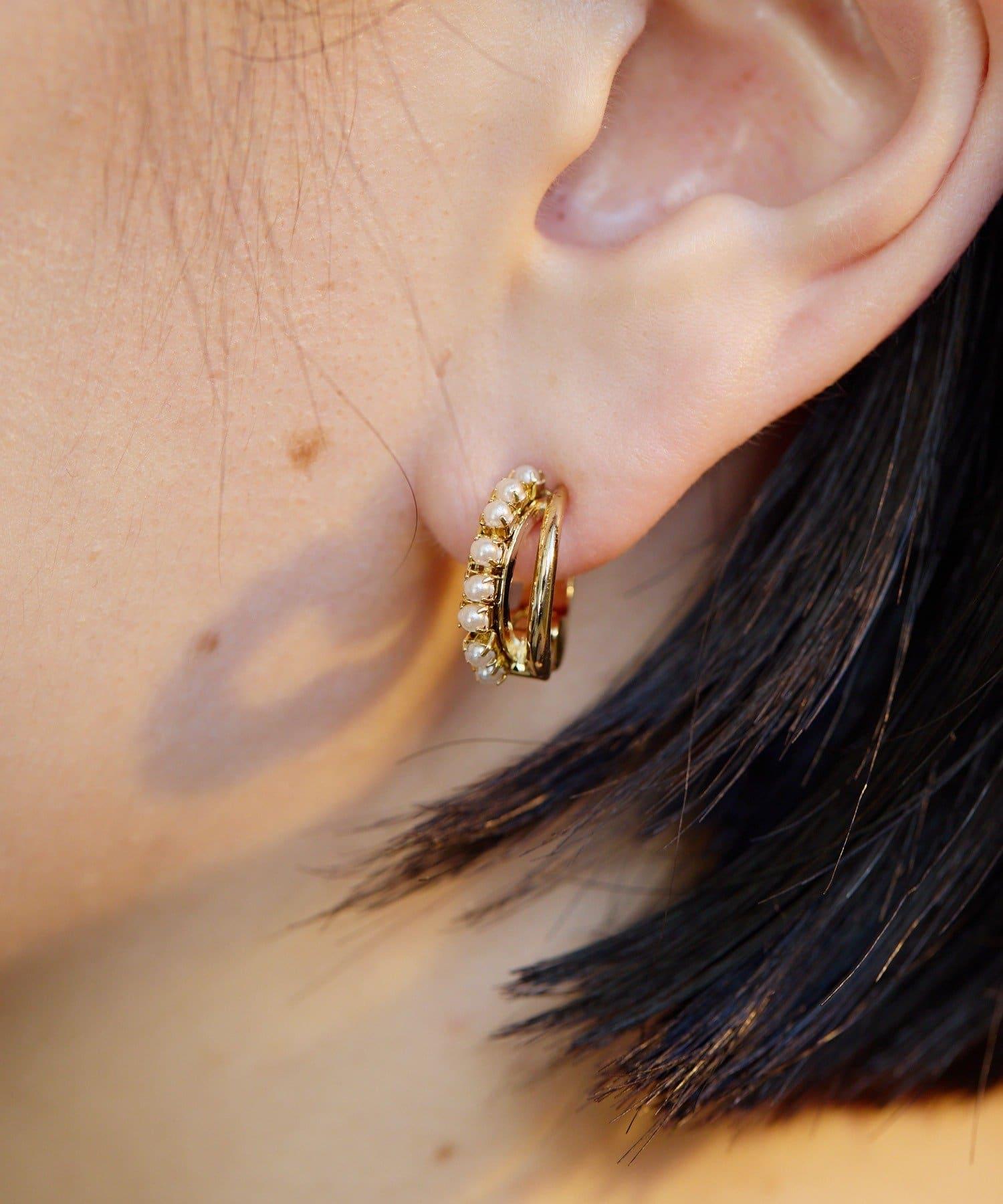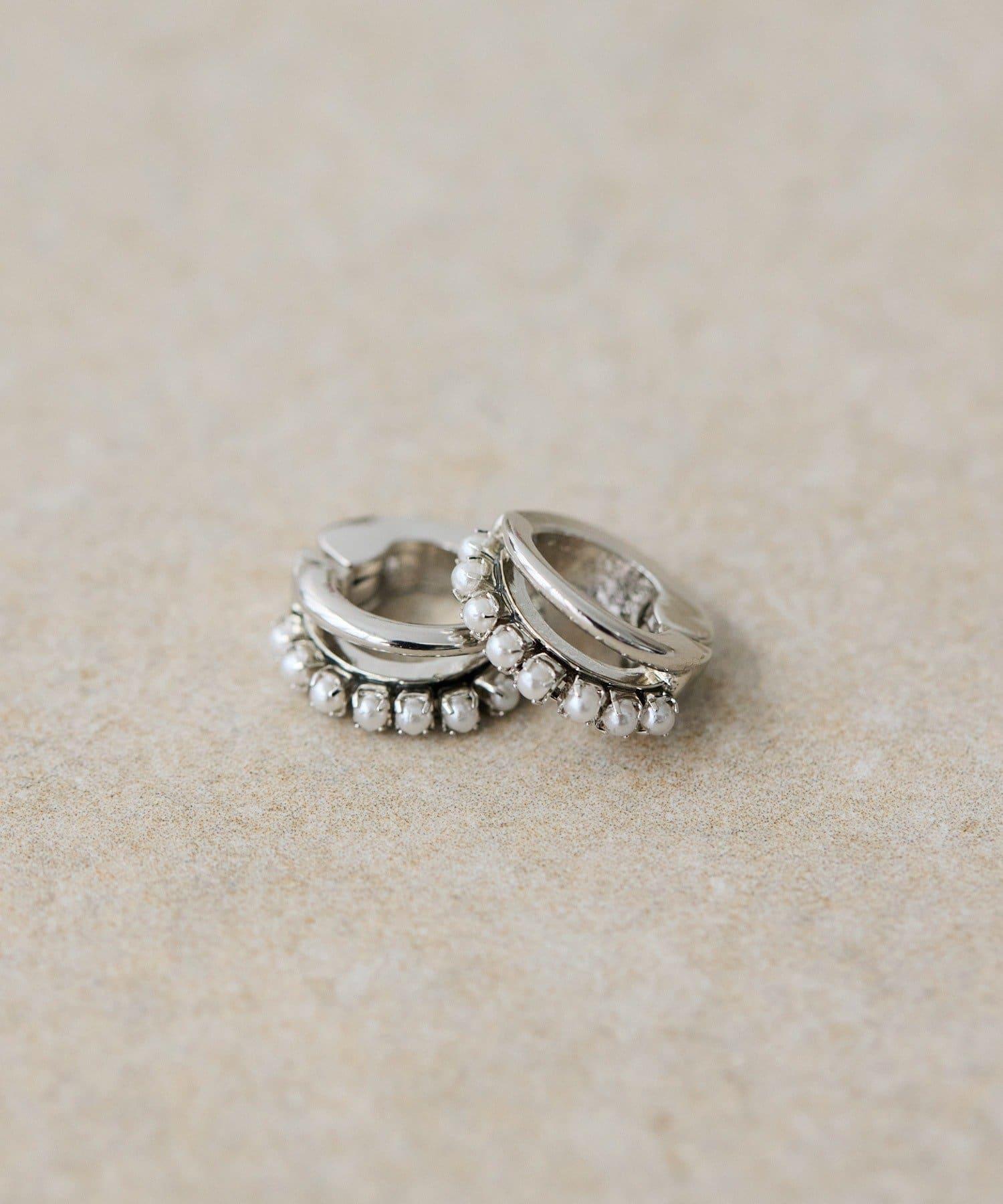 雙線環形耳環搭配小珍珠和光澤條,給人一種精緻的印象。