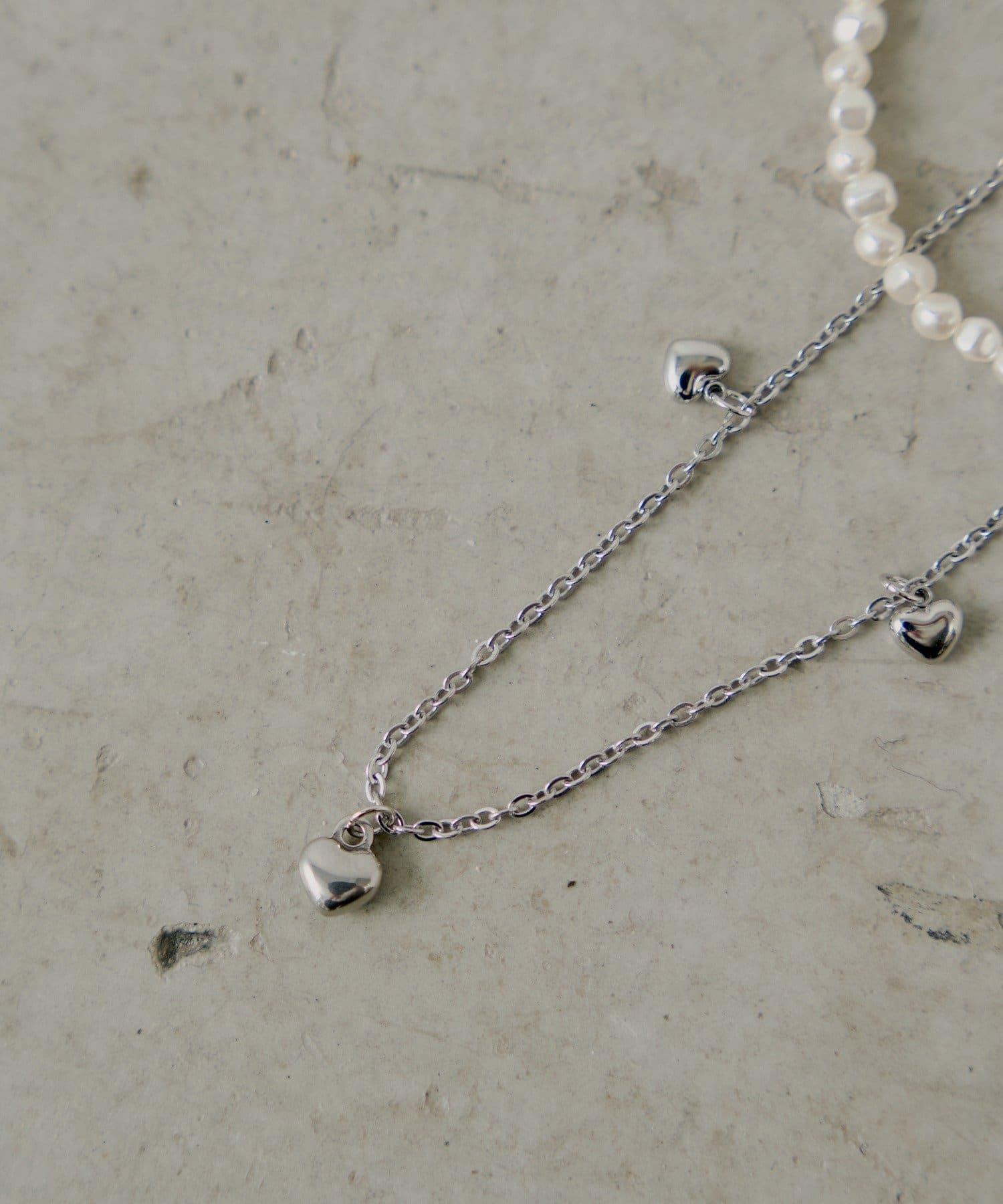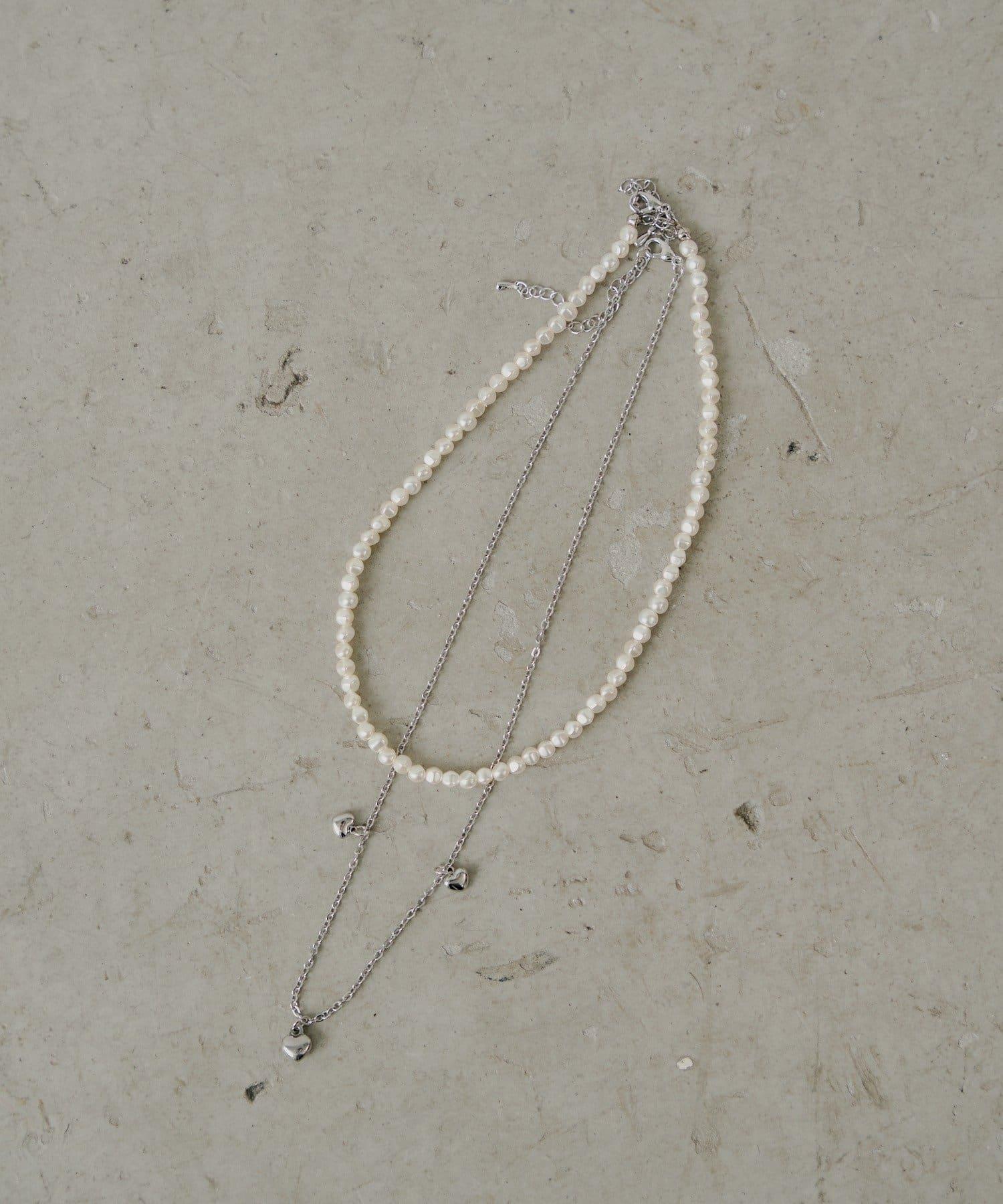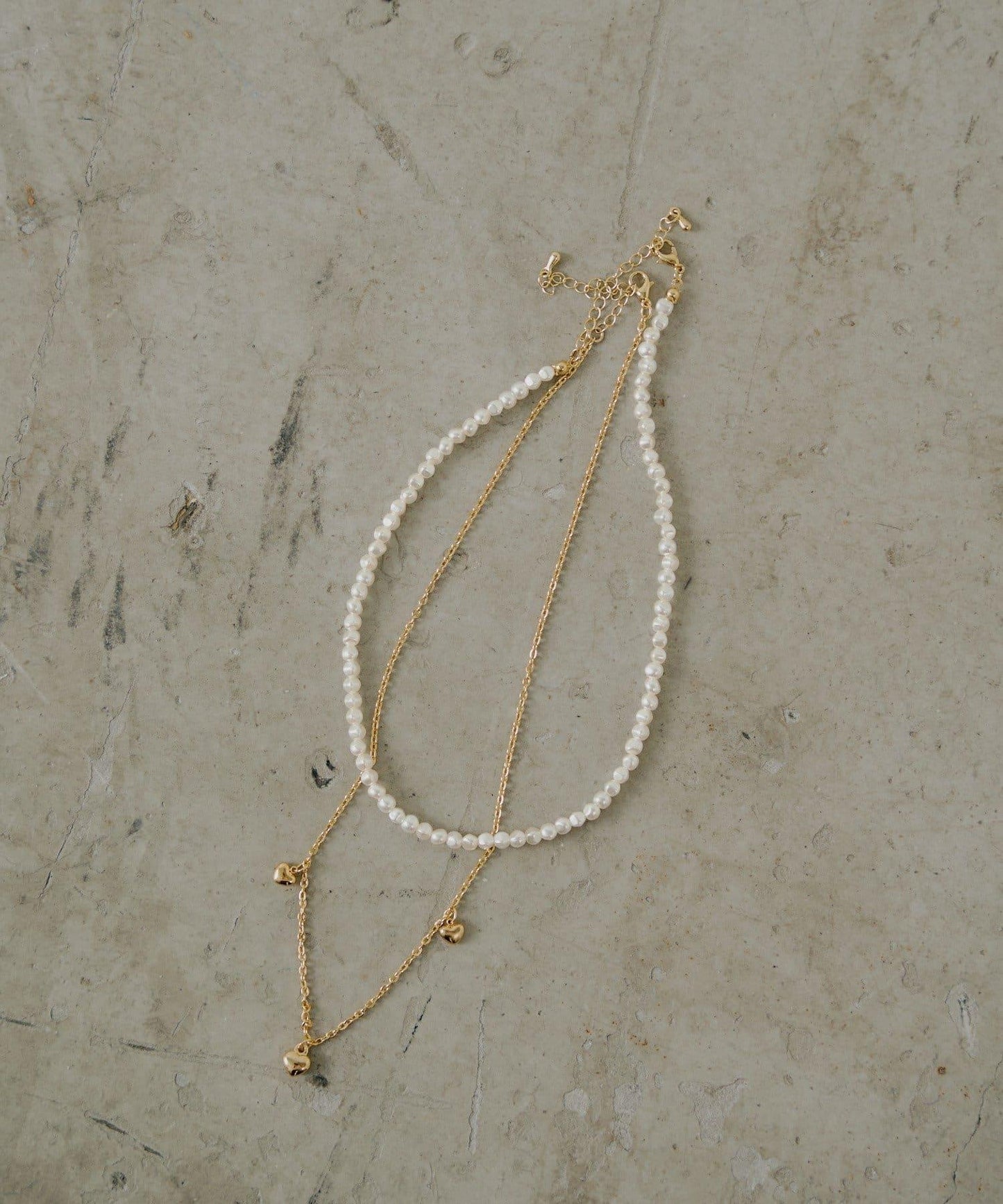 珍珠和心形吊飾的組合是一套可愛的項鍊。