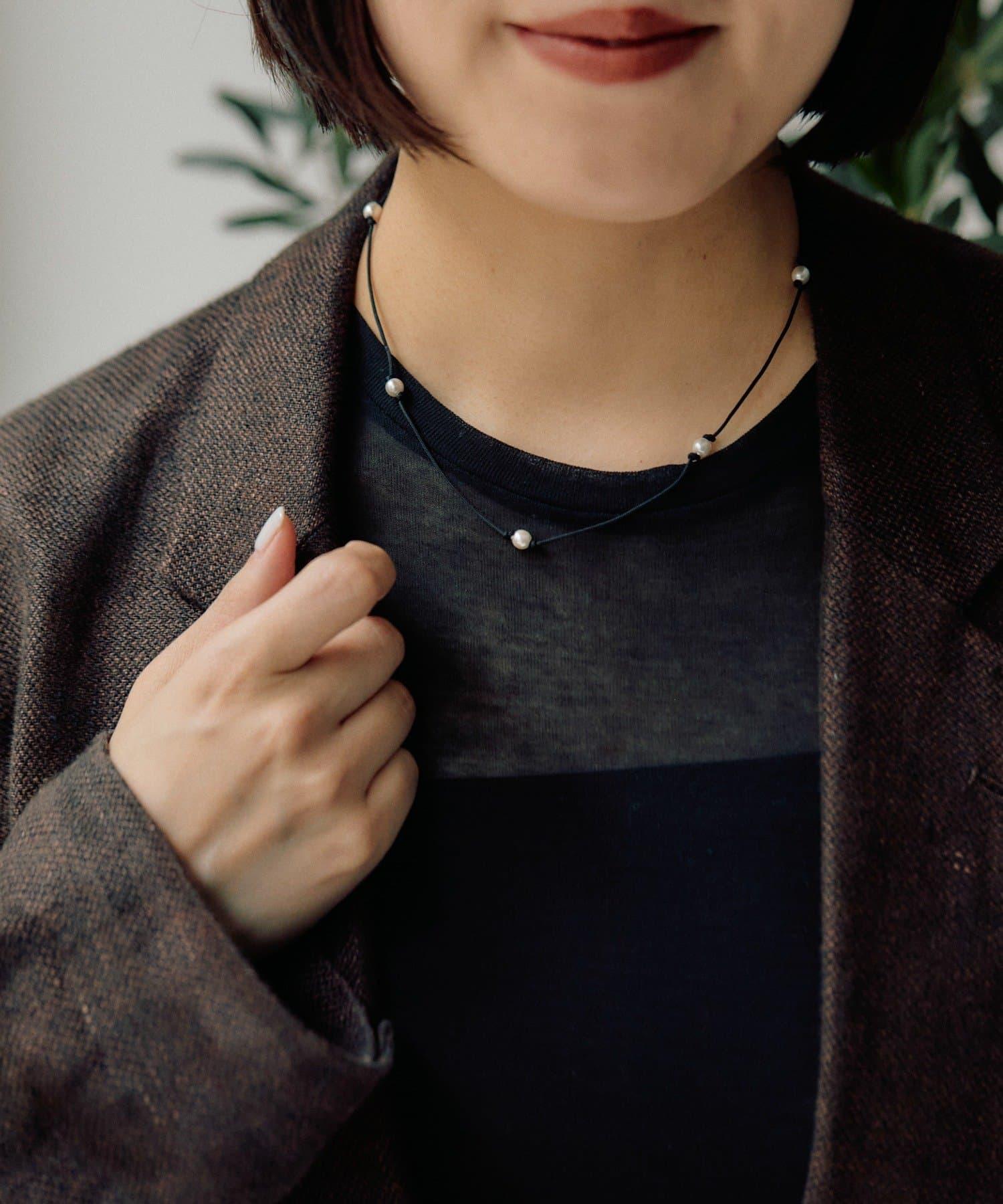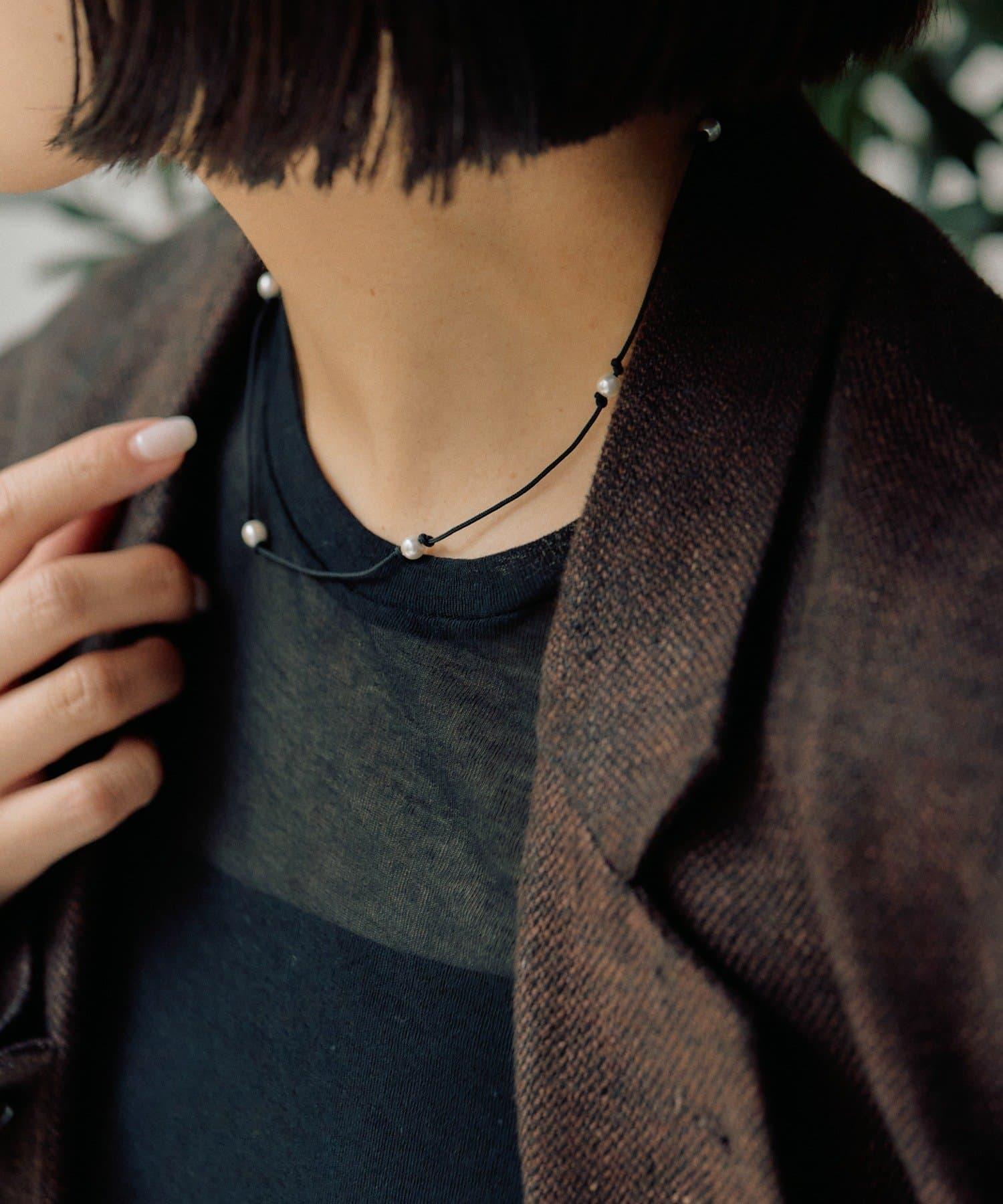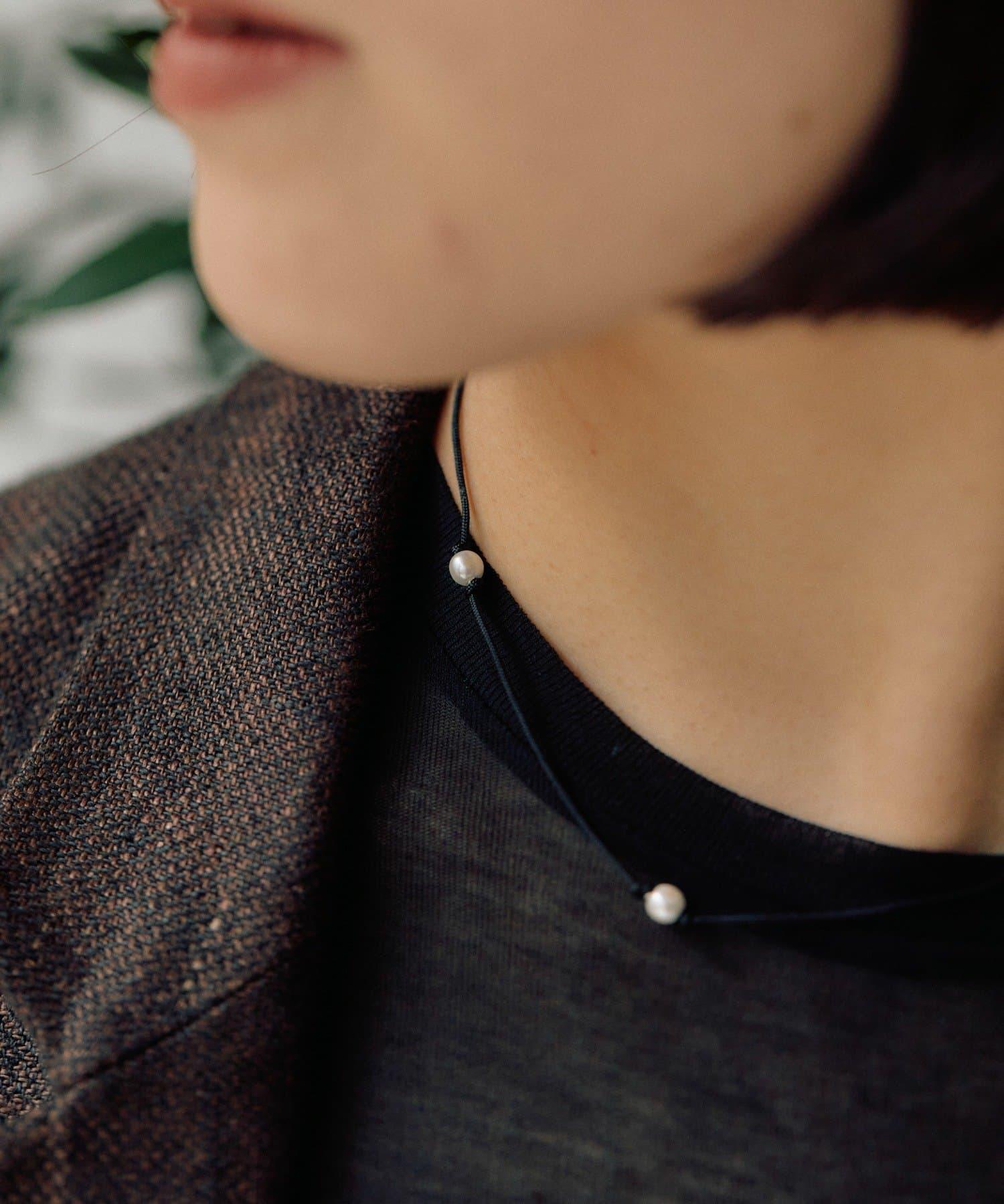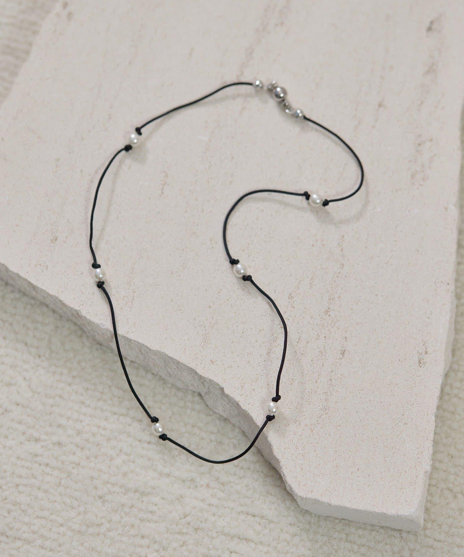 成人項鍊,黑色線繩與珍珠形成鮮明對比。