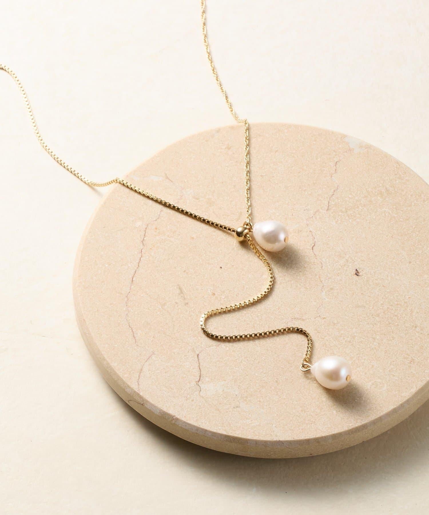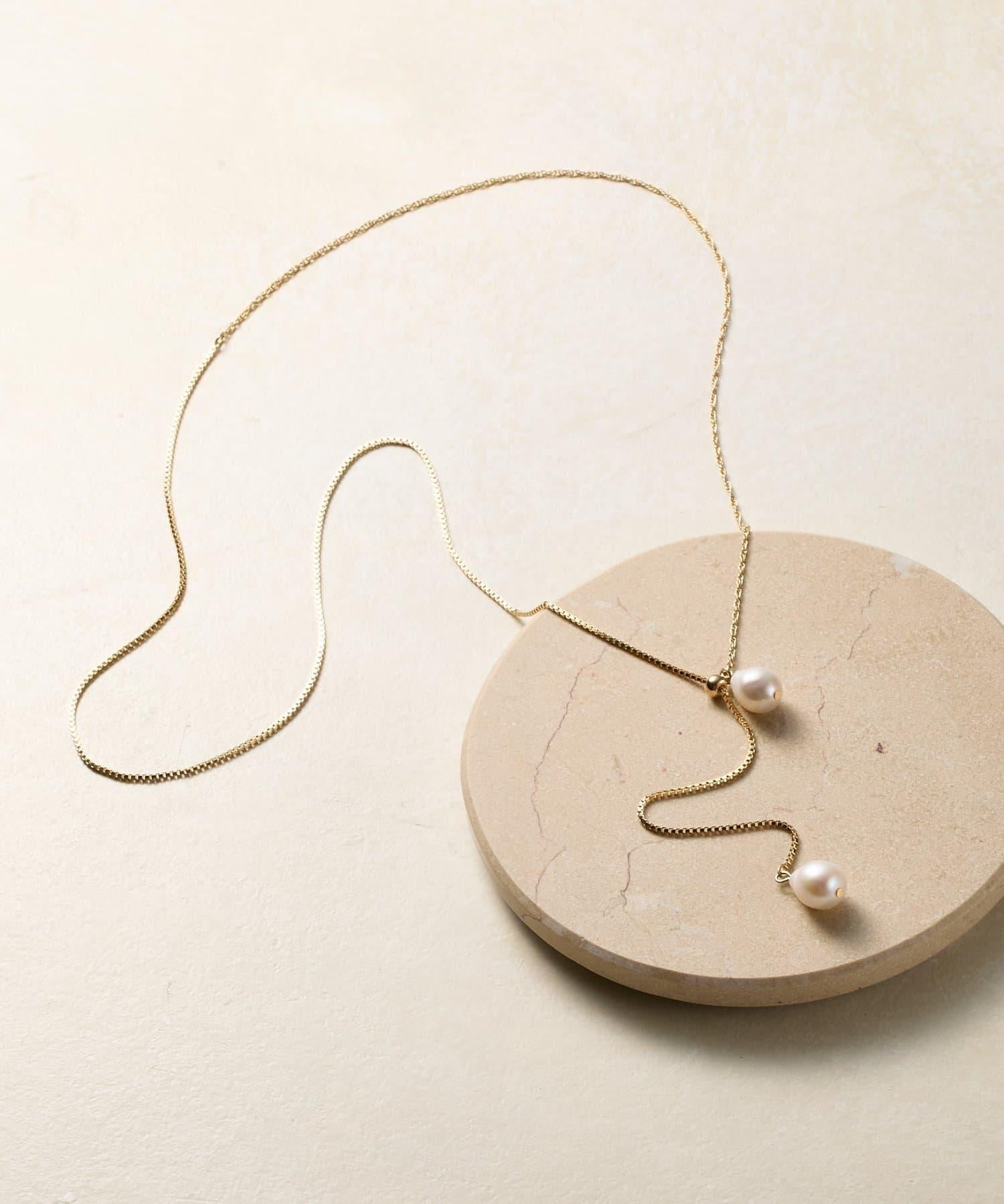 滑鏈的長度可自由調節,您可以根據自己的心情或搭配來安排,例如單頂款式以突出珍珠的存在感,或 Y 形輪廓。