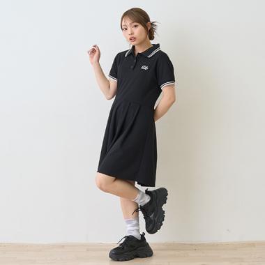 這款時尚的馬球連衣裙有著可愛的尖領和袖口。