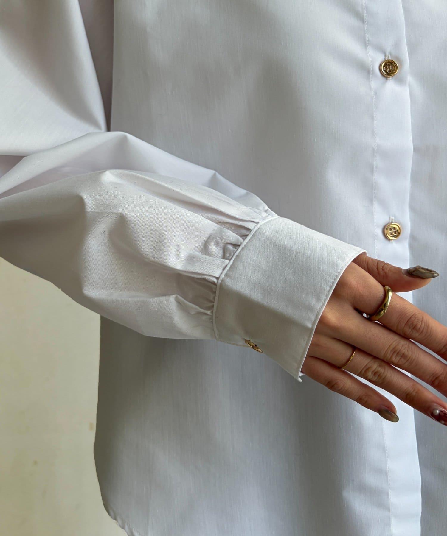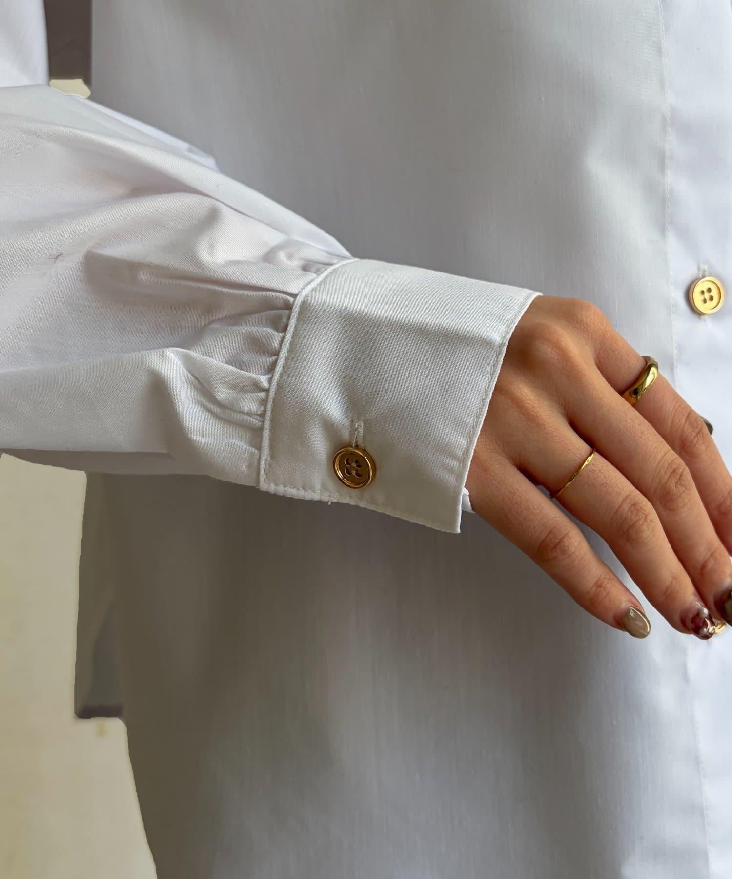 簡潔易穿的單品,配以協調的上衣 bijoux 紐扣裝飾。