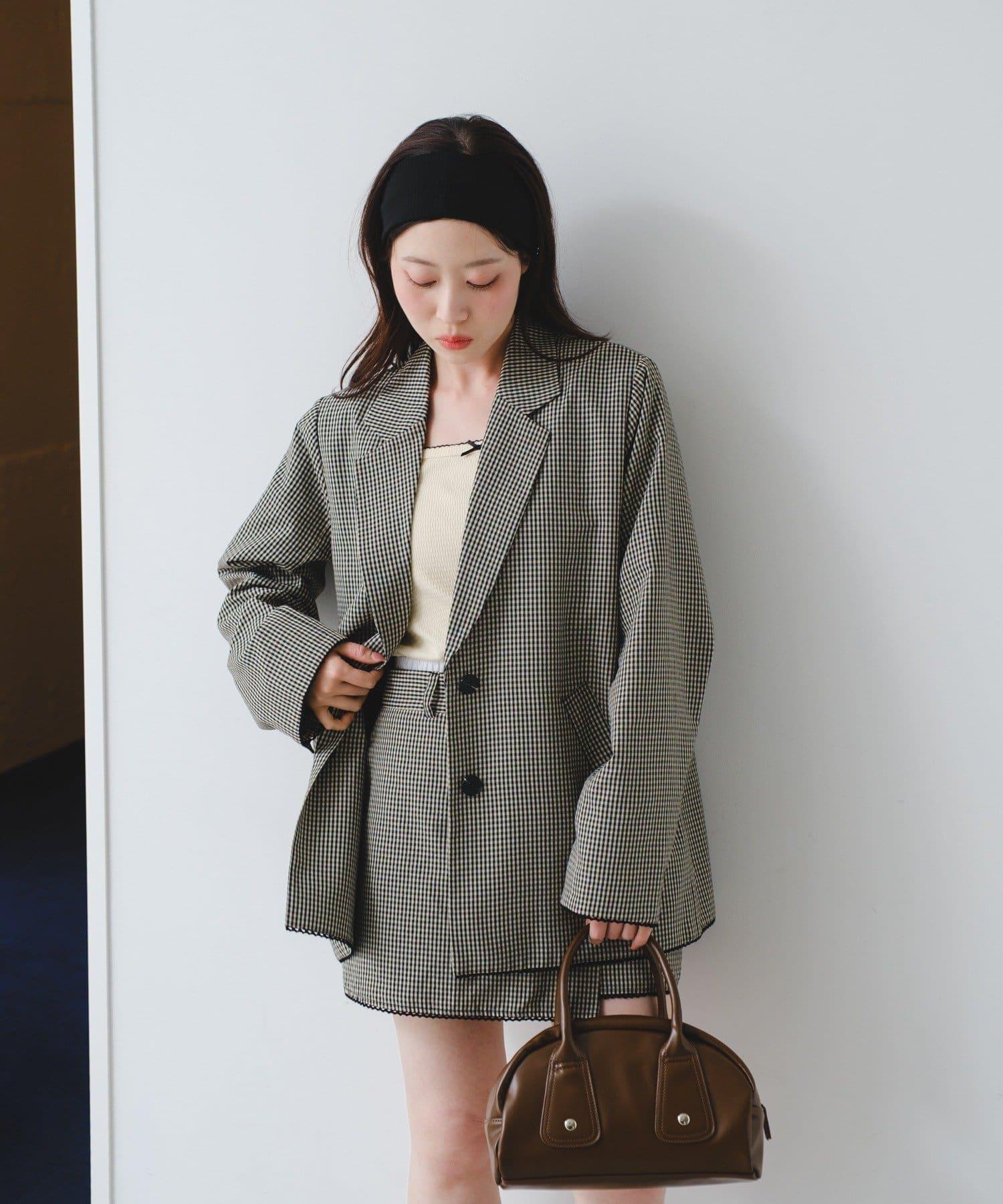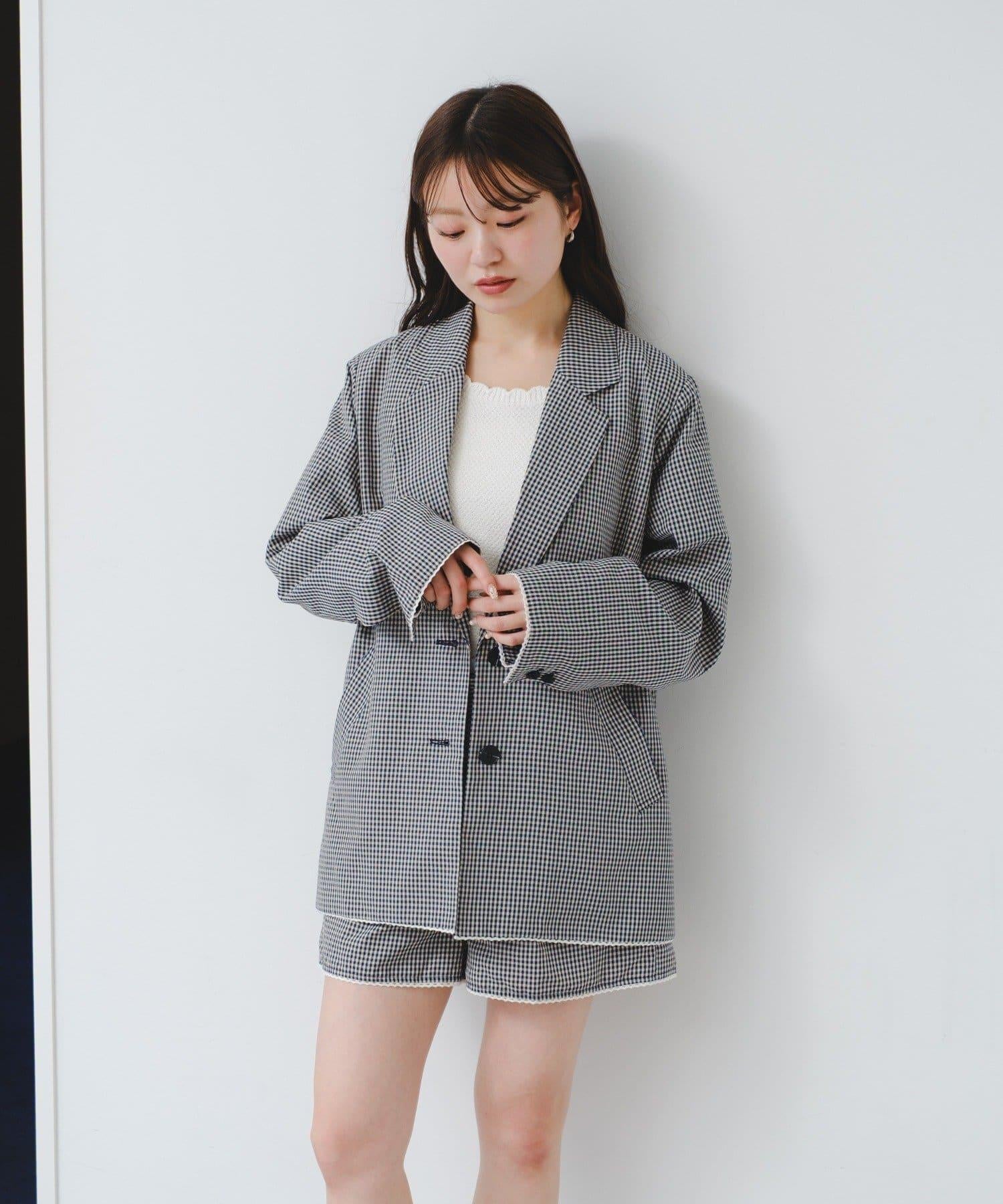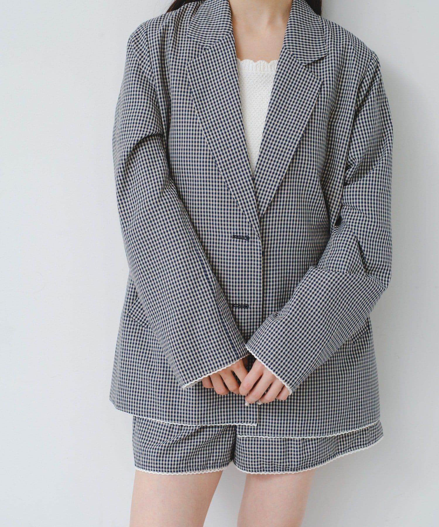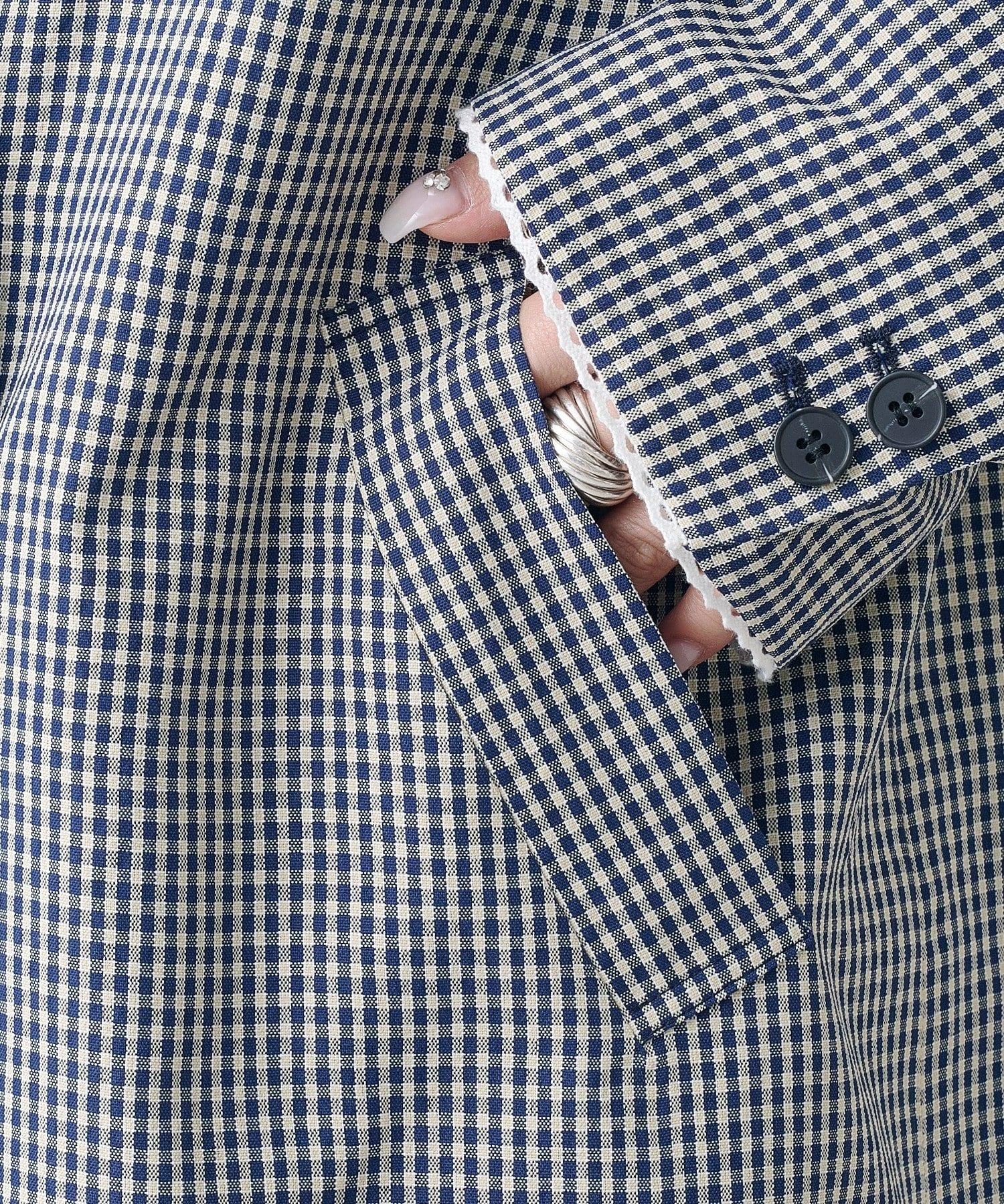珠點蕾絲格紋夾克