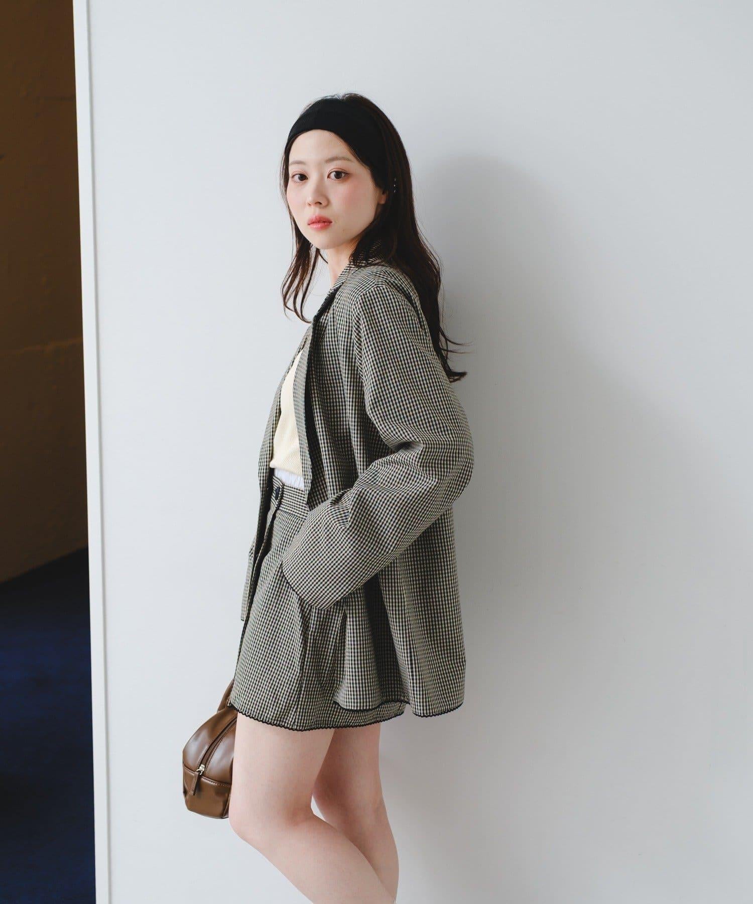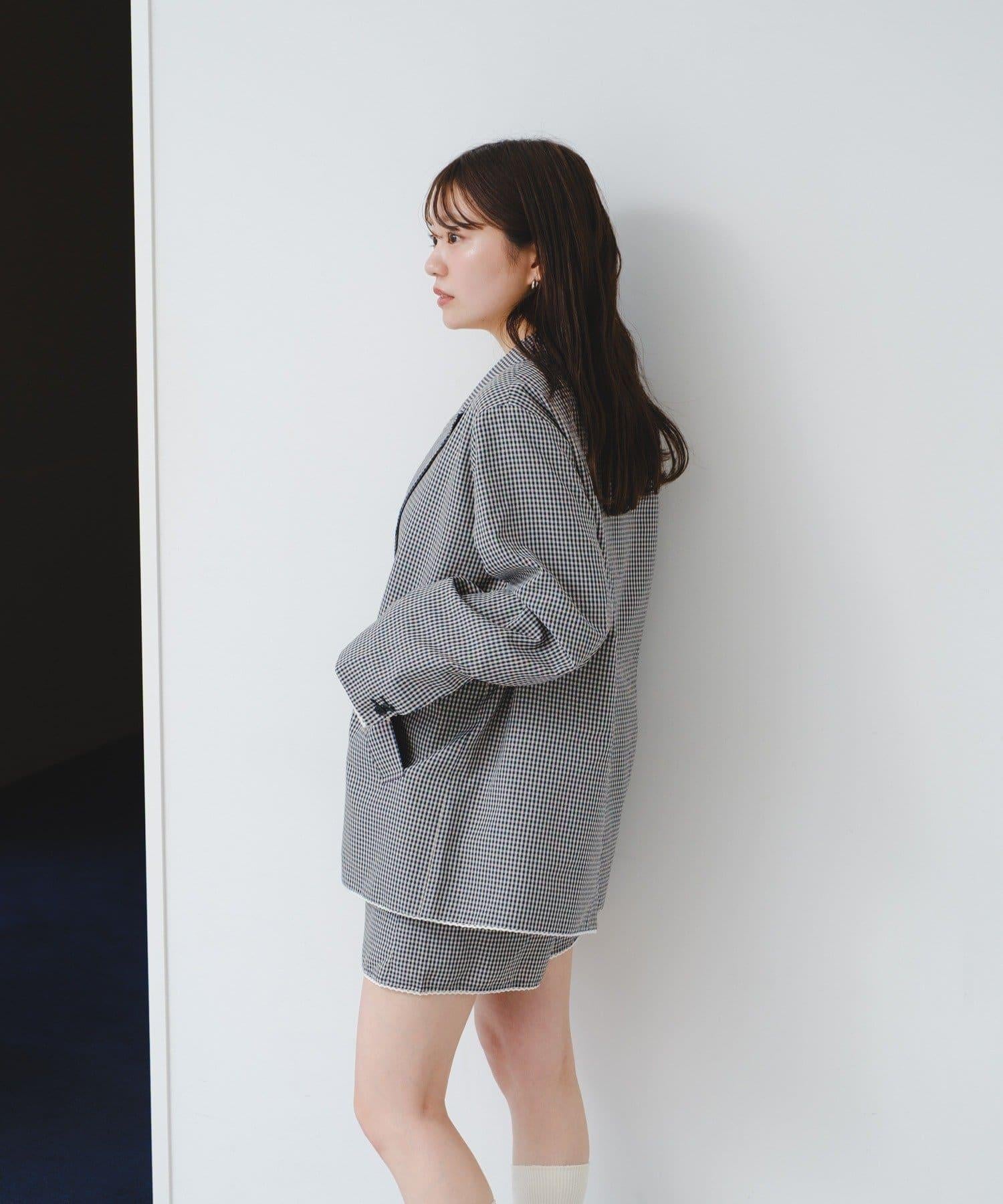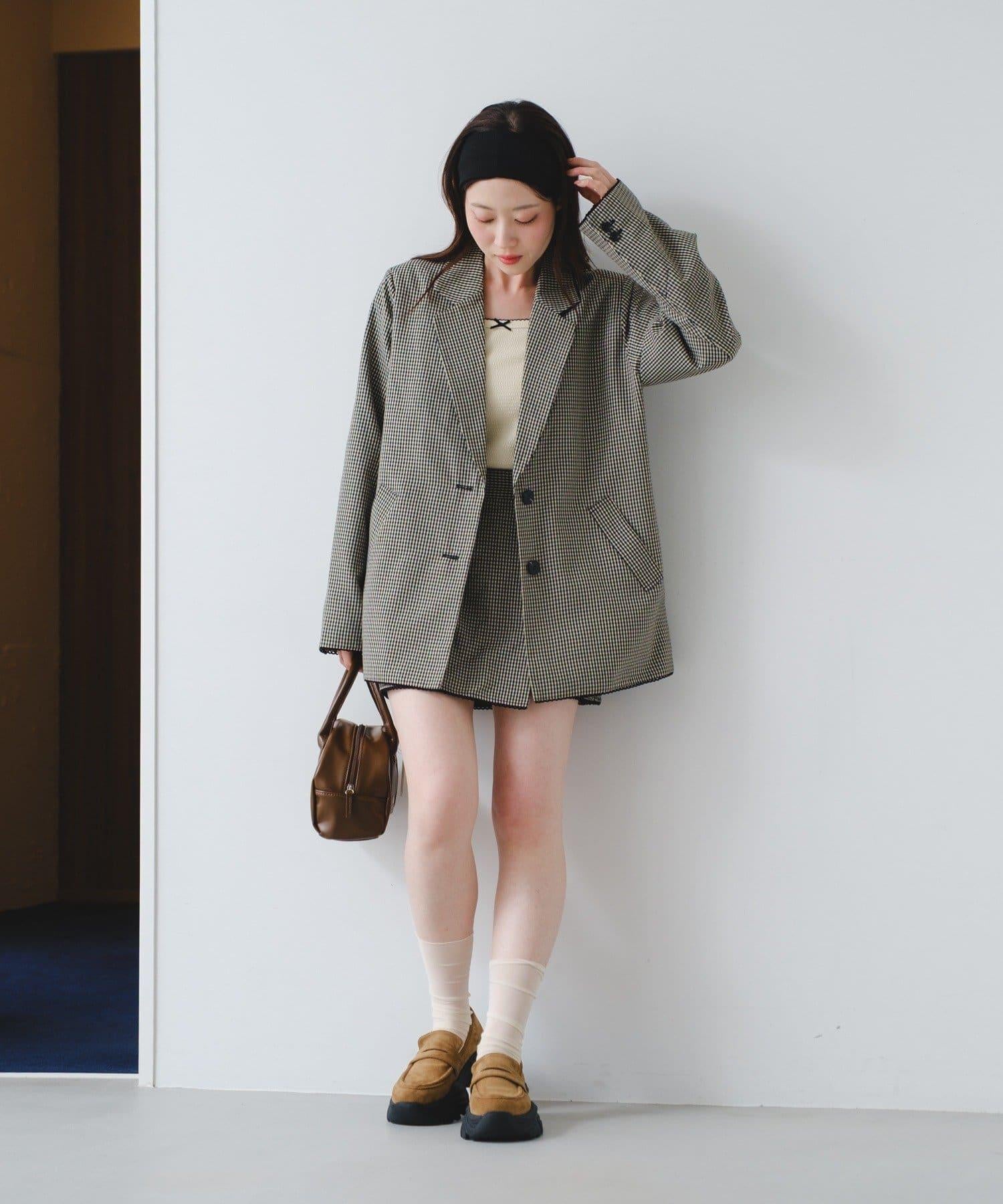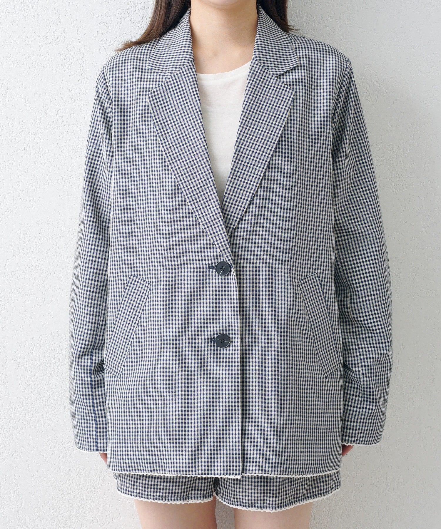 珠點蕾絲格紋夾克